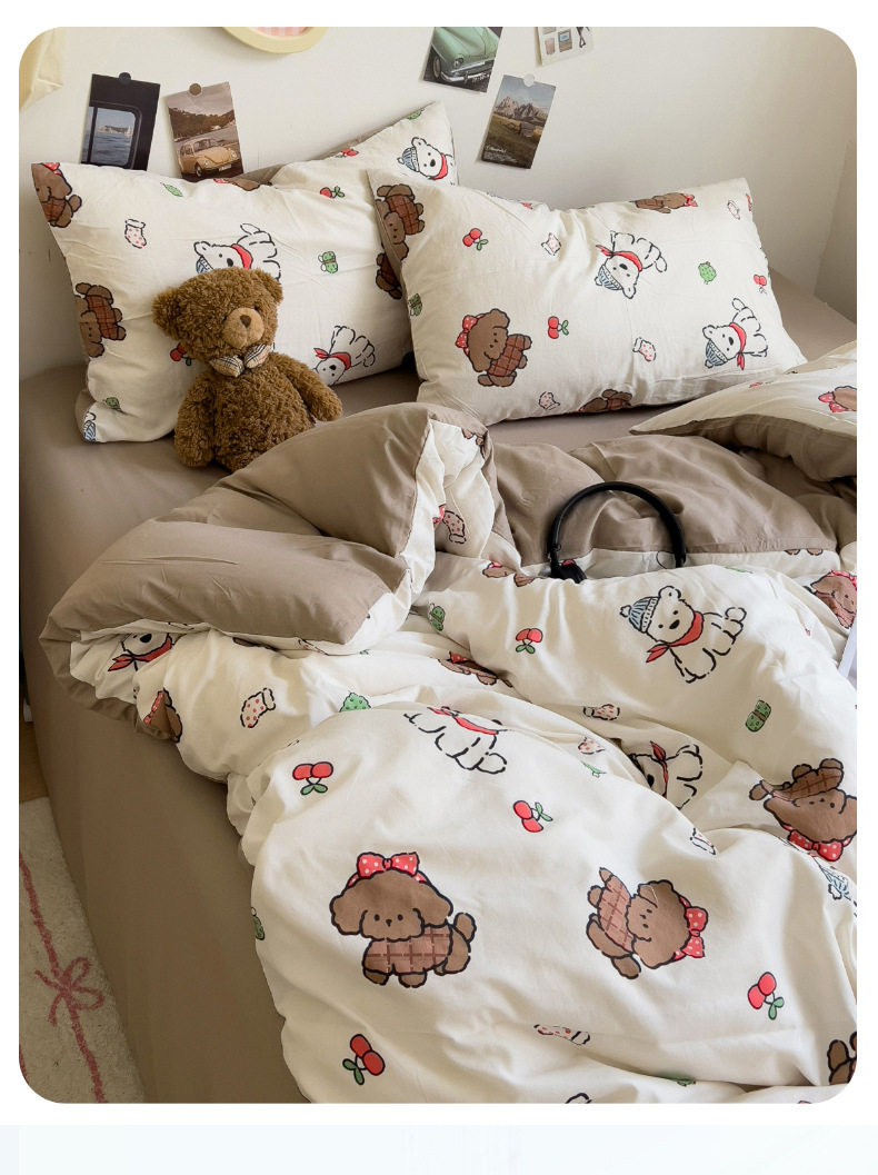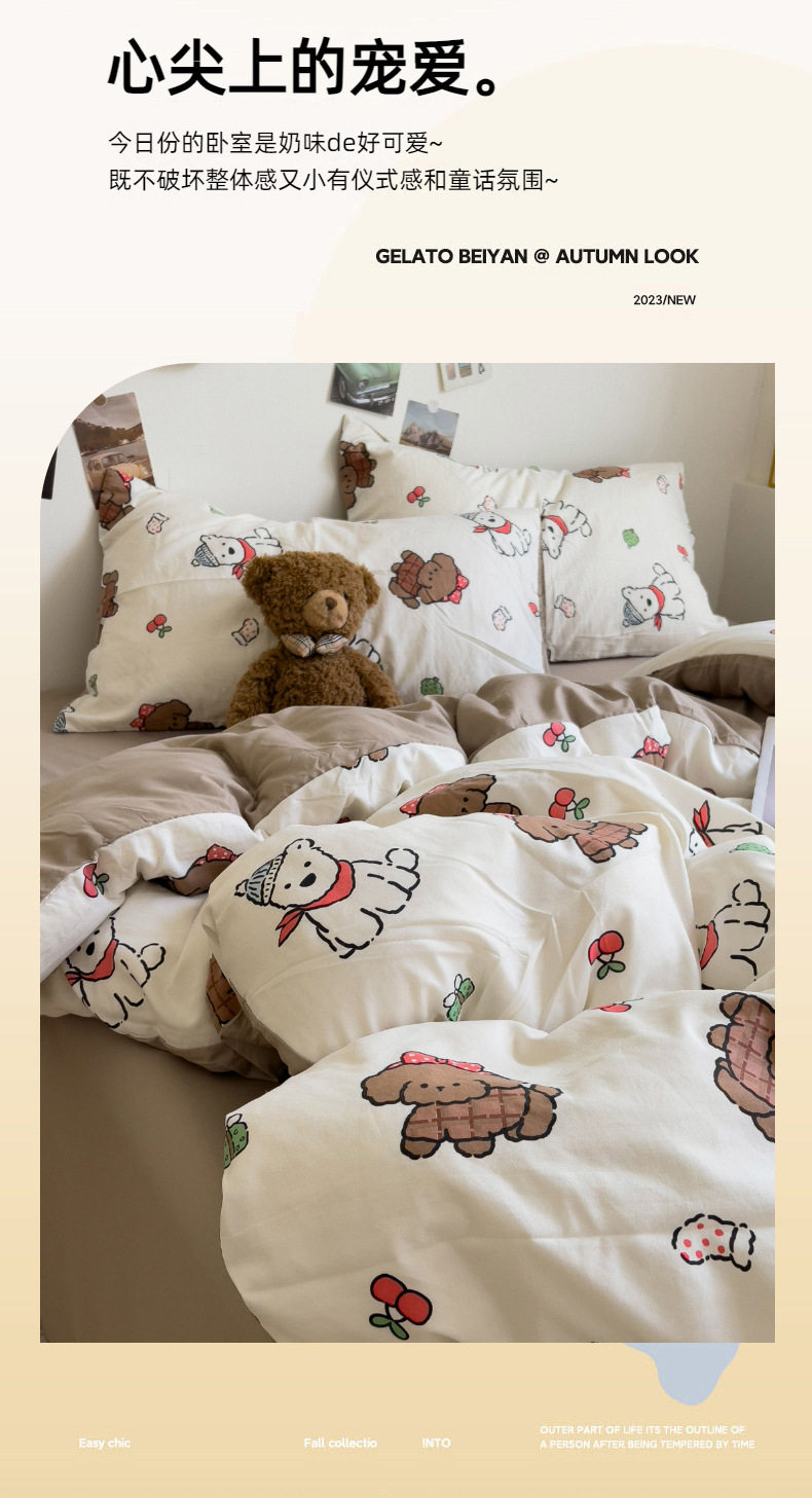 Ins Style Fresh Water Wash Cotton Four-piece Set Class A Maternal and Infant Grade Naked Sleeping Bed Hat Pure Cotton Dormitory Bed Sheet Three-piece Set