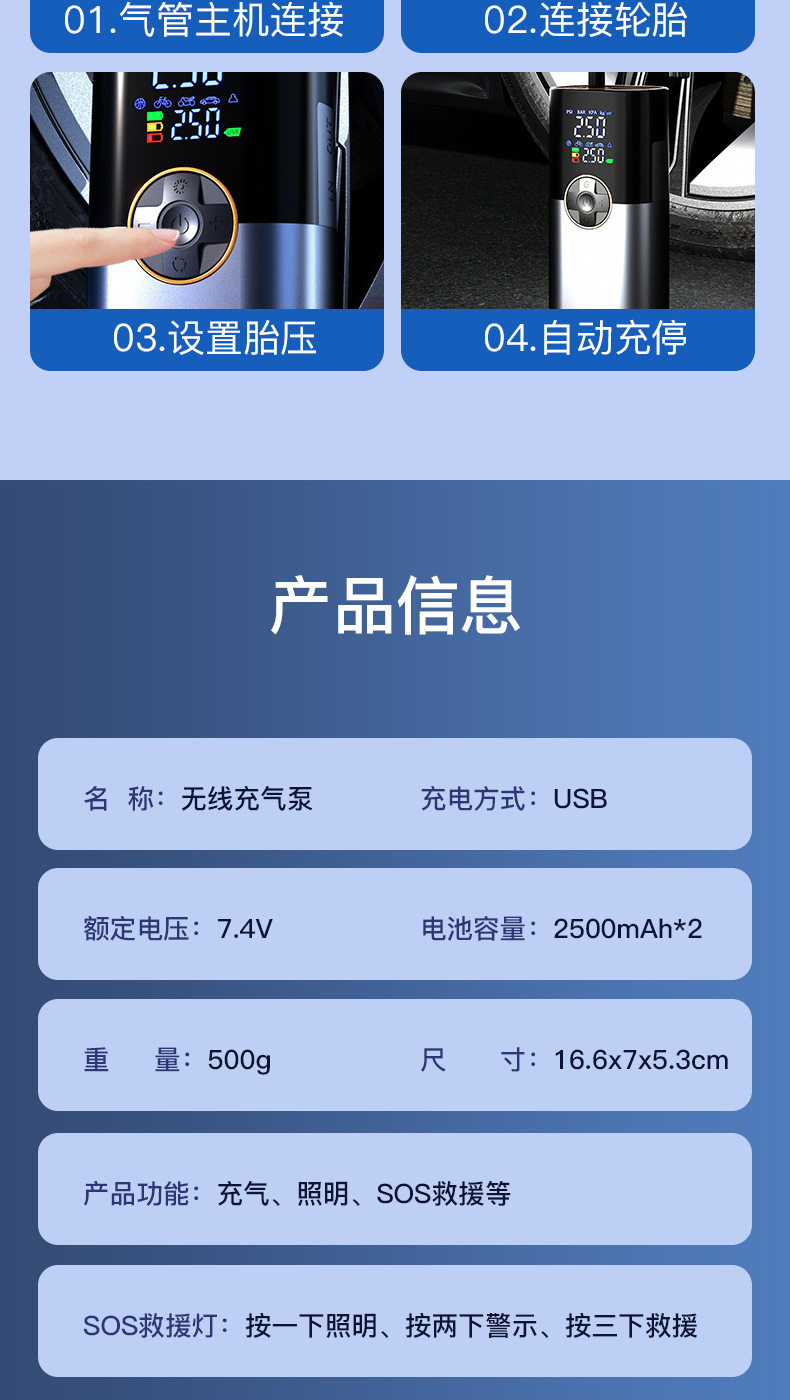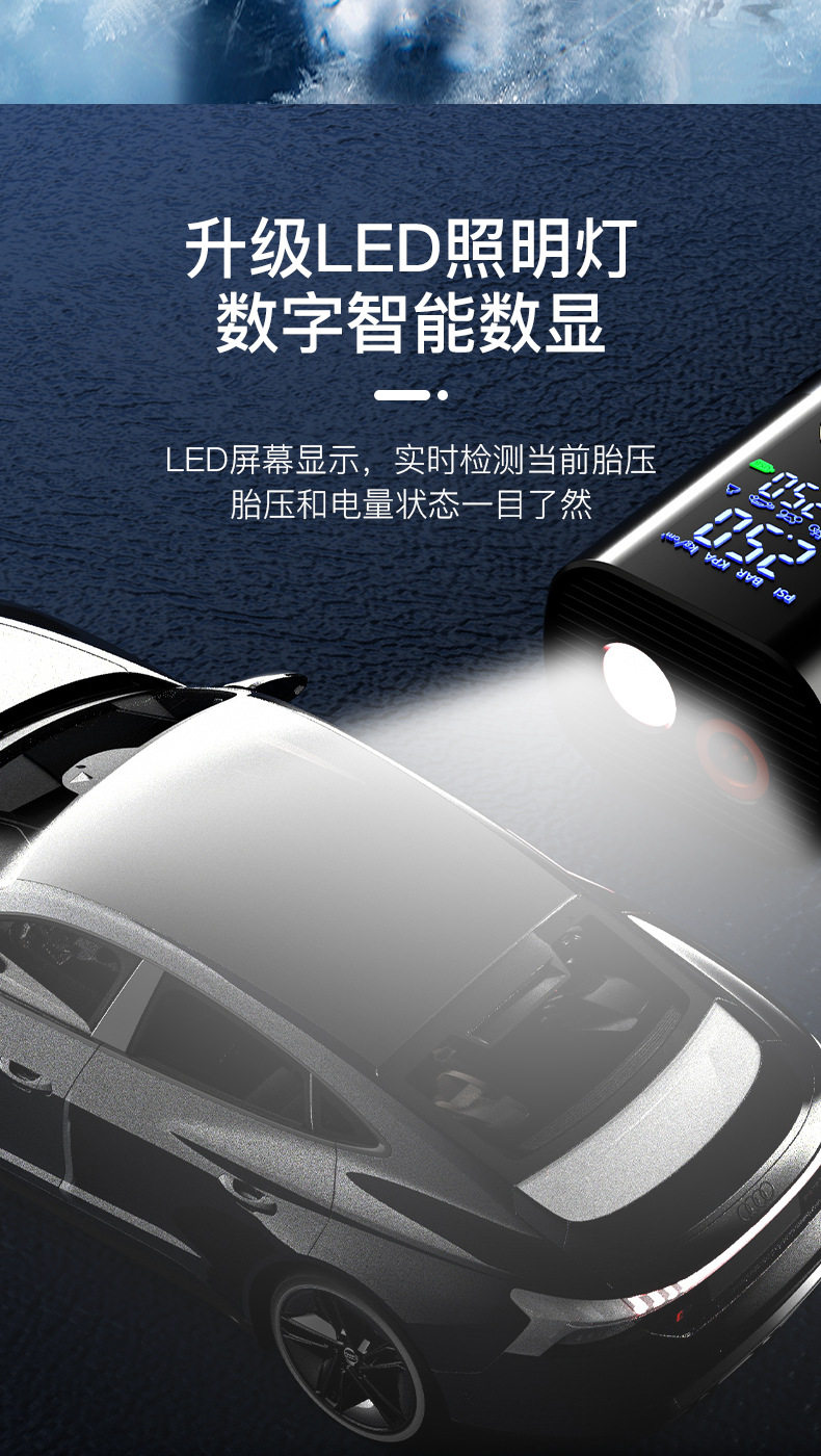 Wireless car air pump lighting warning car tire air pump intelligent digital display car motorcycle air pump