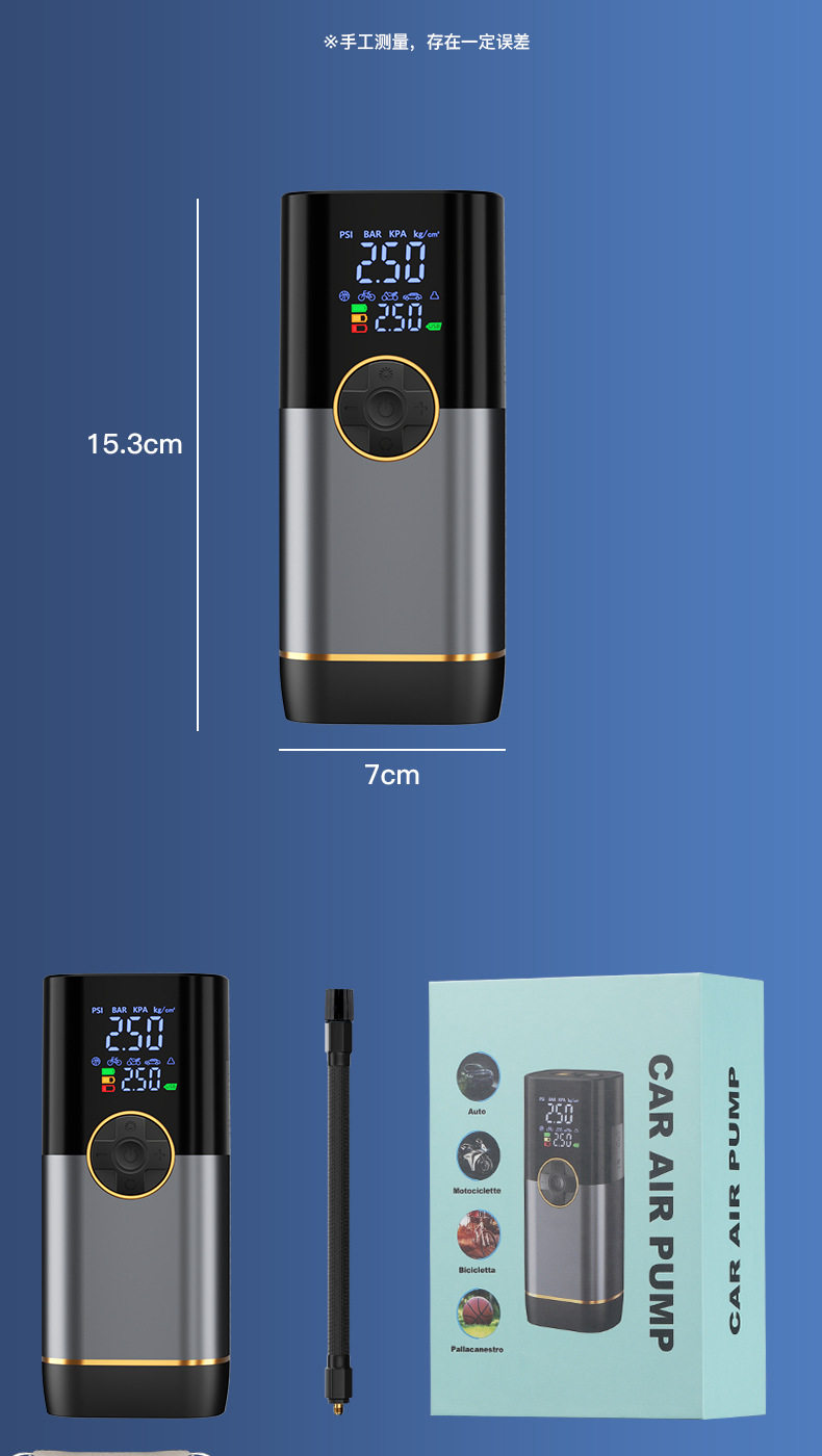 | Specification | Green aluminum alloy wireless air pump,Gold aluminum alloy wireless air pump,Two-in-one air pump with electric start,Dual-purpose car smart air pump,Wireless car smart air pump,Space gray basic model (cigarette lighting cord),Space gray dual-purpose model (lithium battery + cigarette lighter cord),Pearl black basic style (cigarette lighting cord),Pearl black dual-purpose model (lithium battery + cigarette lighter cord),Cx-229 wireless air pump,Aluminum alloy wired battery-free air pump |