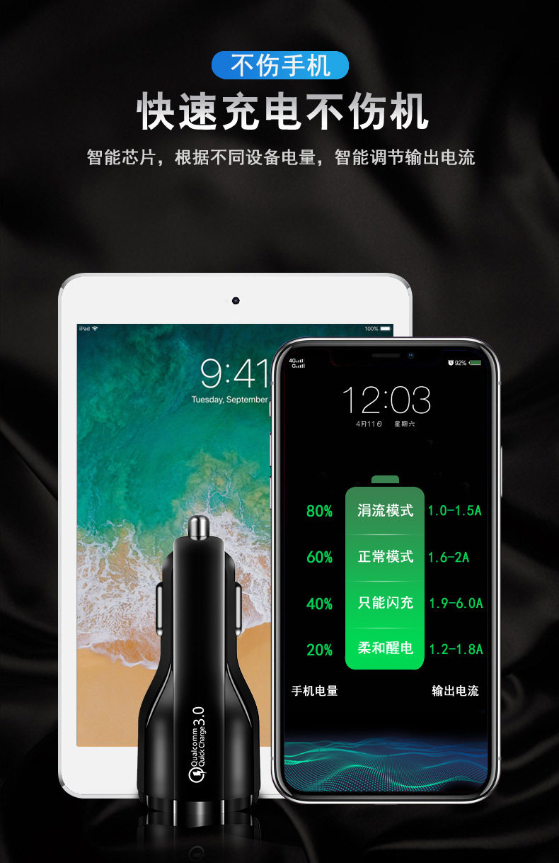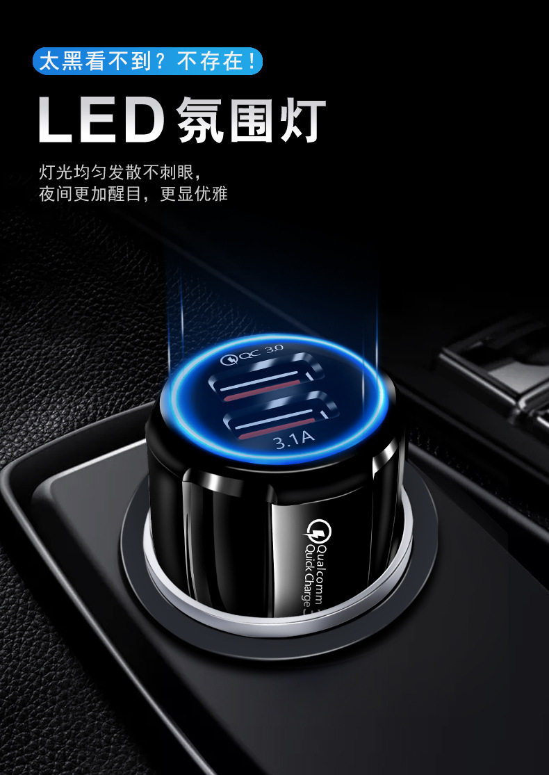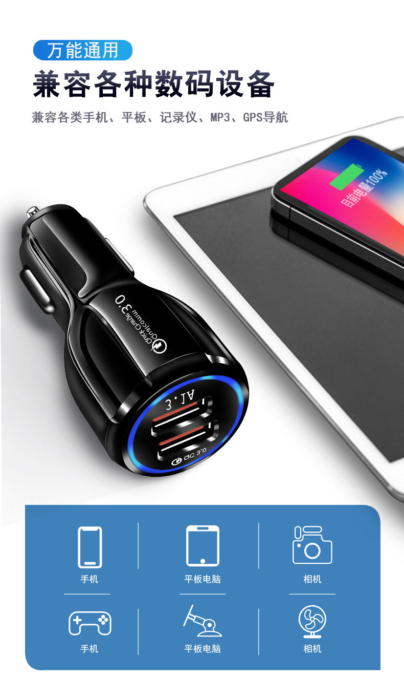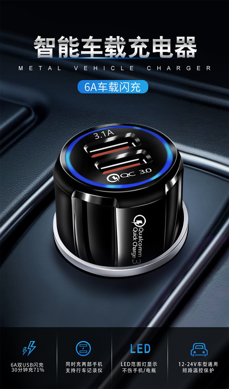 6A fast charging high current car car one drag two flash cigarette lighter plug multi-function usb car charger