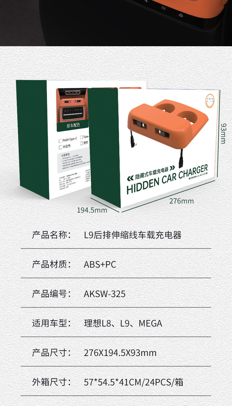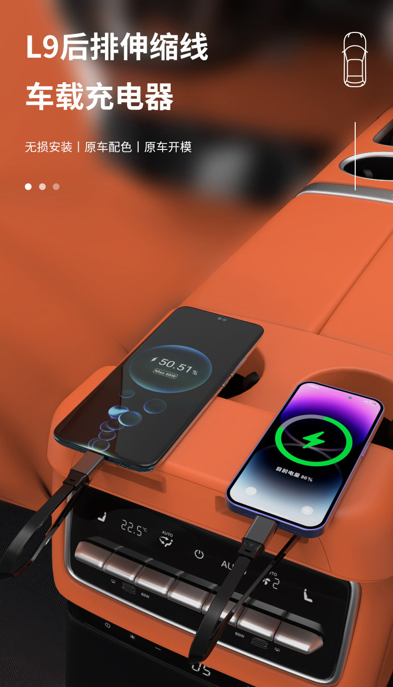 Suitable for ideal rear L8/L9/mega super fast charging expansion docking car with magnetic telescopic cable adapter