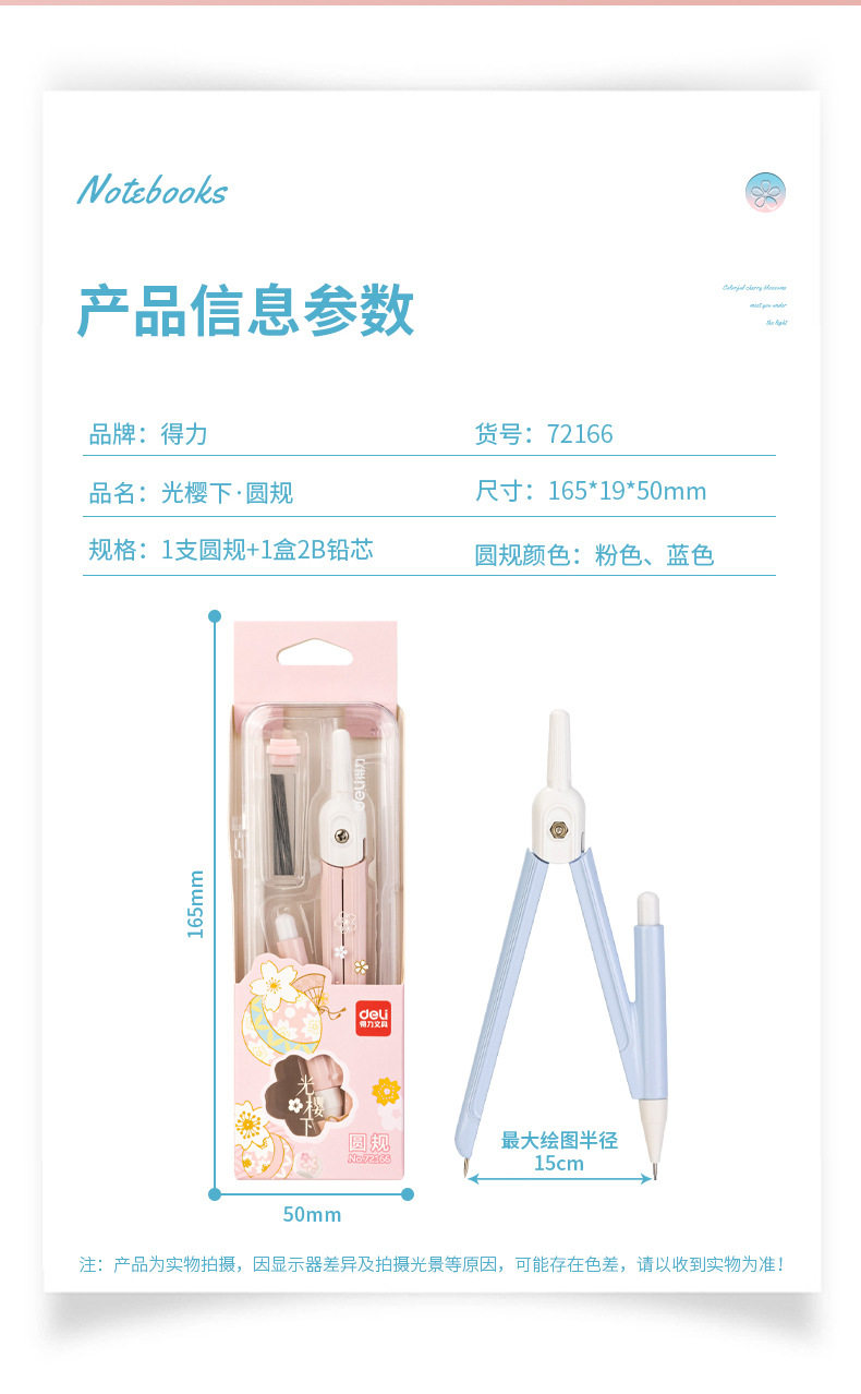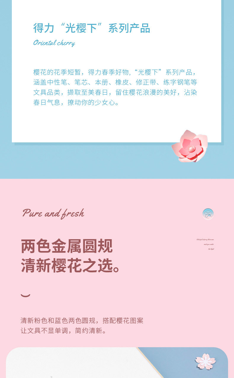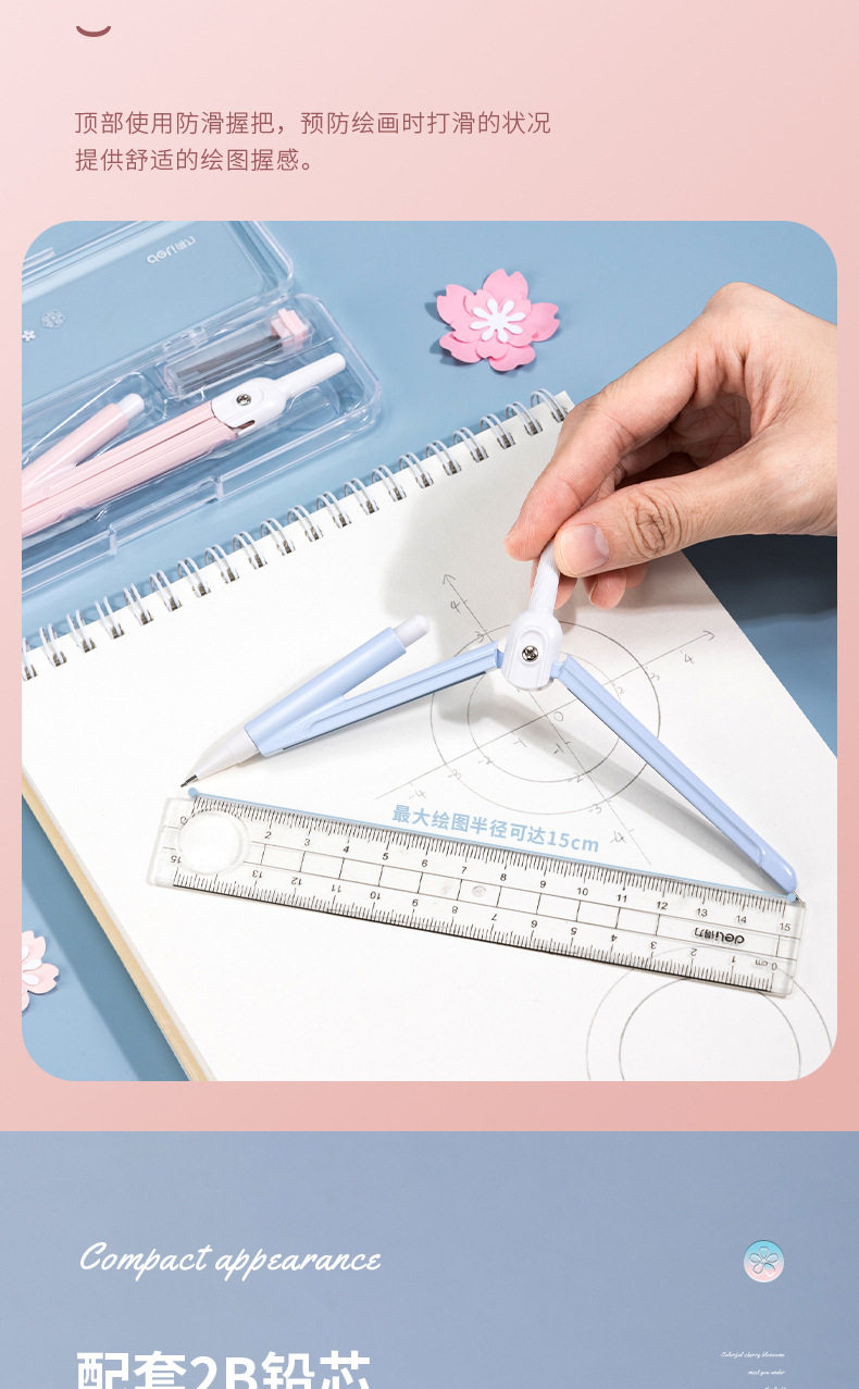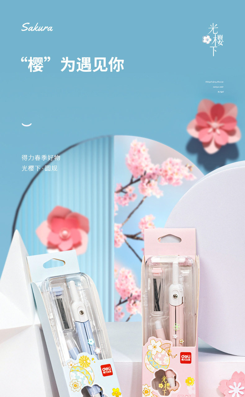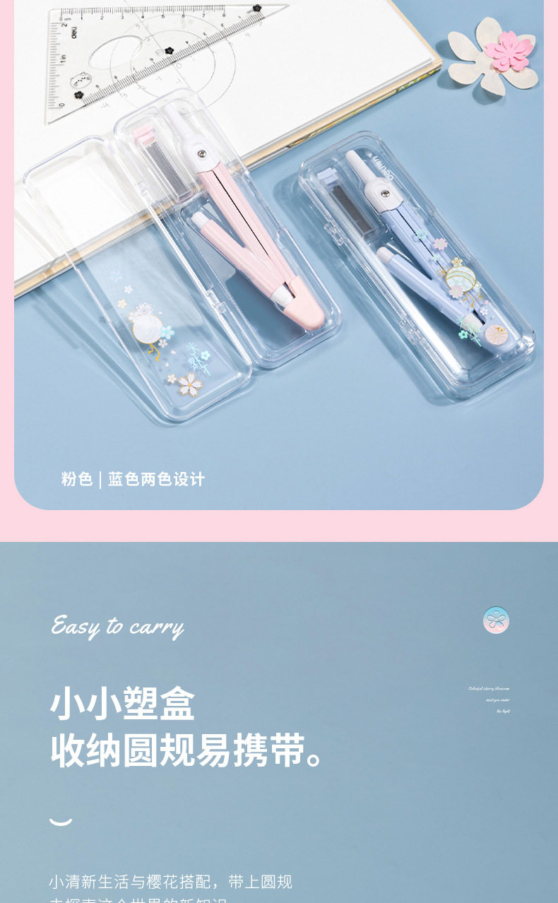 Deli 72166 Cherry Blossom Combs suit for Junior High School Students and Primary School Students Metal Combs Replaceable Refill Drawing Tool