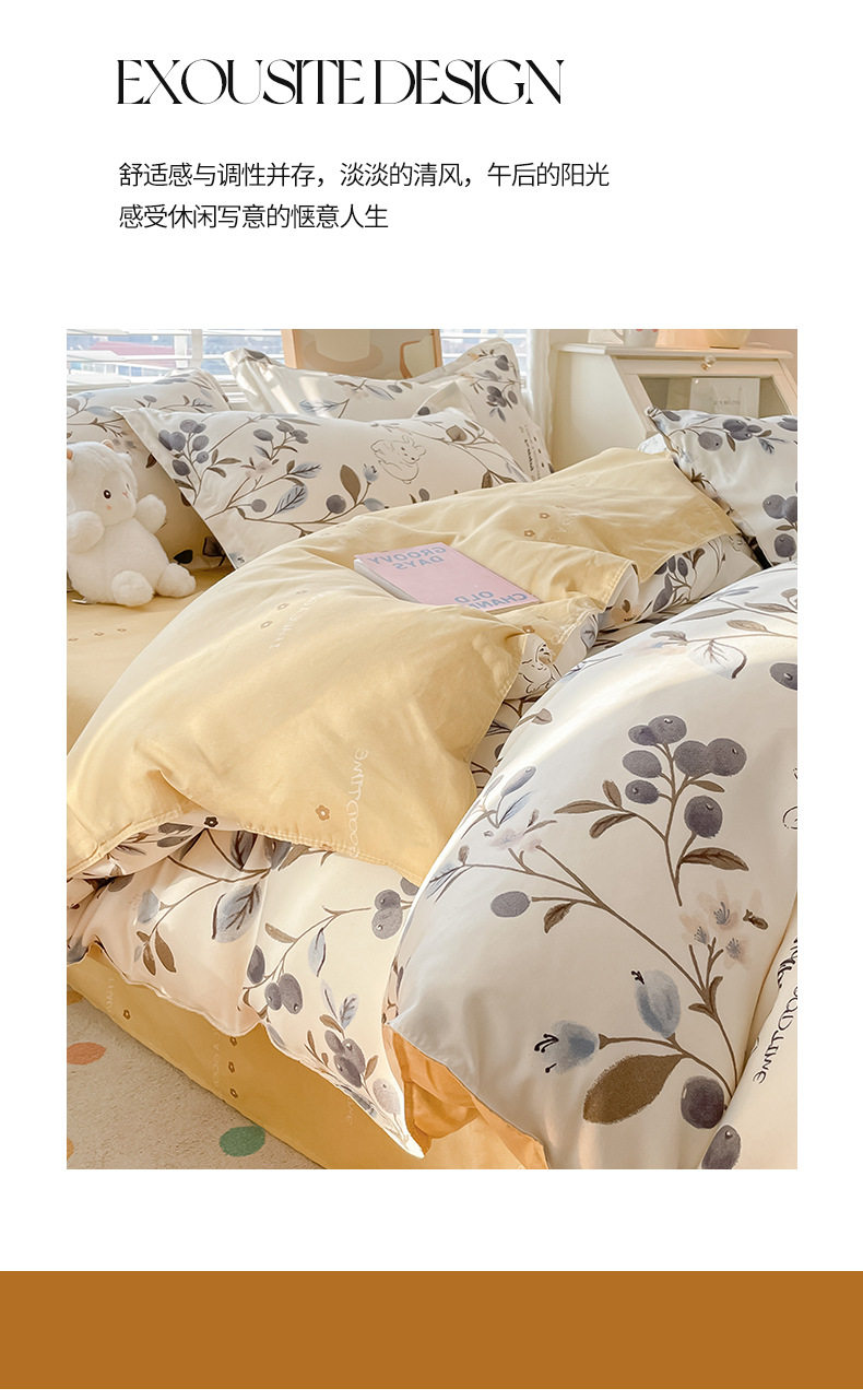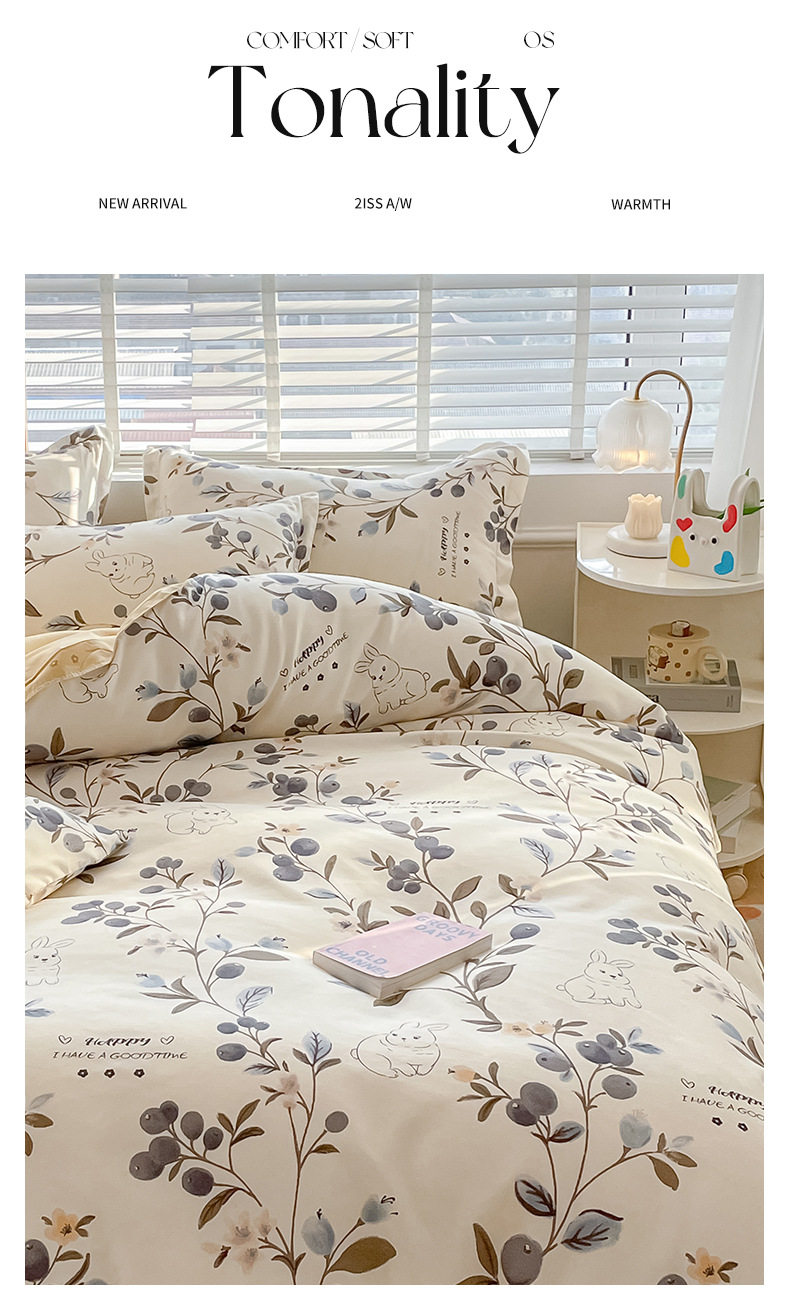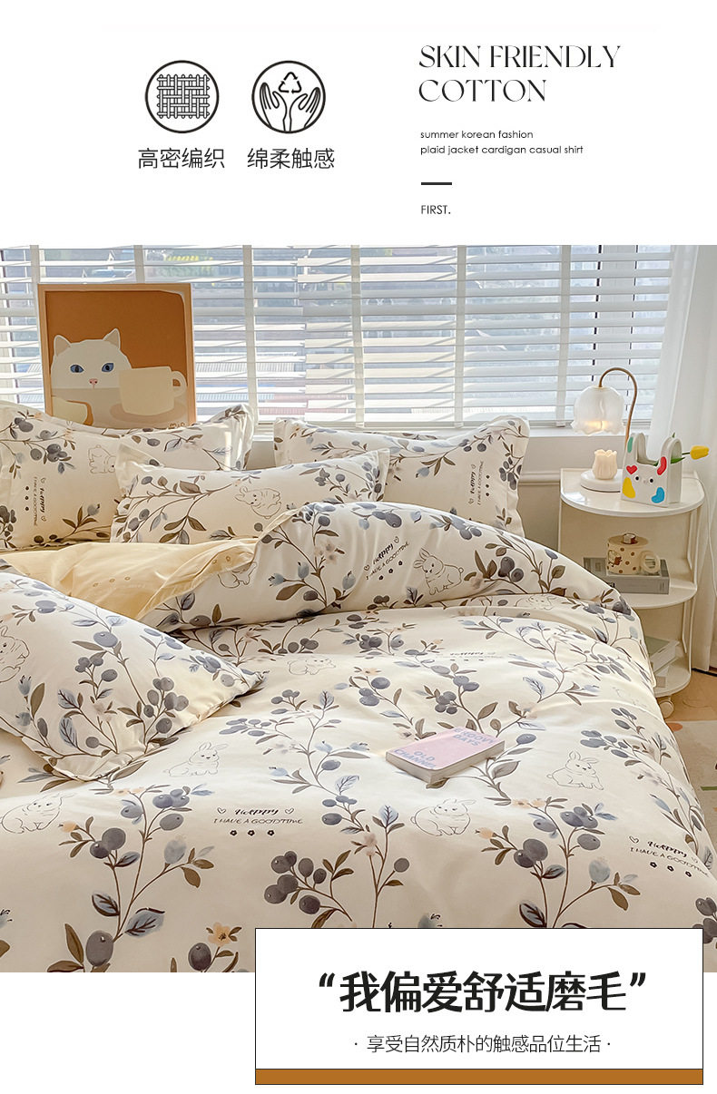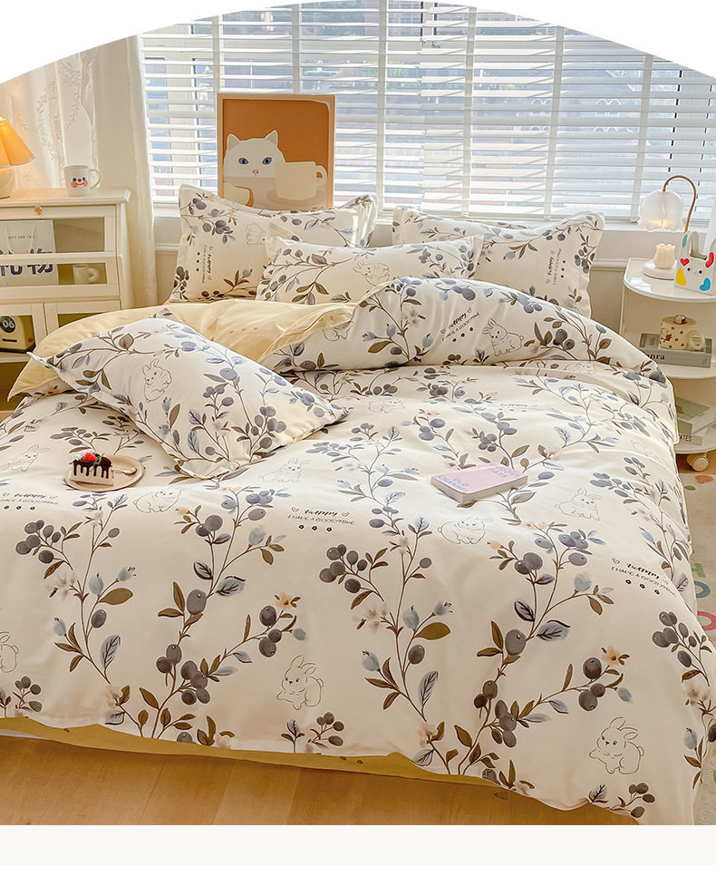 Pastoral Style Plant Cashmere Printed Four-Piece Bedding Set Student Dormitory Pure Cotton Bed Sheetss Three-Piece Comfortable Set