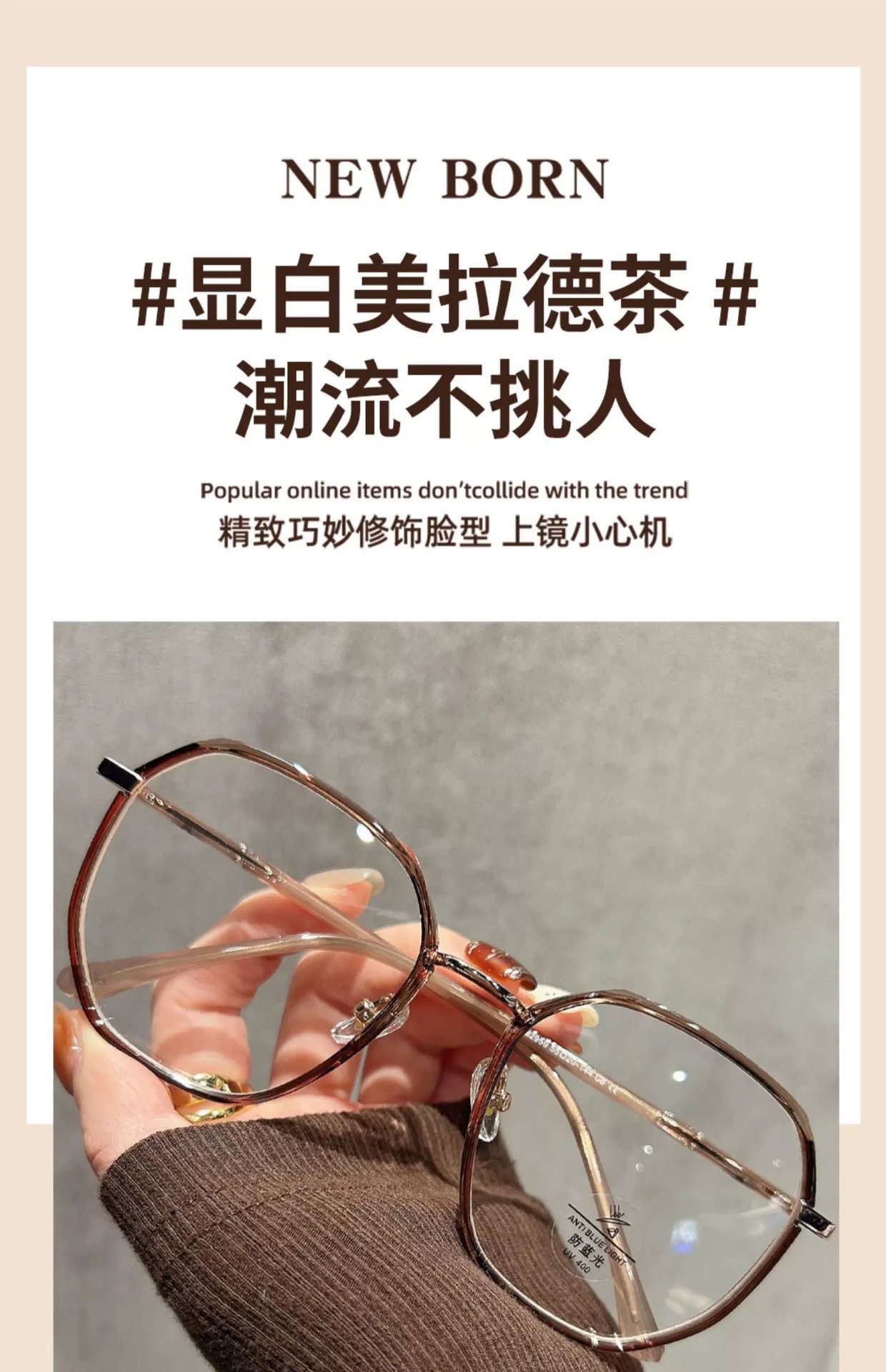 Polygonal Ultra-light Tea Color Glasses Frame Women's Myopia Can-match White-free Big Frame Big Face Slim Glasses Frame