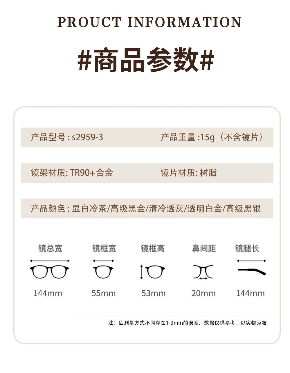 | Frame color | Whitening cold tea,Cool gray silver,Premium black gold,Amber tortoise shell,Premium black silver |