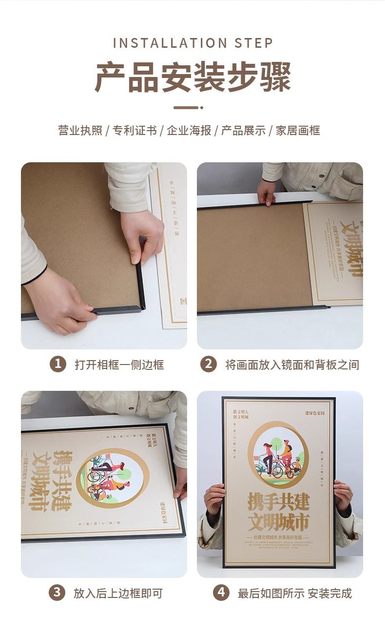| Frame size | A4 wall hanging [inner diameter 29.7*21cm],A3 wall hanging [inner diameter 29.7*42cm],A2 wall hanging [inner diameter 42*59.4cm],36inch wall-mounted [inner diameter 60*90cm],Wall hanging [60*80cm],【40*60cm】,Wall hanging [50*70cm],Customized size - contact customer service for a quote,Wall hanging [70*100cm] |