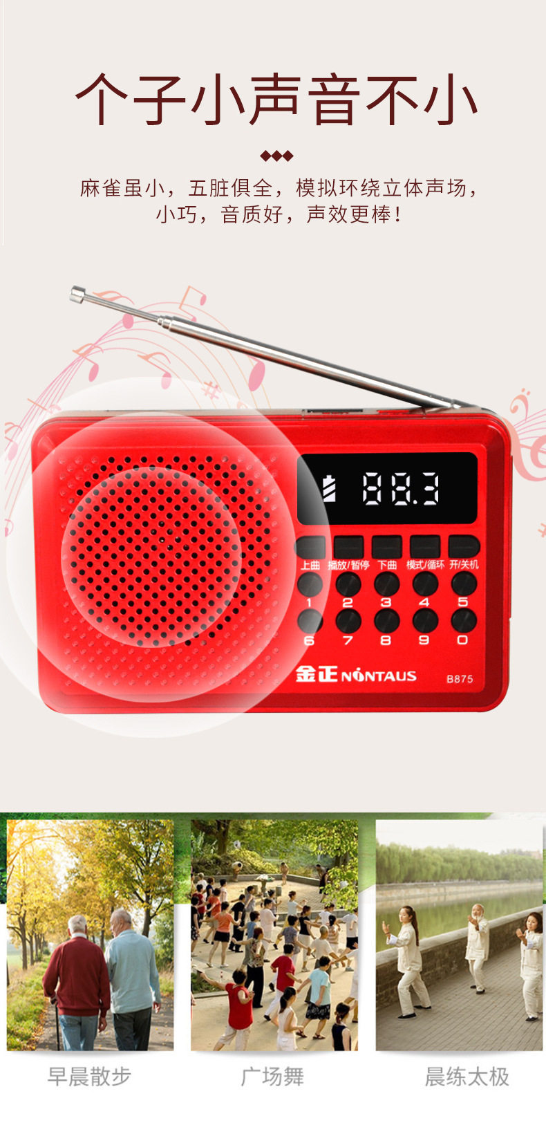 Jinzheng B875 Bluetooth Card-Inserting Speaker Mini Radio Singing and Playing Machine Small Player Audio Card-Inserting Radio