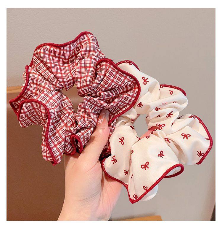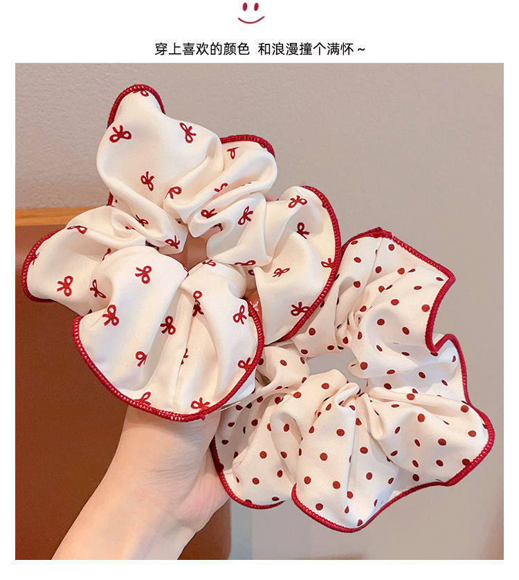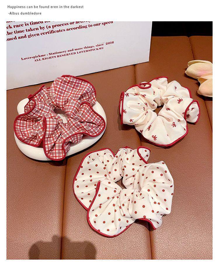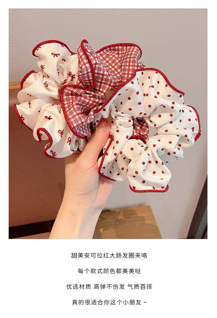 Wave Dot Plaid Red Large Intestinal Ring No Injury Hair Rope Girl's Balls Hair Ring High Elastic Hair Rope Hair Accessories