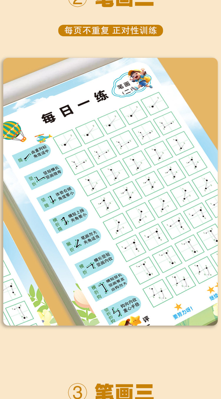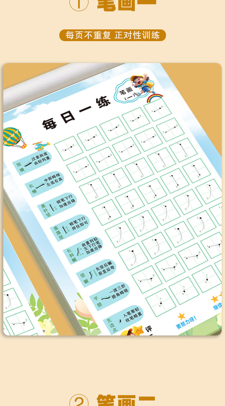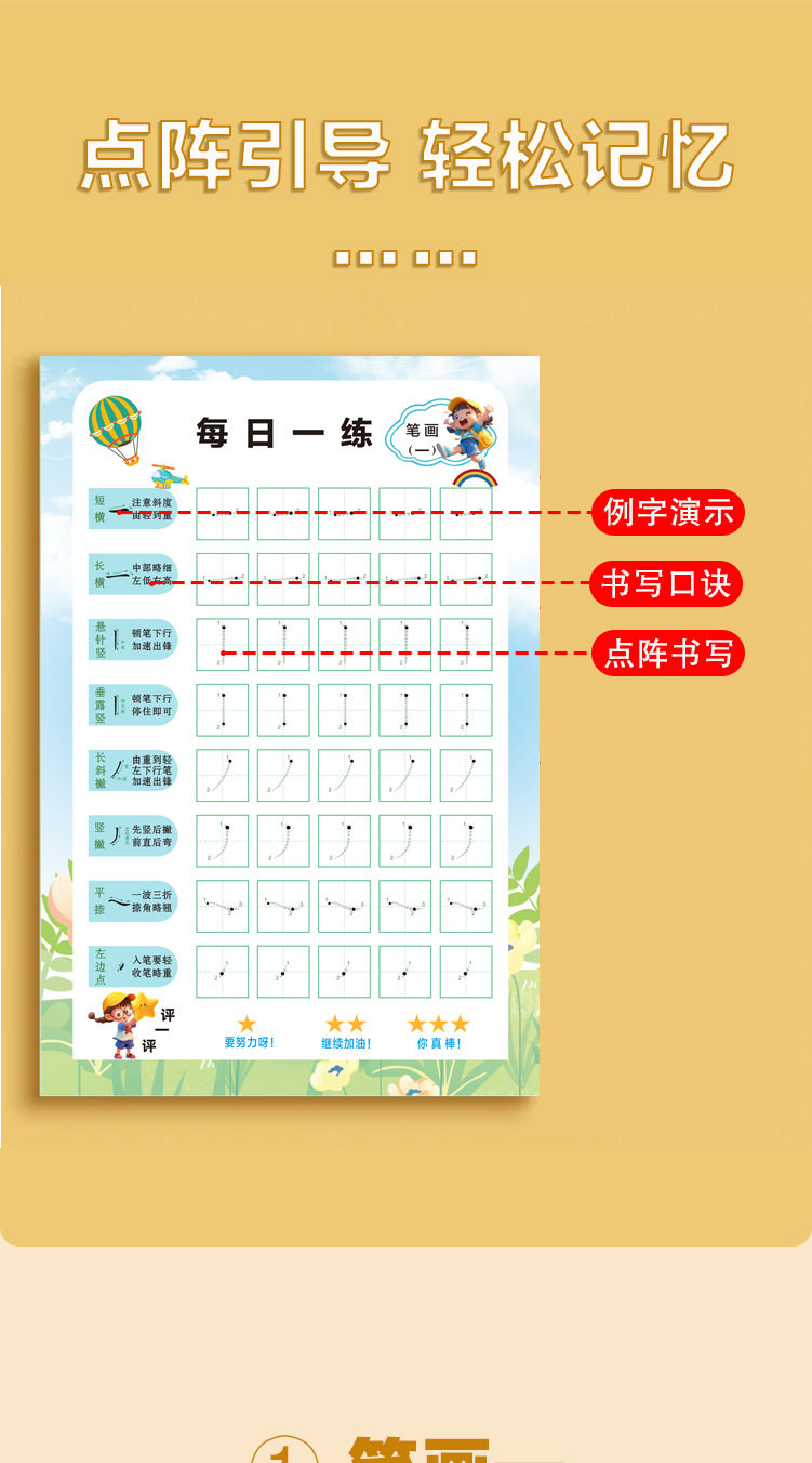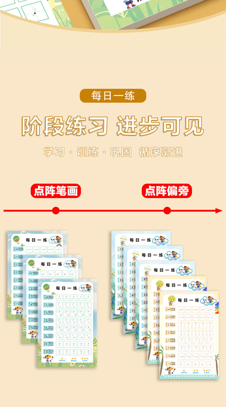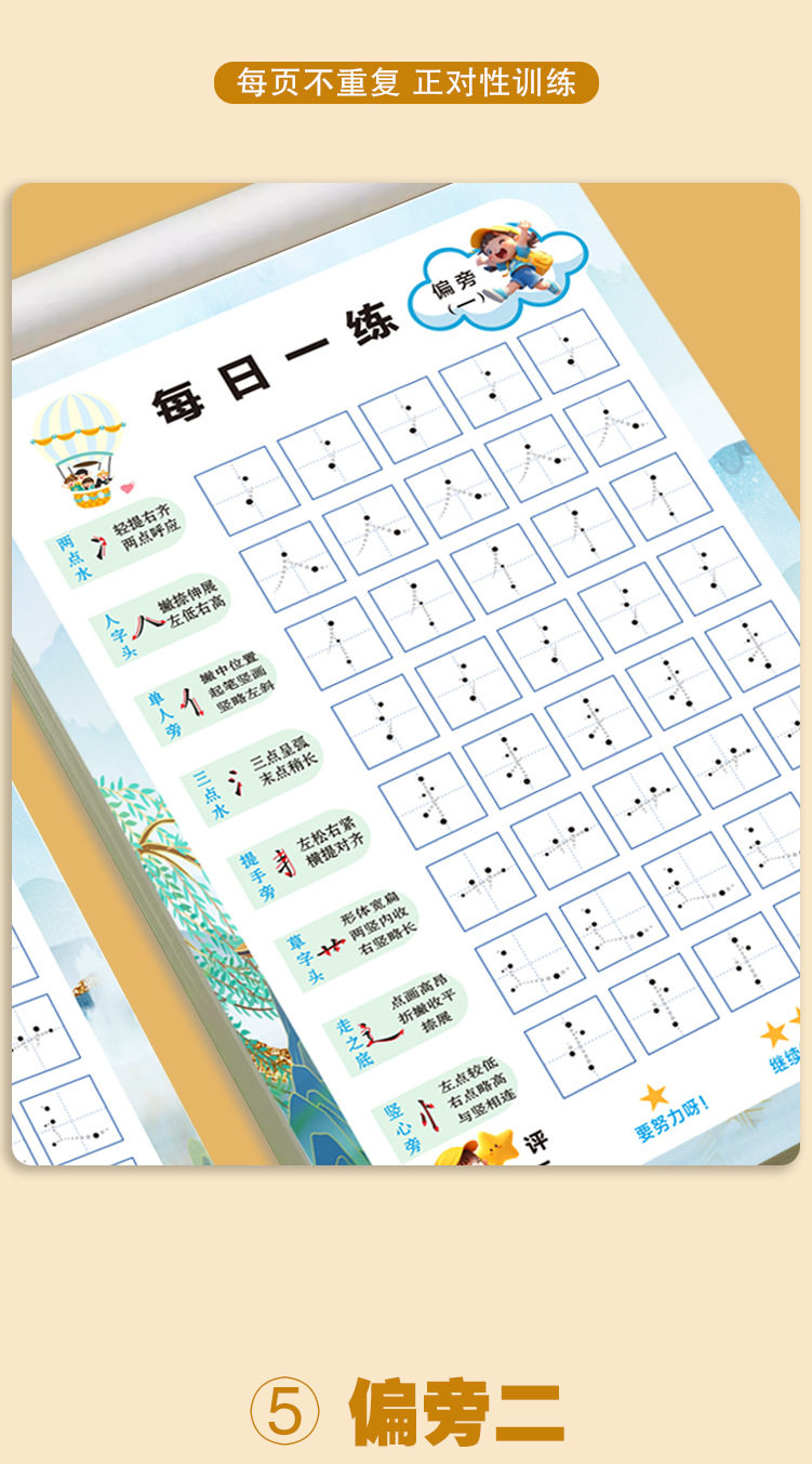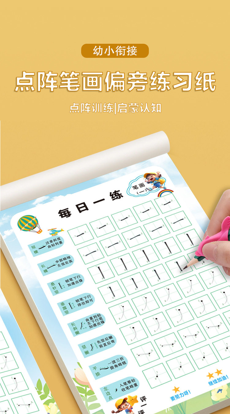 [Stroke Radicals Dot Matrix Pen Control Set] Practice Calligraphy Every Day, Connect the Basic Strokes and Stroke Order for Young Children