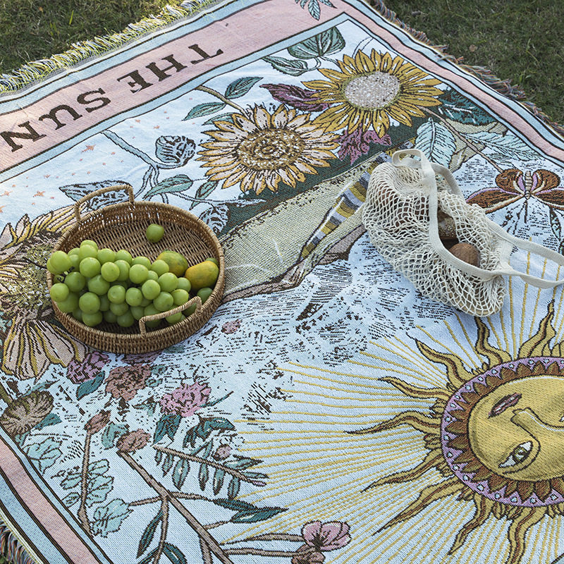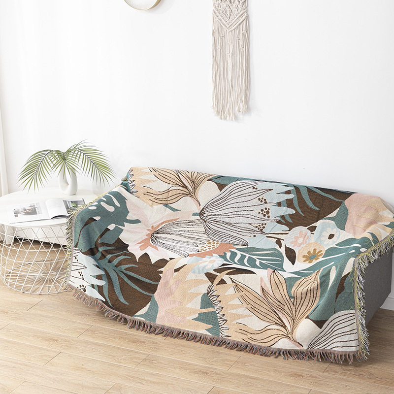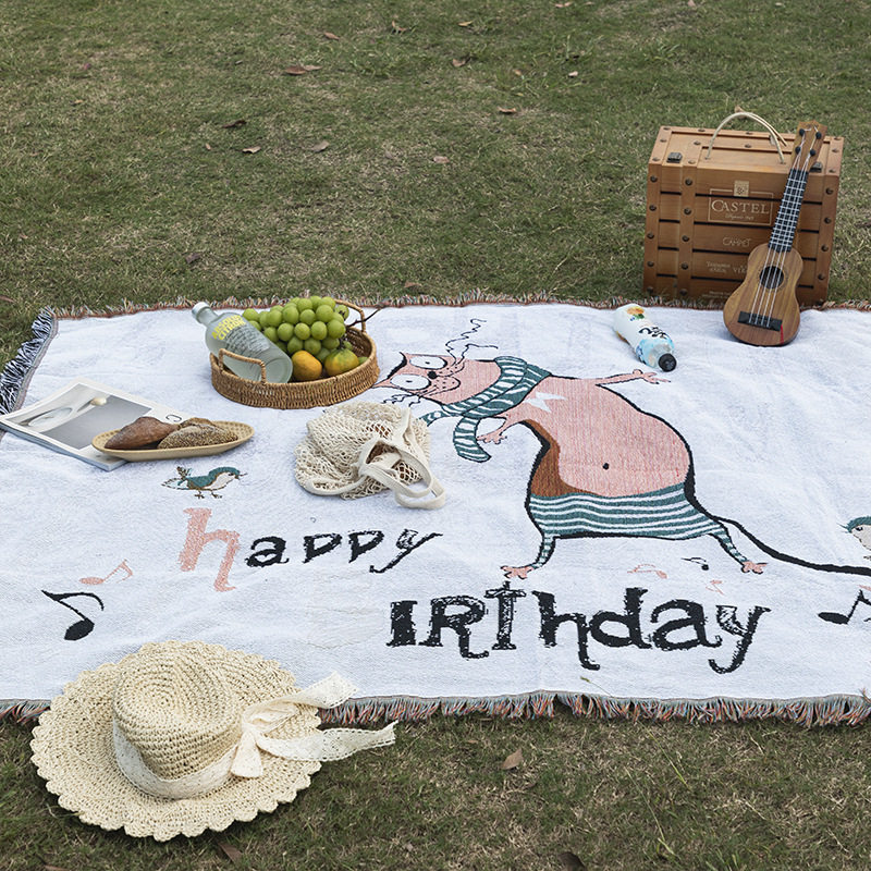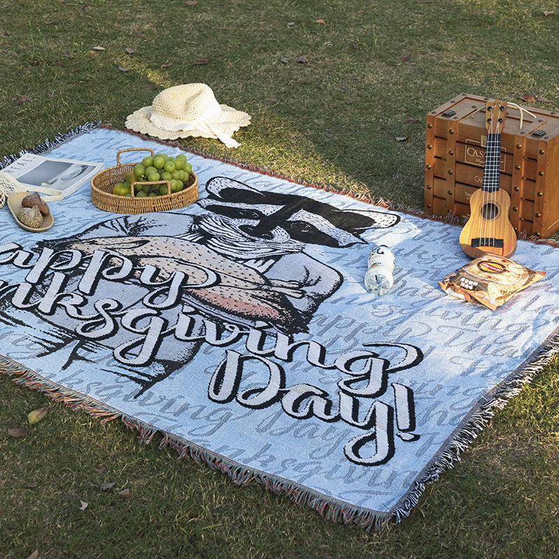Cross-Border Customized American Outdoor Camping Blanket Picnic Mat Jacquard Sofa Blanket Thickened Decorative Tapestry Cotton Thread Blanket in Stock