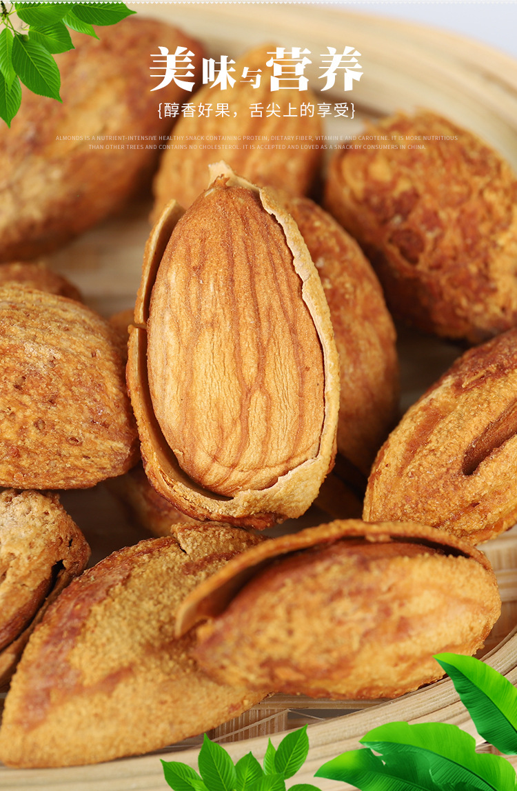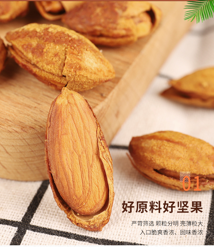 | Raw materials and ingredients | Almond raw materials, edible salt, white sugar, monosodium glutamate, natural spices, food additives (cyclamate, acesulfame potassium, saccharin sodium, aspartame |