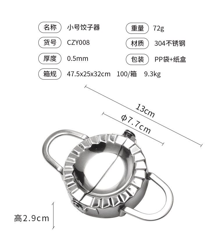 | Specification | Stainless steel dumpling mold [large size],Stainless steel dumpling mold [small size] |
