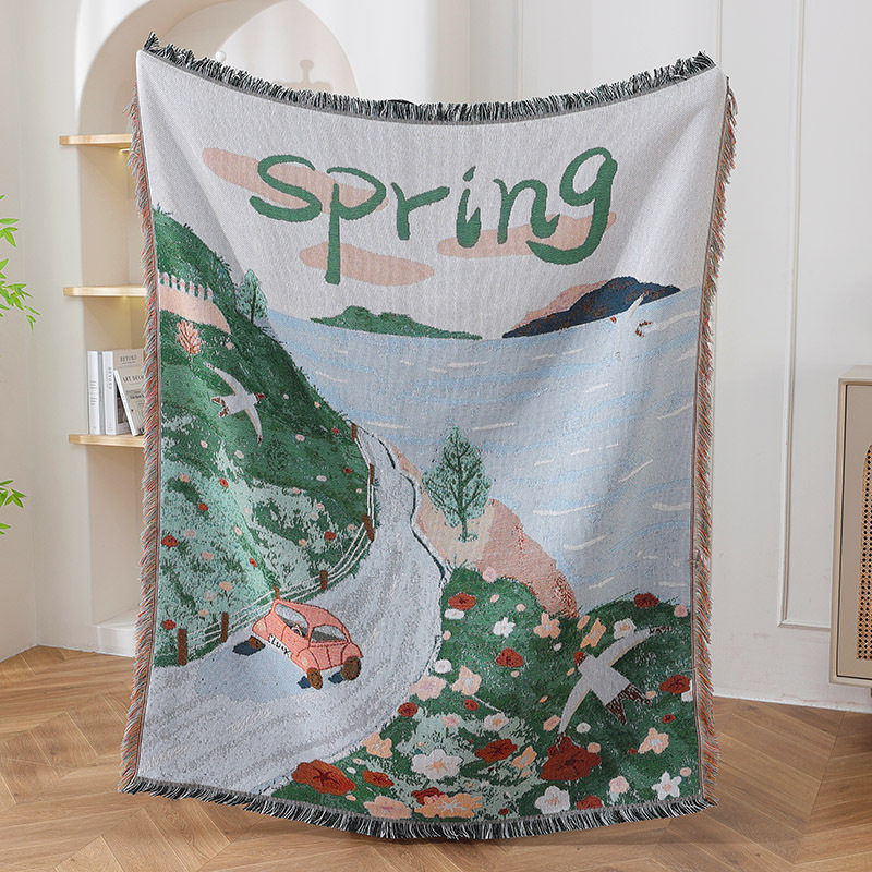 Custom Jacquard Decorative Tapestry Cotton Thread Blanket Sofa Towel Office Nap Cover Blanket High-end Gift Blanket Tapestry Factory