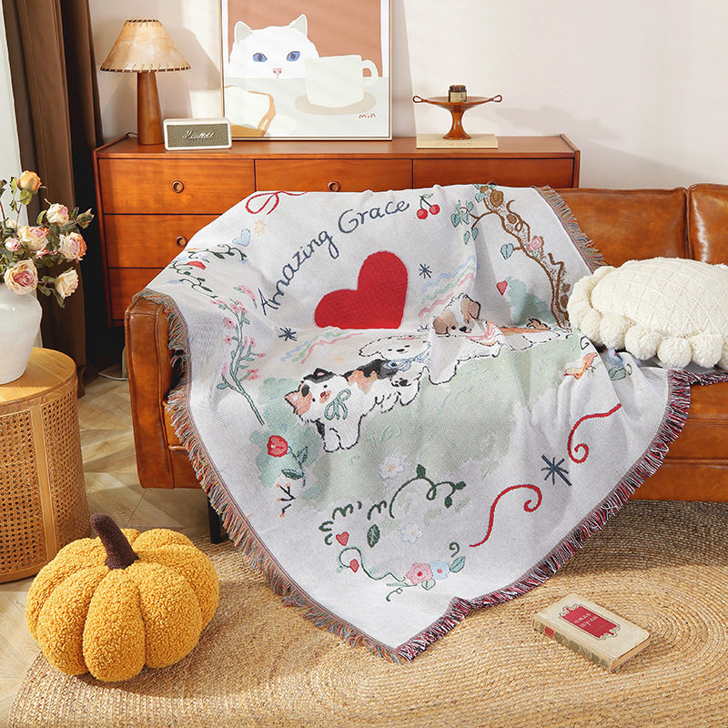 Foreign Trade Custom Pattern Light Luxury Jacquard Tapestries Cotton Blanket Sofa Towel Office Nap Cover Blanket High-end Gift Blanket
