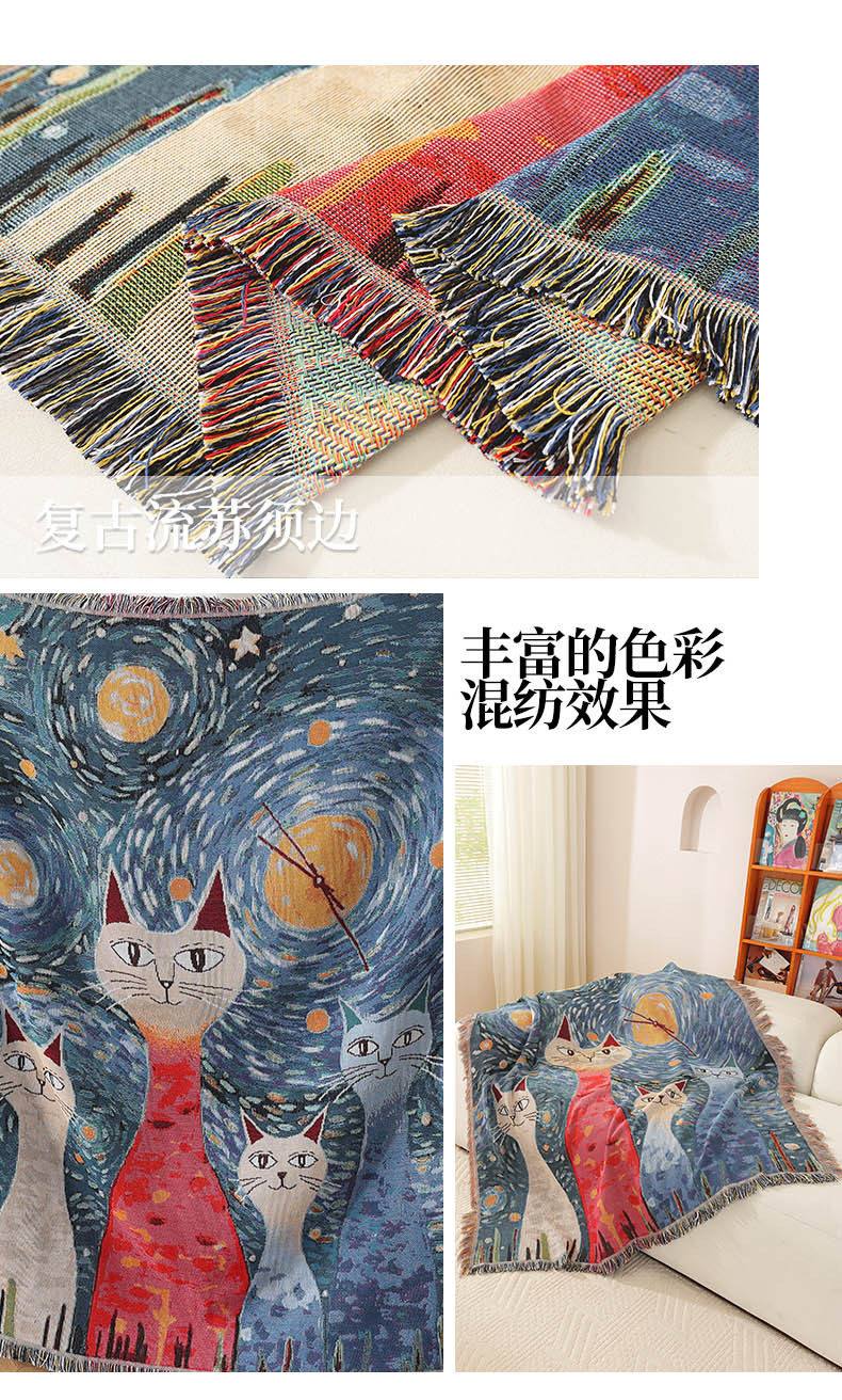 Customized Pet Kitten Jacquard Decorative Tapestry Cotton Thread Blanket Sofa Towel Office Nap Blanket High-End Gift Blanket