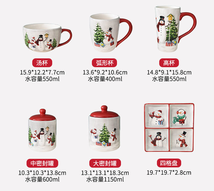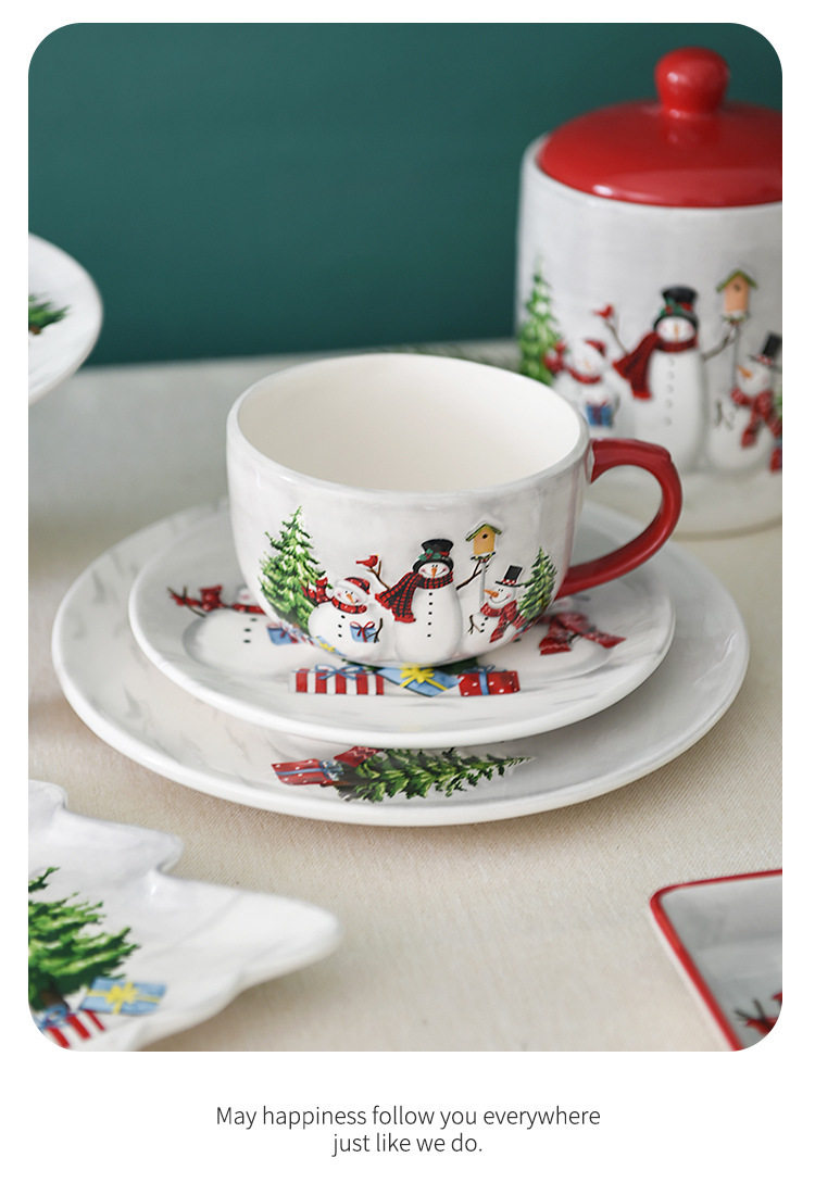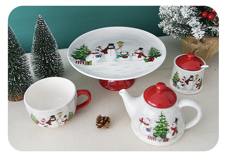 Christmas Tableware Set Snowman High-Value Ceramic Mug Dinner Plate Teapot Gift Wholesale Ceramic Christmas