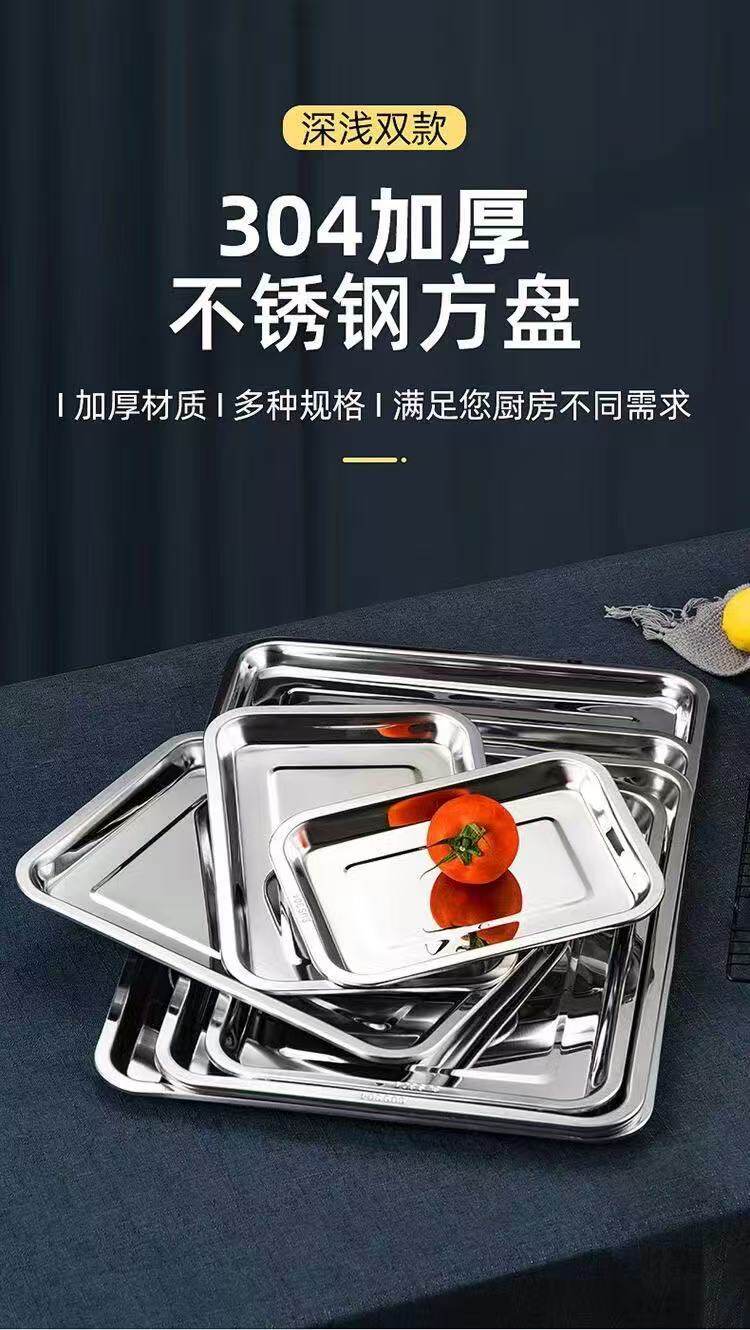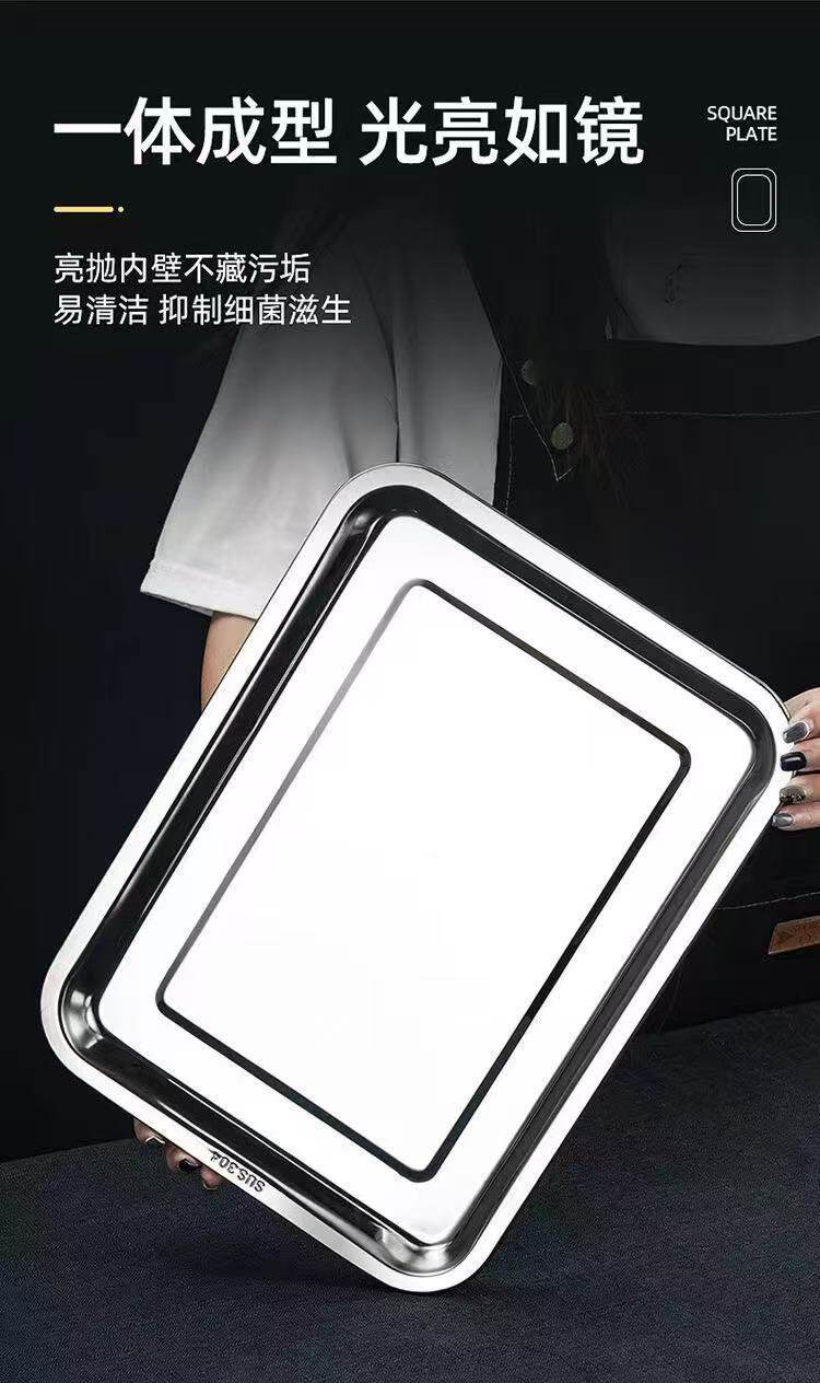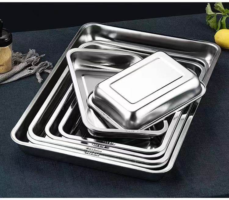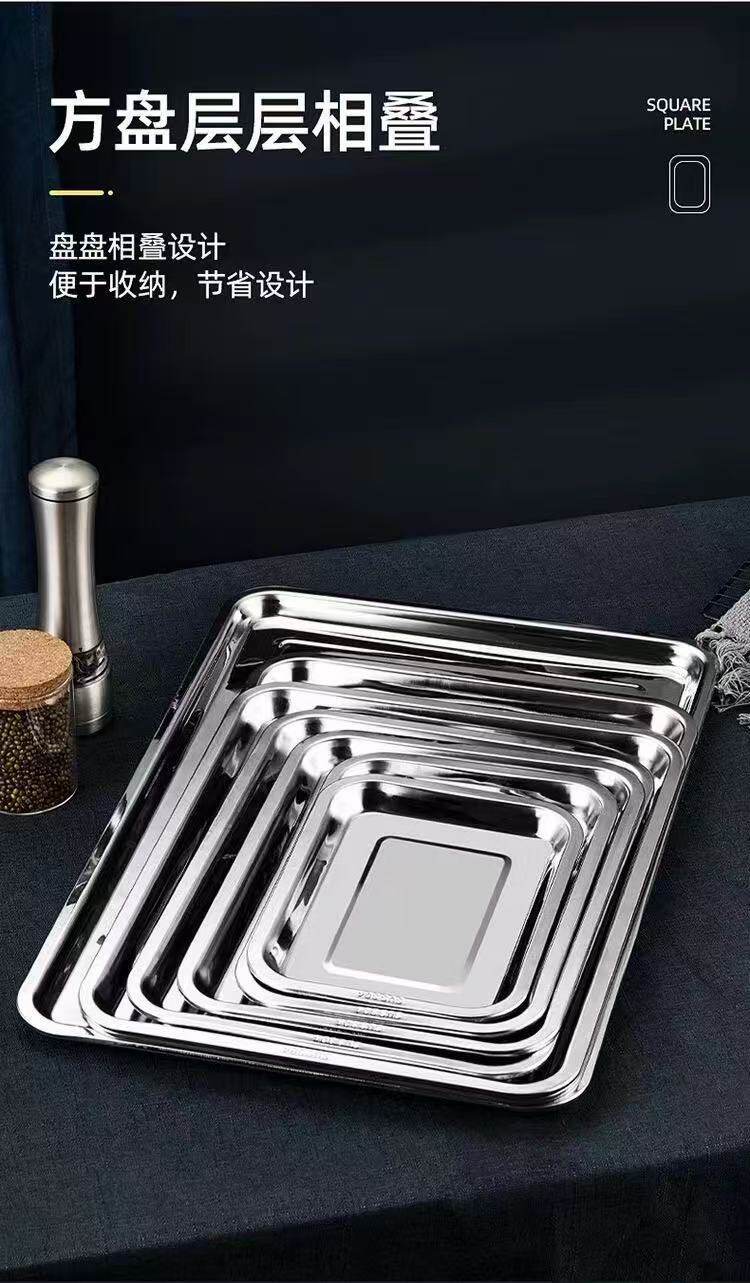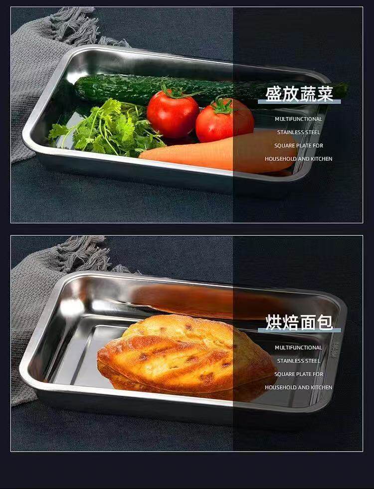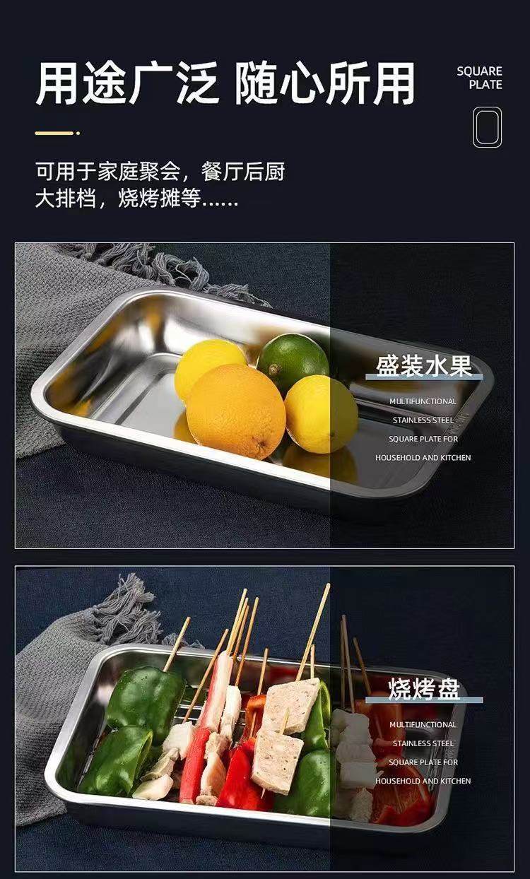 304 Stainless Steel Square Plate Flat Bottom Barbecue Plate Dumpling Plate Restaurant Steamed Rice Plate Multi-purpose Plate Thickened Rectangular Tray