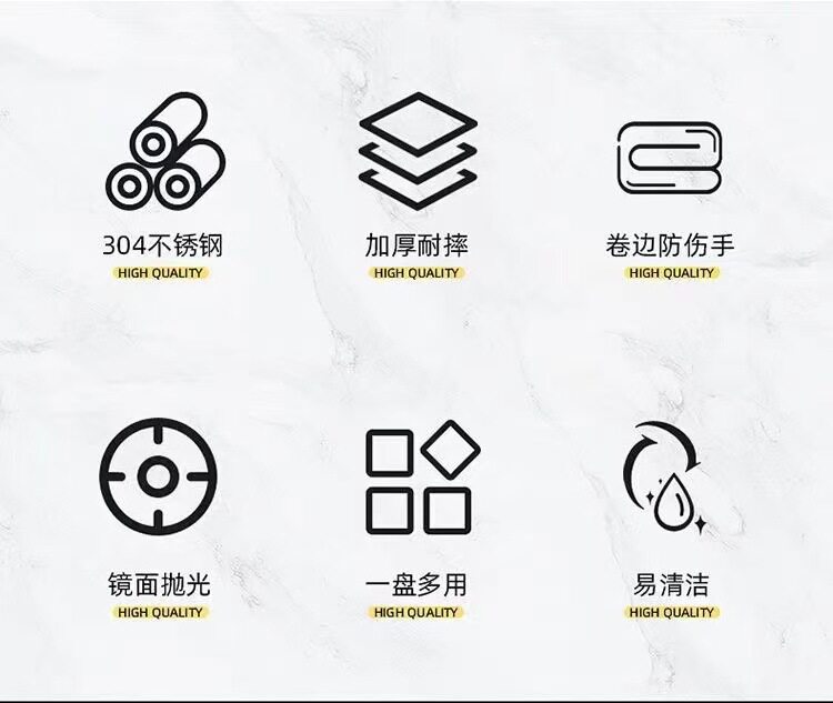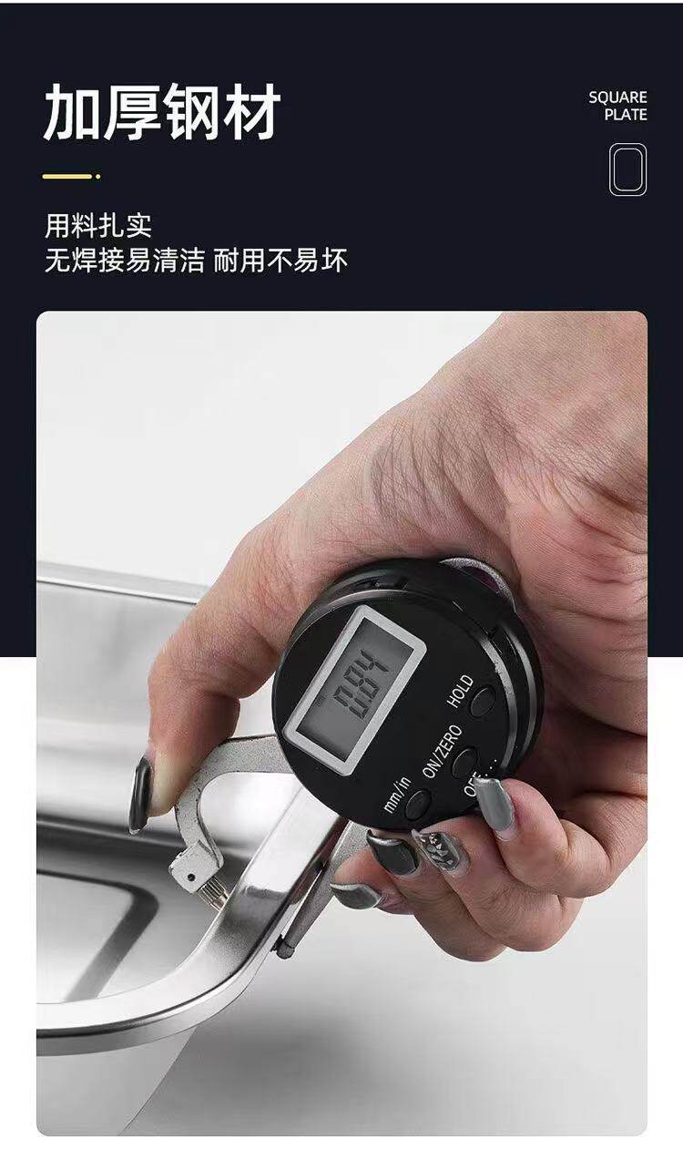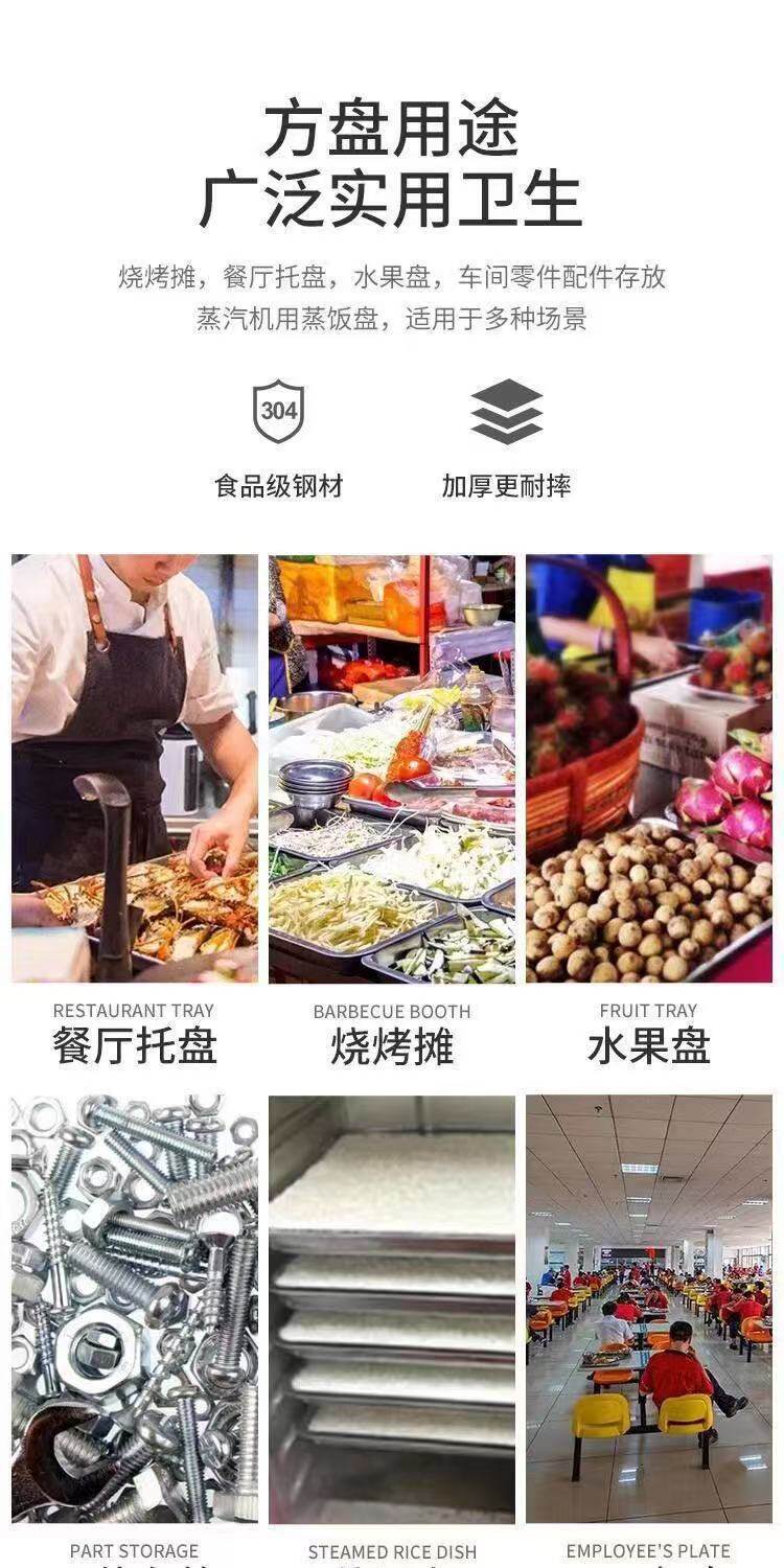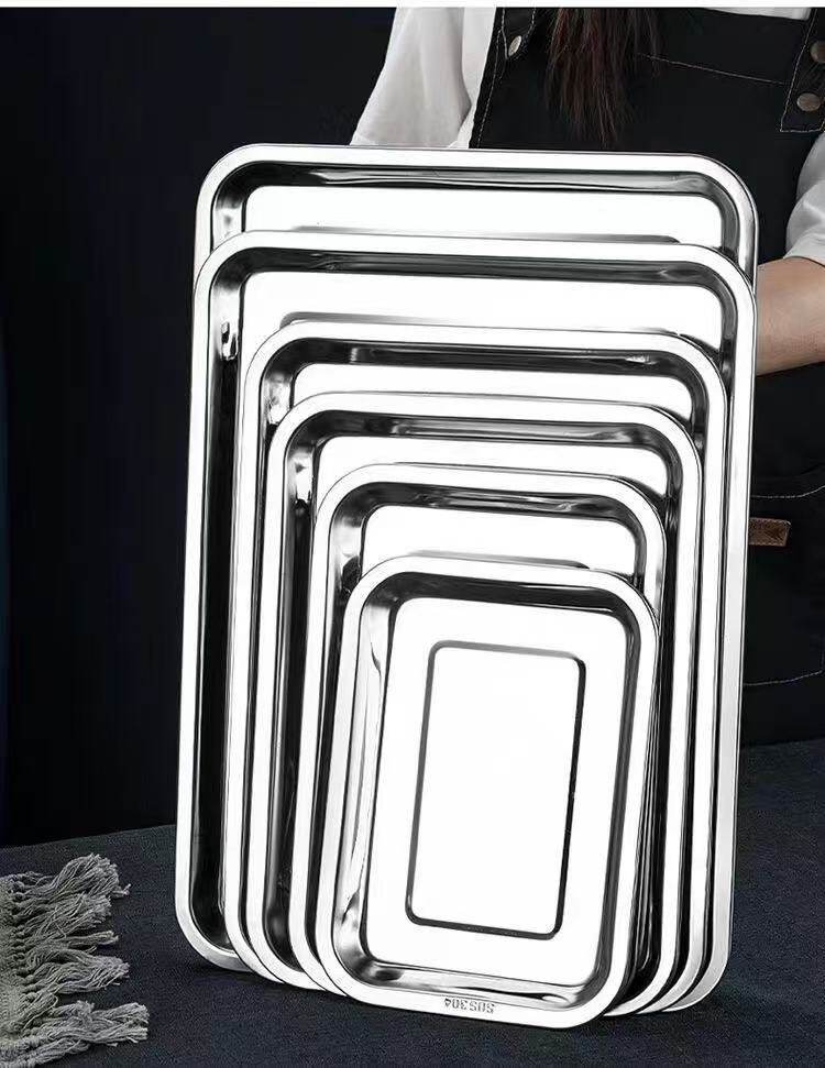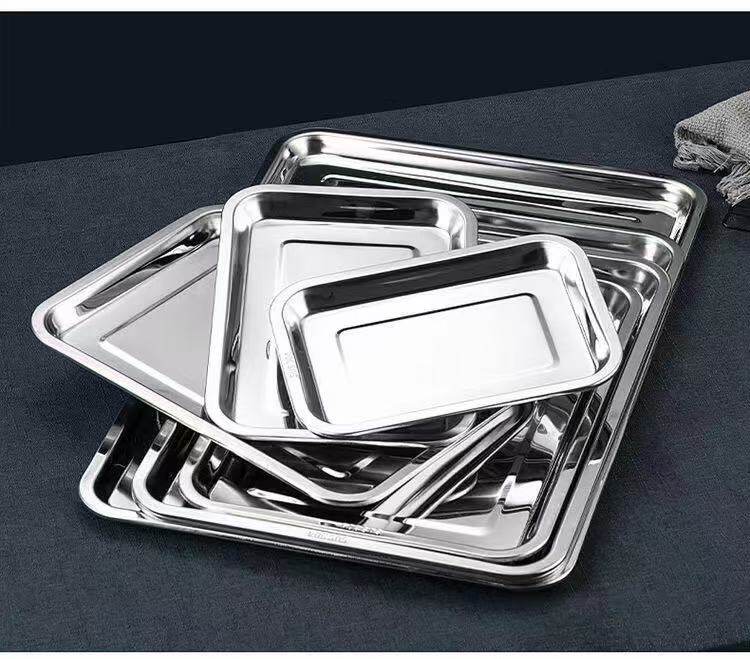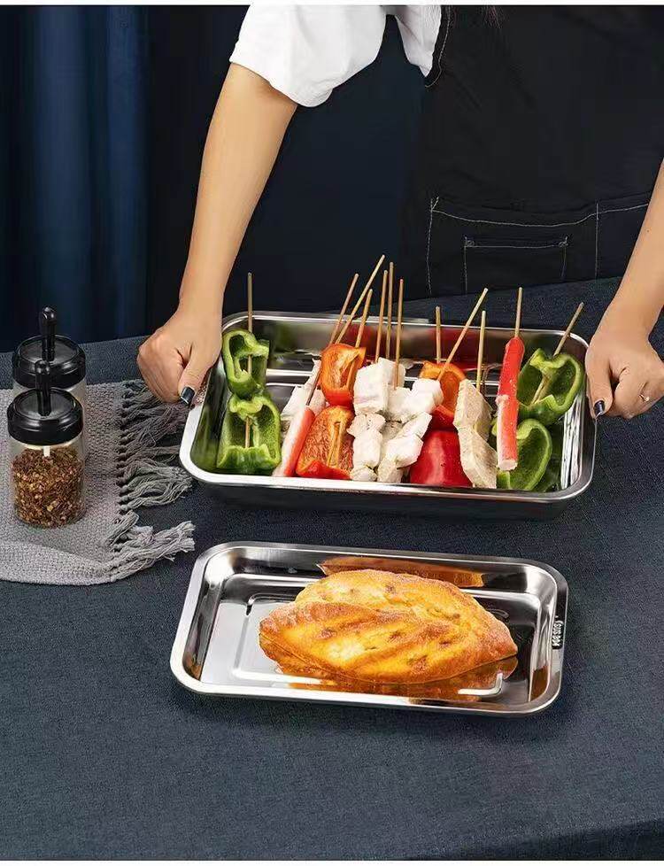 304 Stainless Steel Square Plate Flat Bottom Barbecue Plate Dumpling Plate Restaurant Steamed Rice Plate Multi-purpose Plate Thickened Rectangular Tray