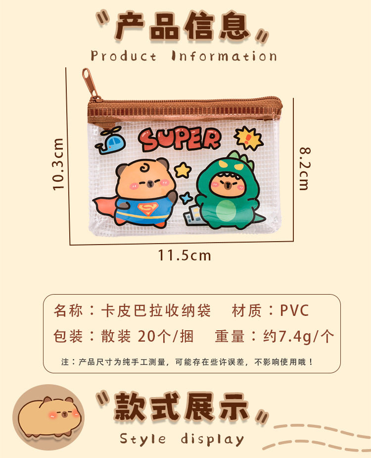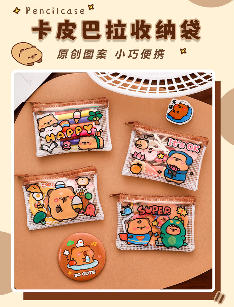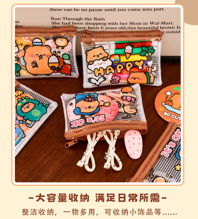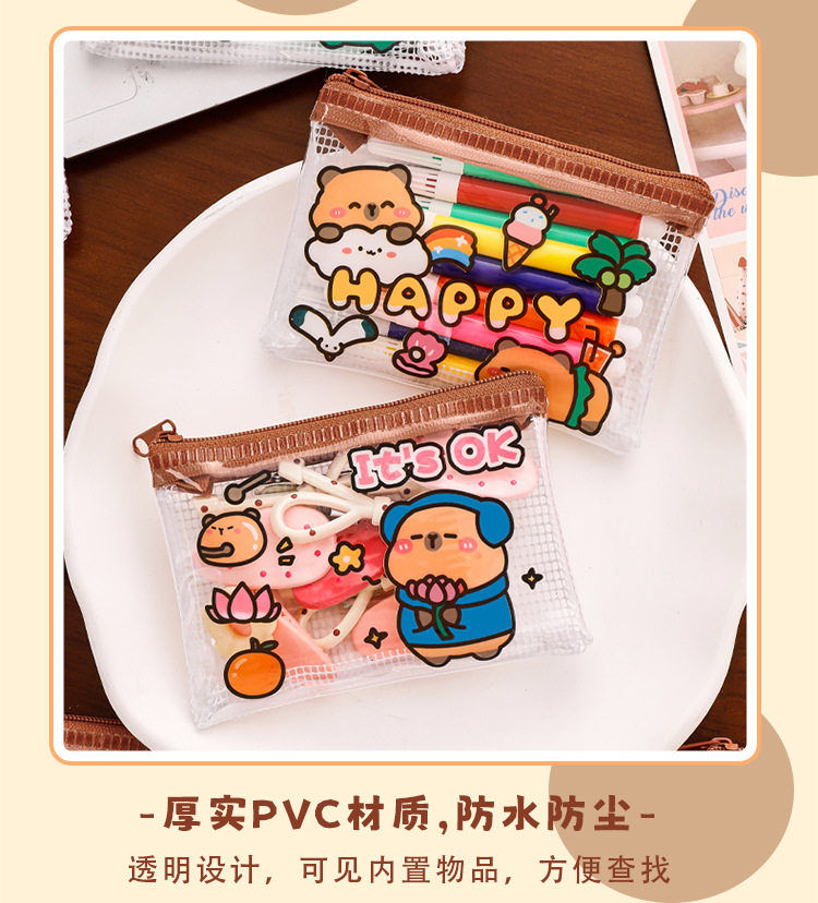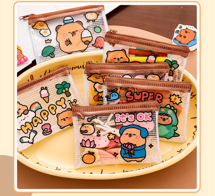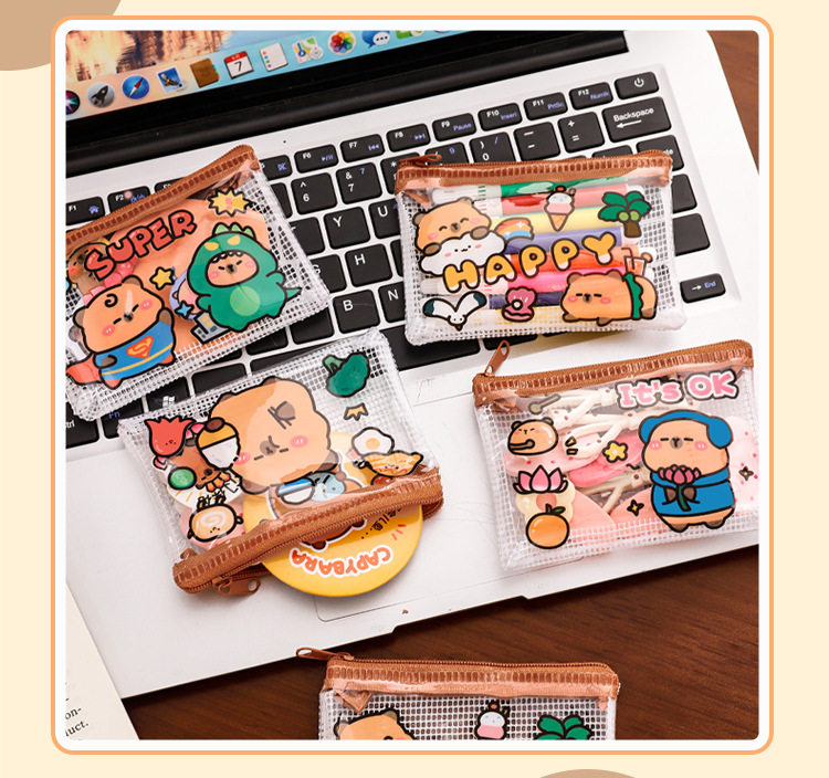 Lovable Capibala Coin Purse Children's PVC Mini Portable Storage Bag Student Cartoon Capybara Lipstick Small Bag