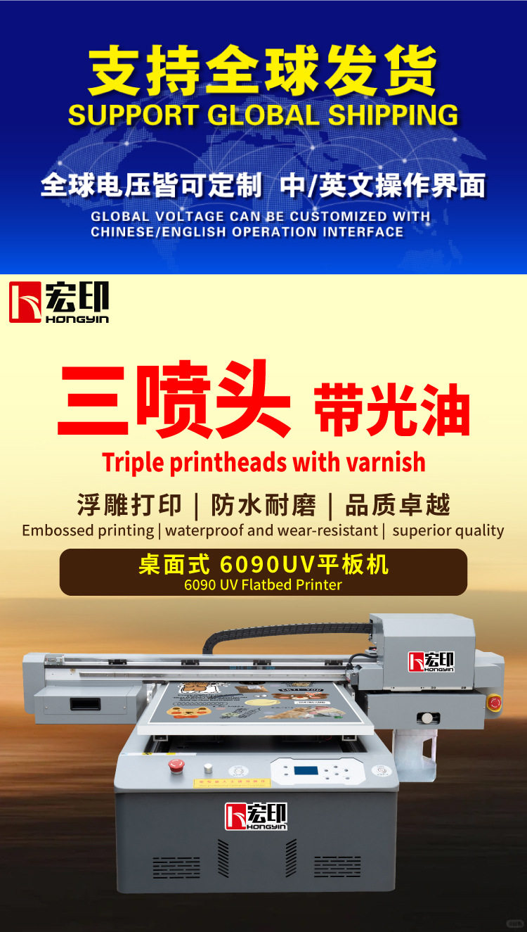 Hongyin 6090Uv Flatbed Printer 3D Relief Mural Printing Pvc Acrylic Printing Mobile Phone Case Sign