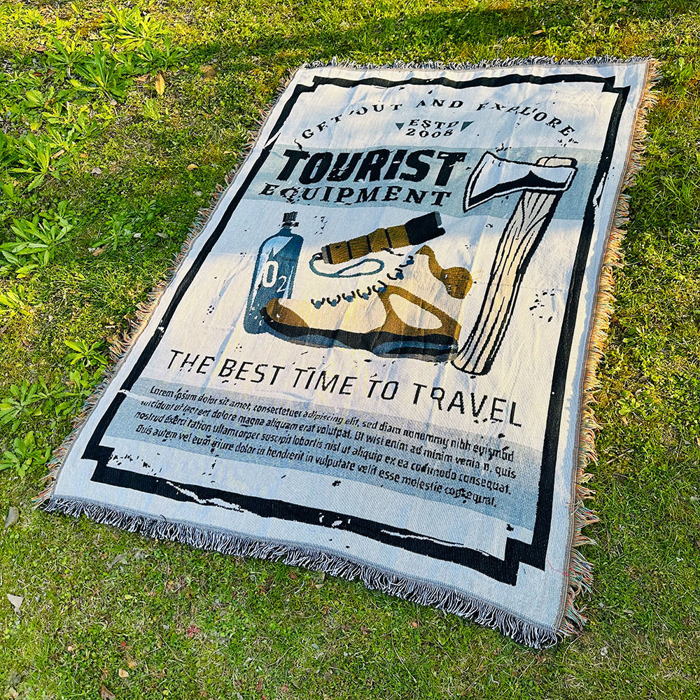 Cross-border American wholesale custom camping blanket moisture-proof picnic mat jacquard tapestry sofa towel thread blanket universal sofa blanket