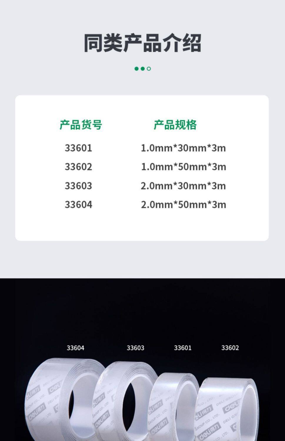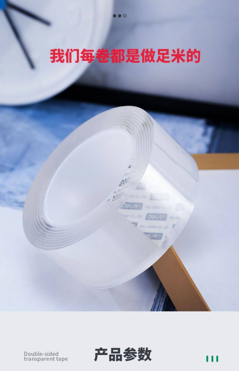 Deli 33601 nano double-sided tape high viscosity 3 meters strong adhesion easy to tear seamless office home double-sided tape