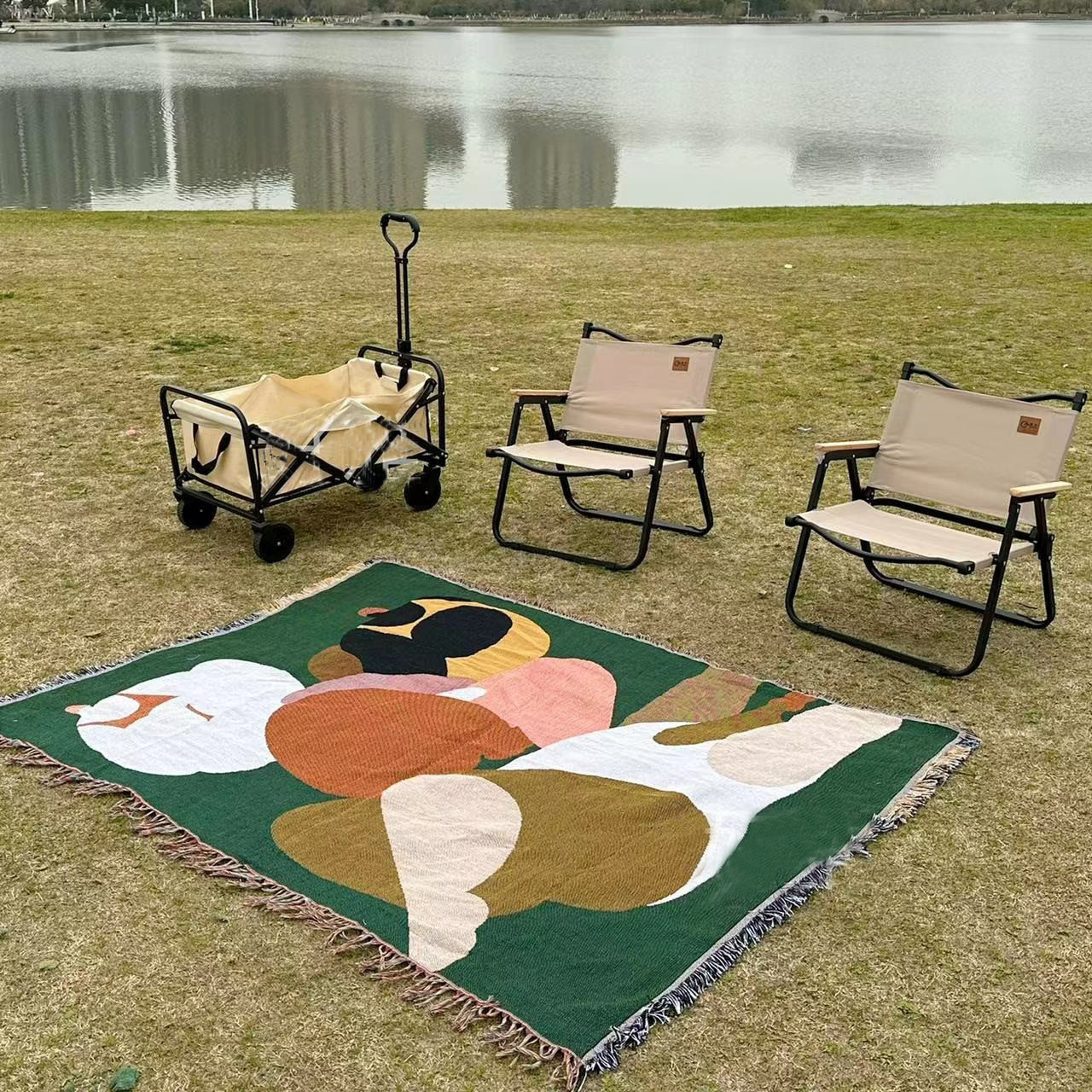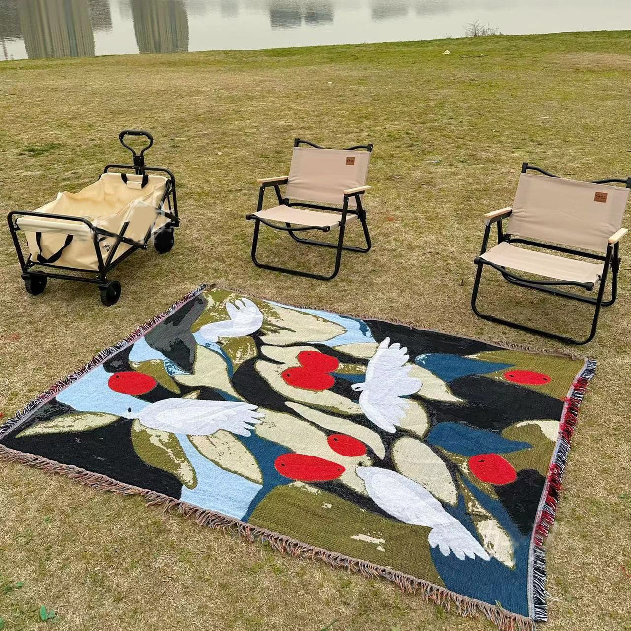 Custom cross-border camping blanket moisture-proof camping mat jacquard tapestry cartoon wind sofa towel cotton thread blanket sofa blanket wholesale