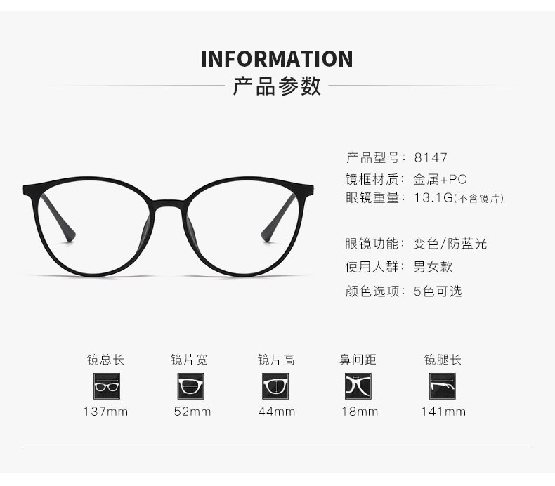 | Frame color | Glossy black frame,Purple frame,Transparent white frame,Transparent gray frame,Transparent tea frame |