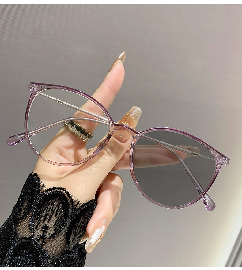 Photosensitive color-changing fashion retro glasses frame cross-border Europe and the United States minimal wind glasses student campus anti-blue light myopia glasses