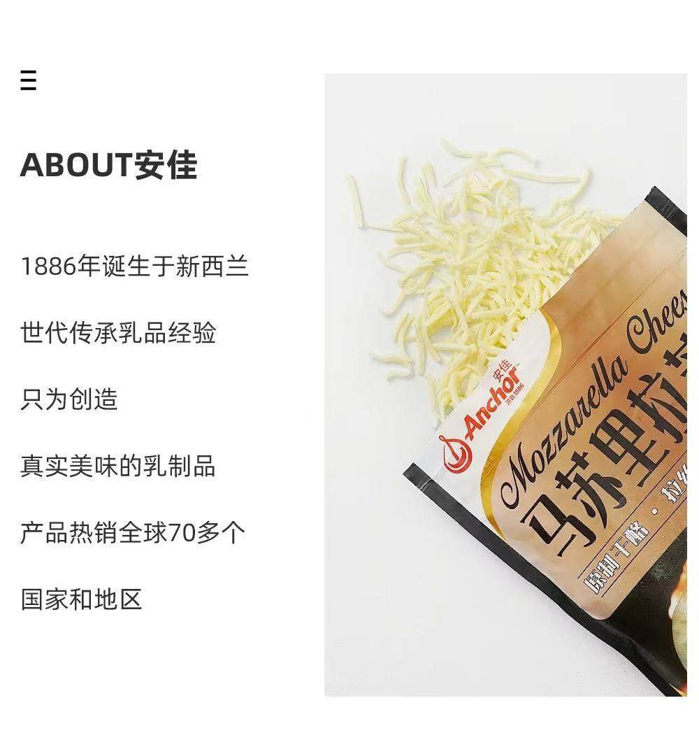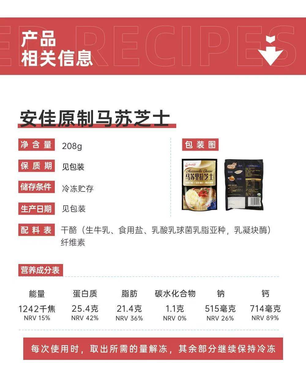 | Packaging specifications | Anjia mozzarella cheese 208g |