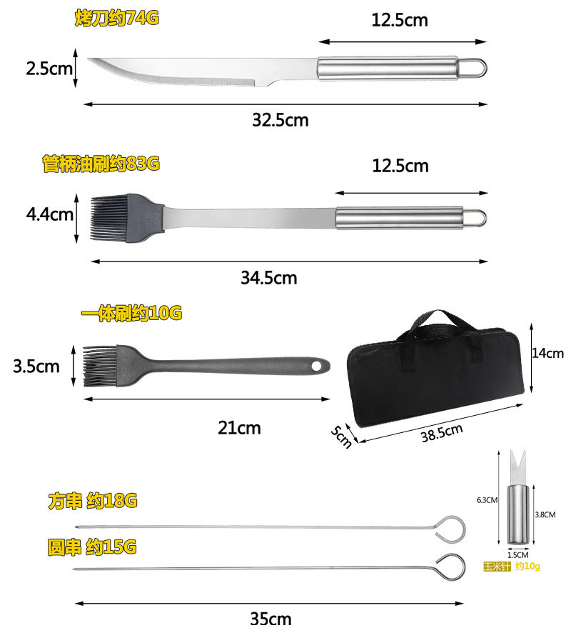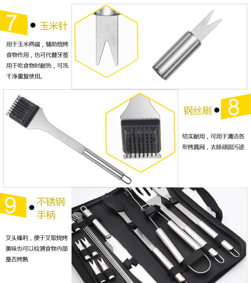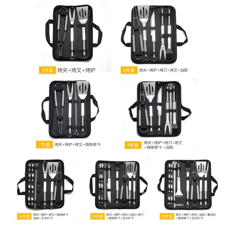 Amazon Stainless Steel Baking Tools suit Oxford Bag Barbecue Utensils Outdoor Household BBQ Combination Barbecue Tools