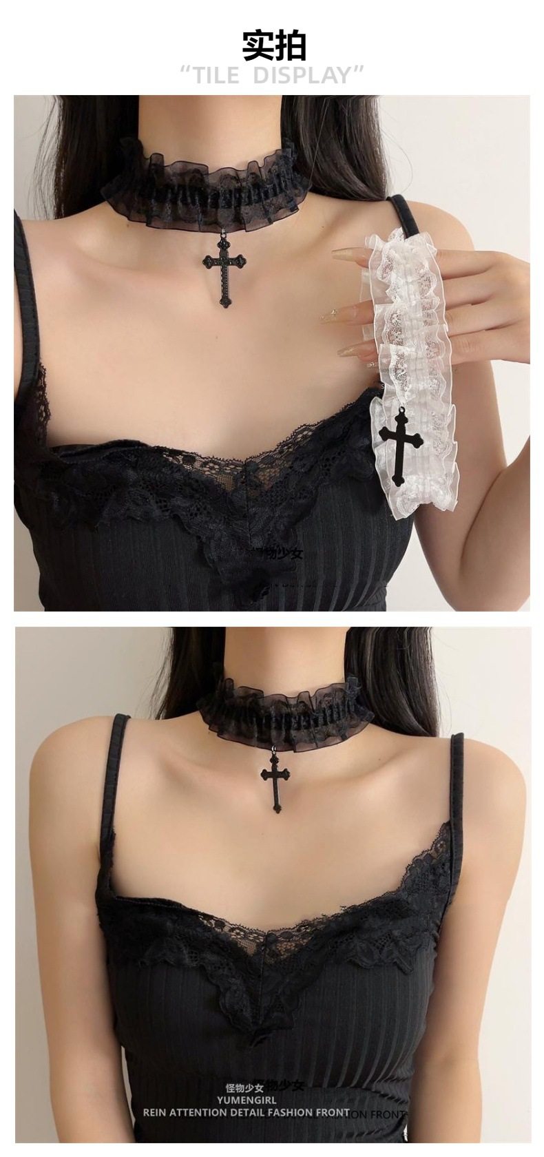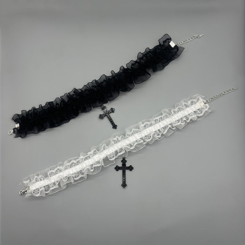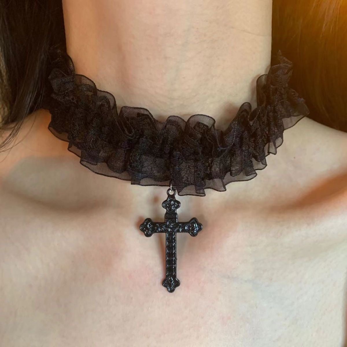 Simple Y2K Cross Lace Collar Sweet Cool Personality Niche Spice Choker Necklace Accessories Gothic Neck Ring