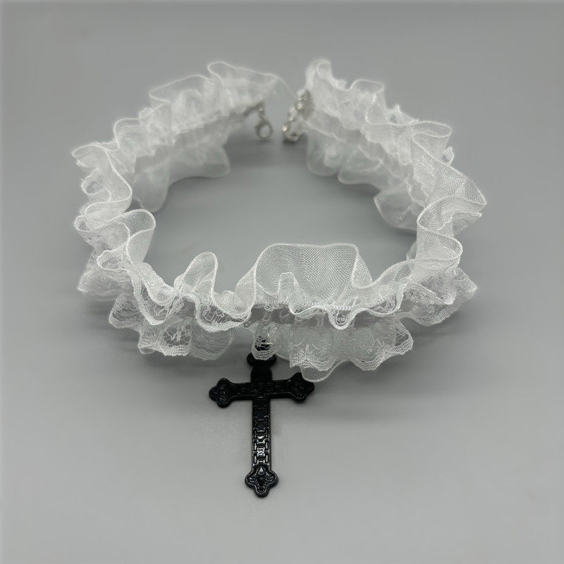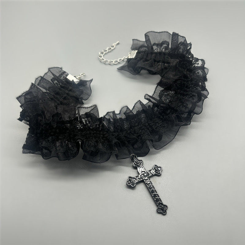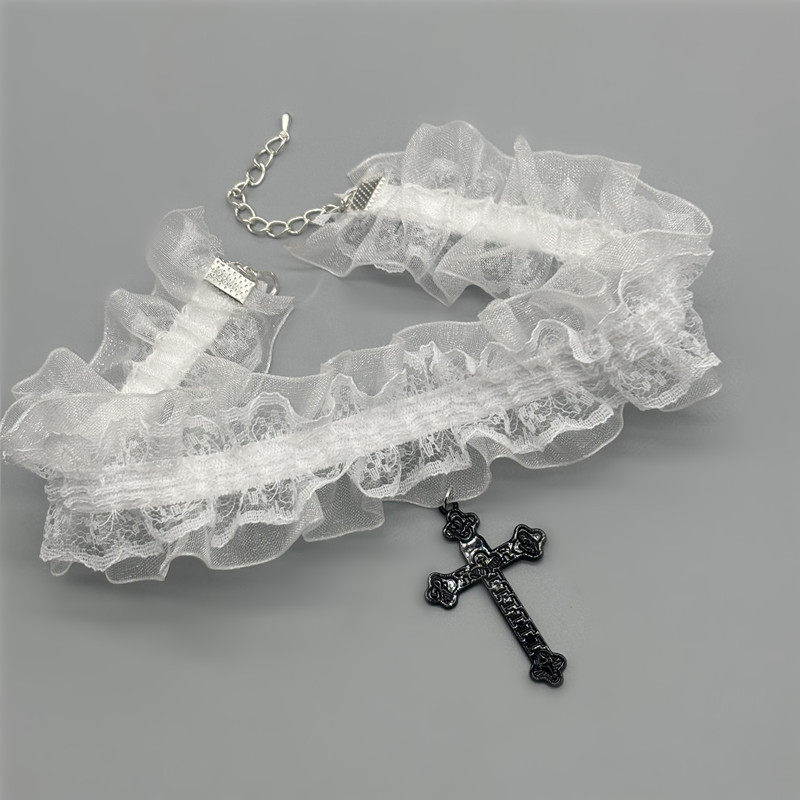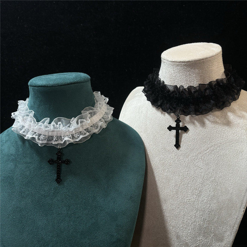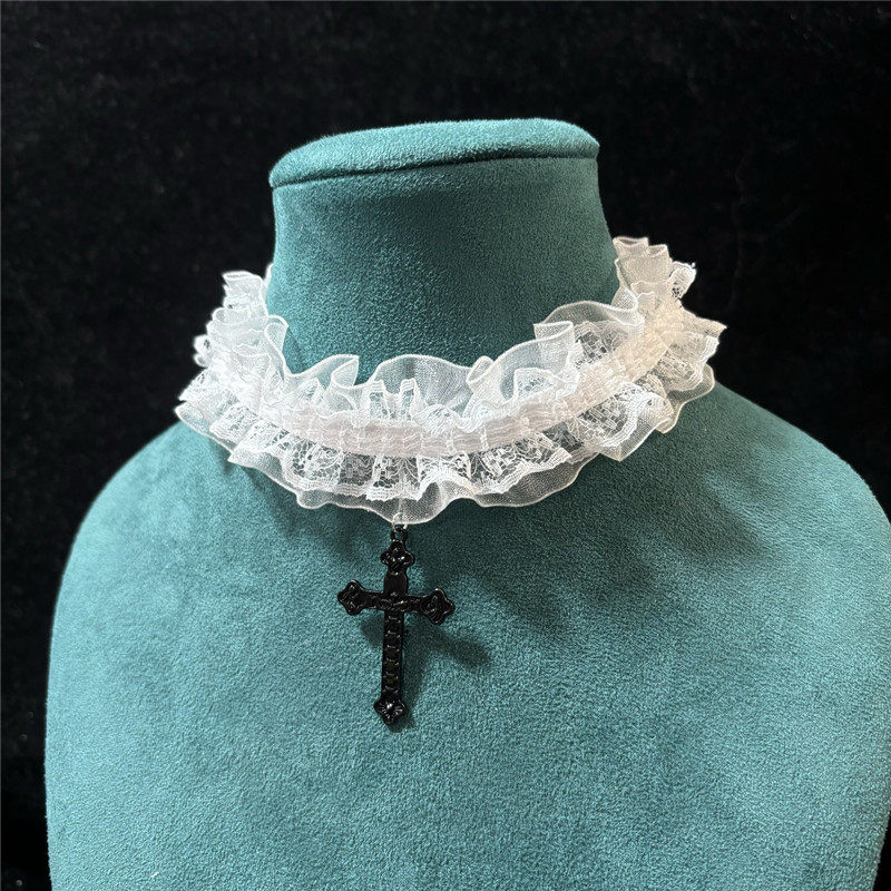 Simple Y2K Cross Lace Collar Sweet Cool Personality Niche Spice Choker Necklace Accessories Gothic Neck Ring