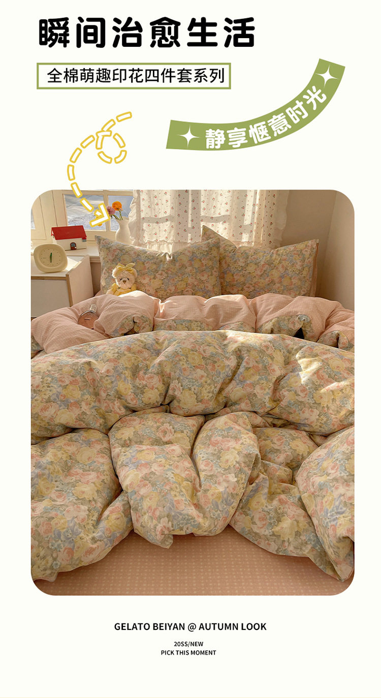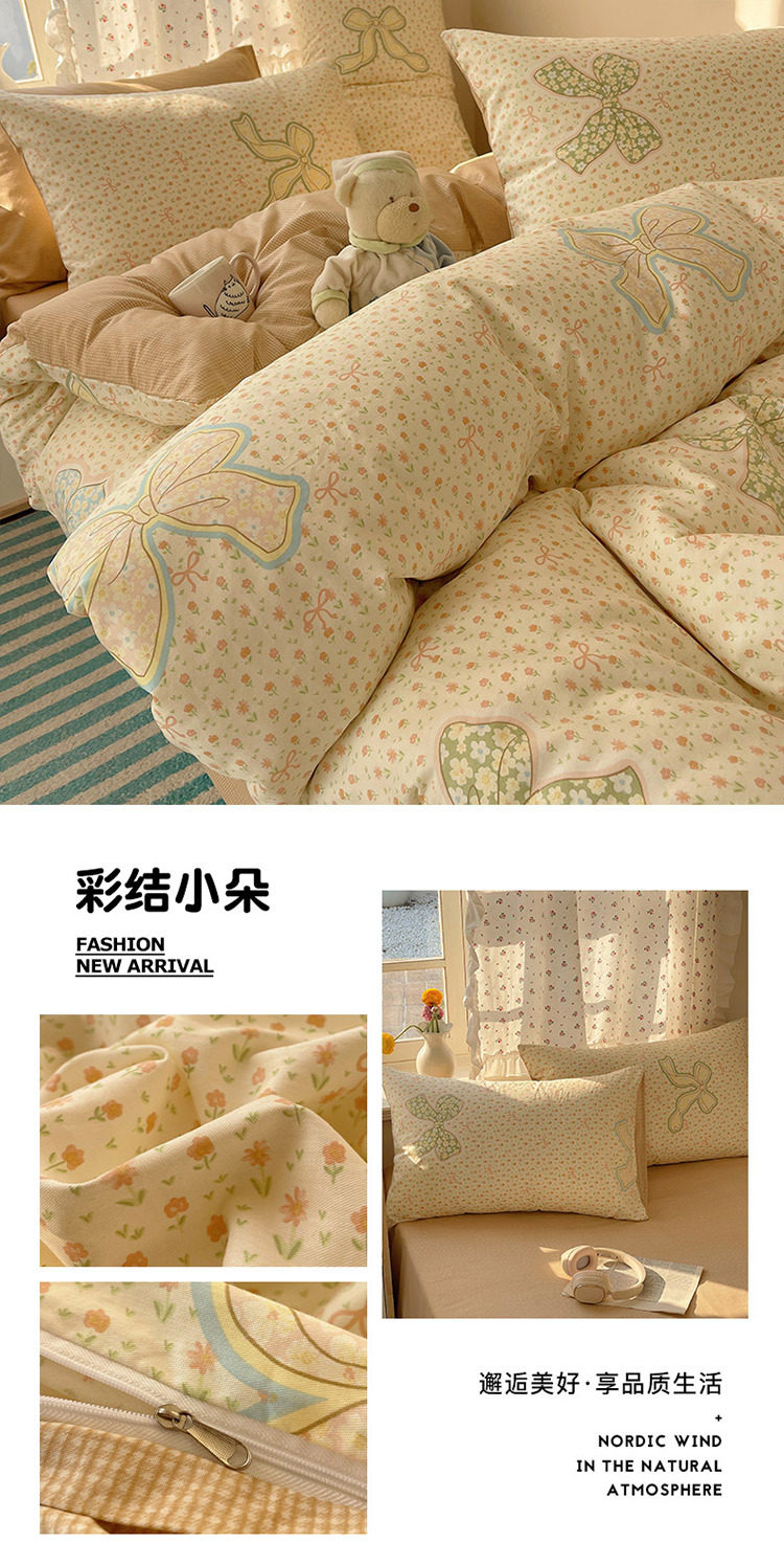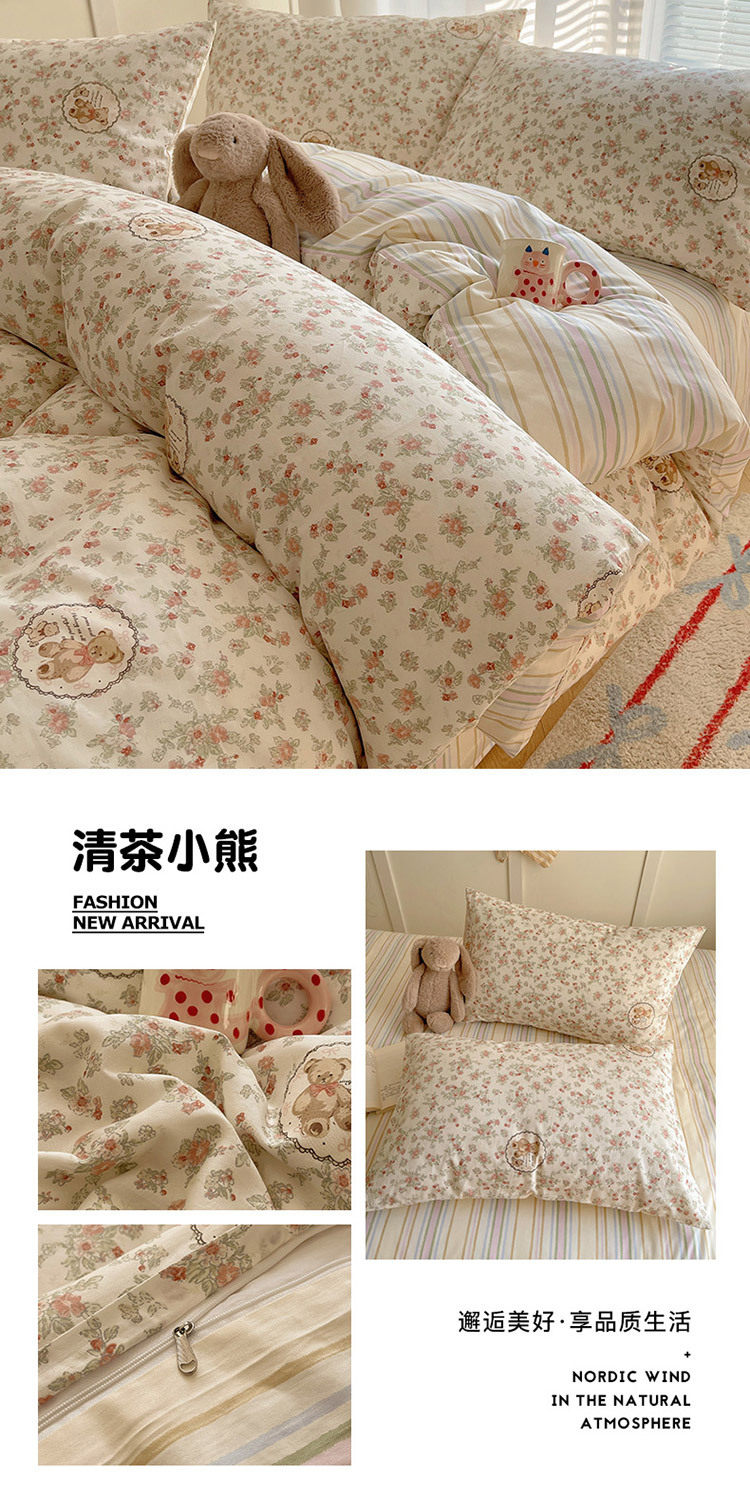 Pure cotton four-piece set small floral cotton three-piece set quilt cover sheets pastoral style student dormitory bedding wholesale