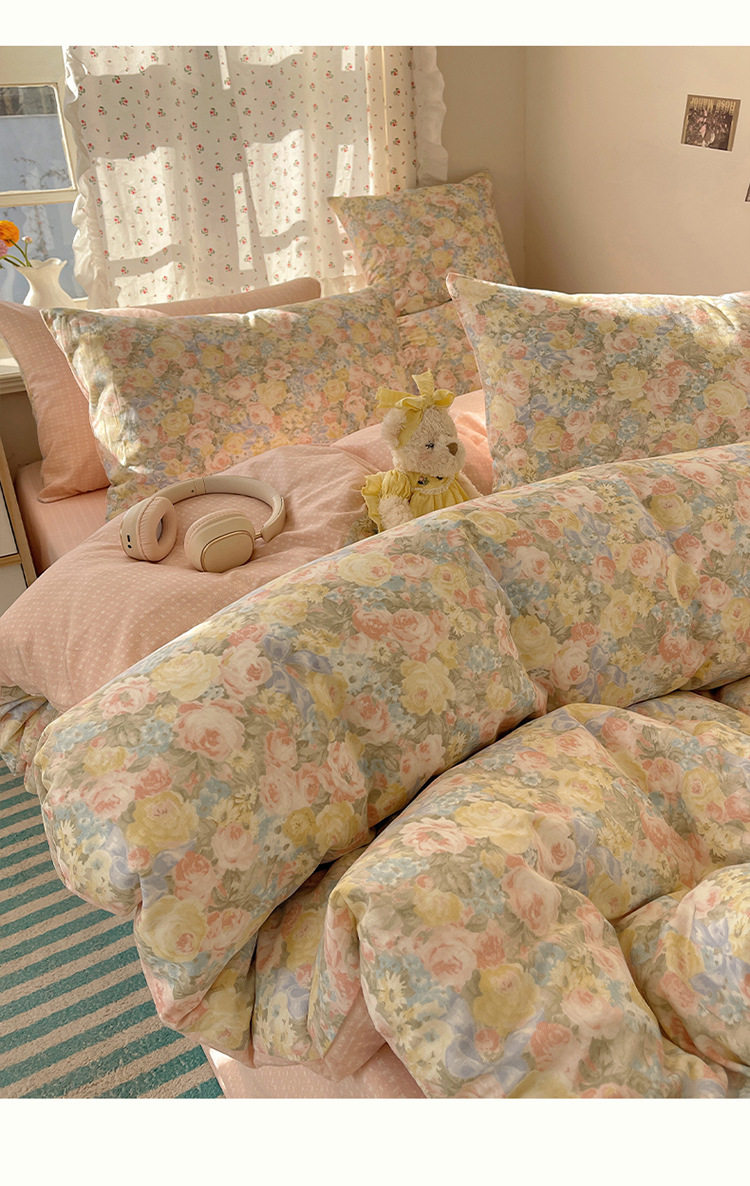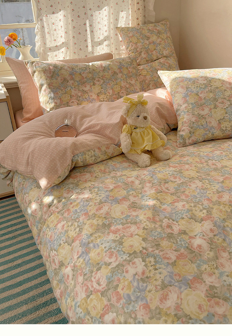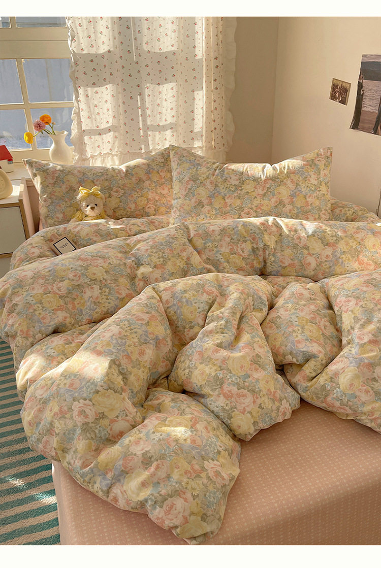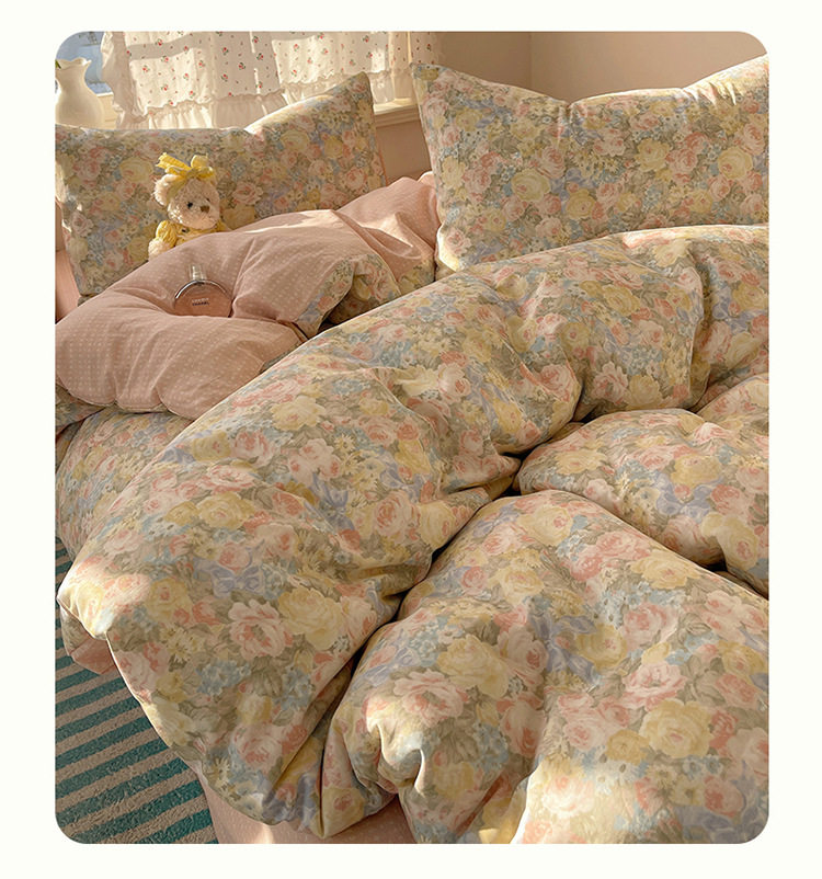Pure cotton four-piece set small floral cotton three-piece set quilt cover sheets pastoral style student dormitory bedding wholesale