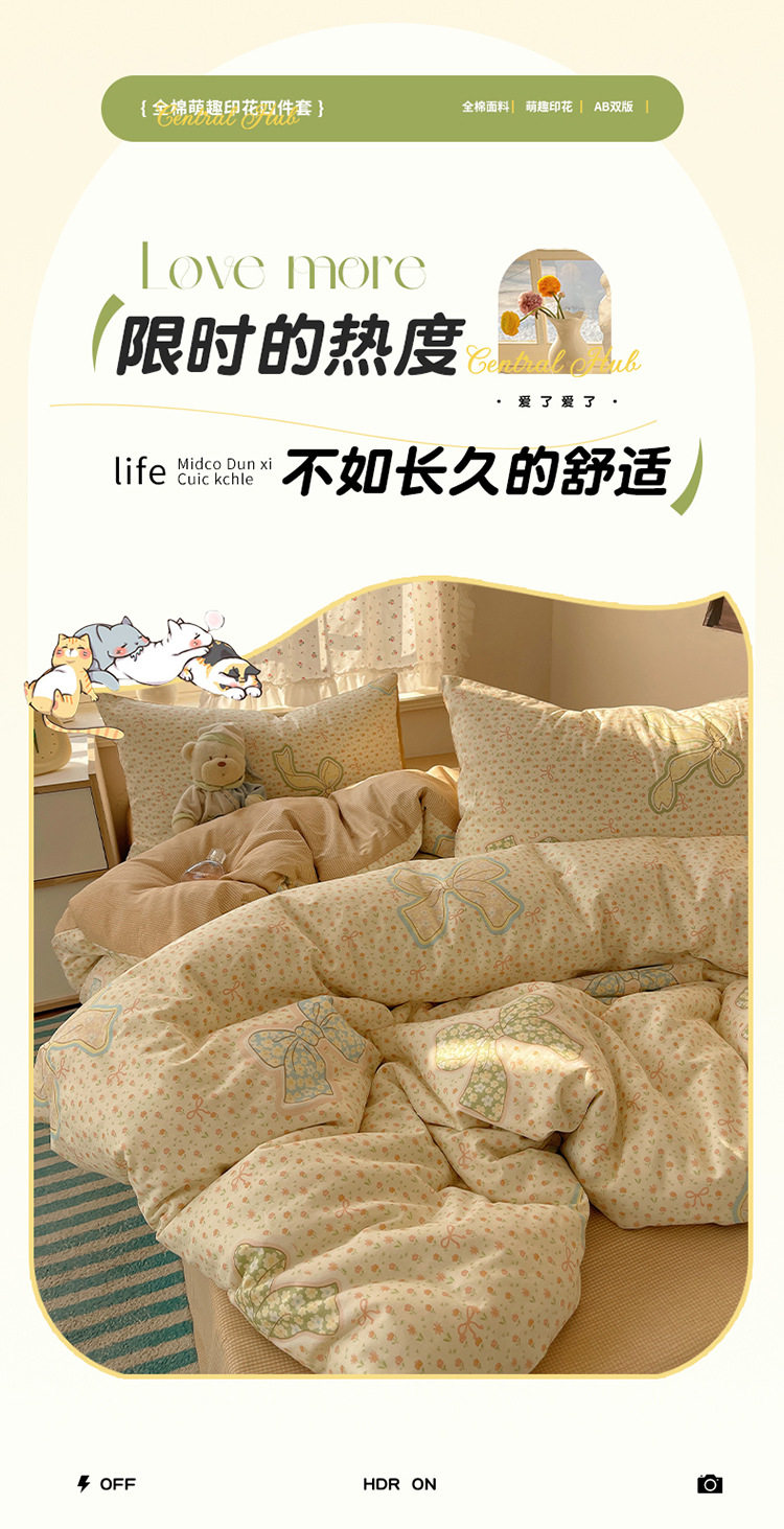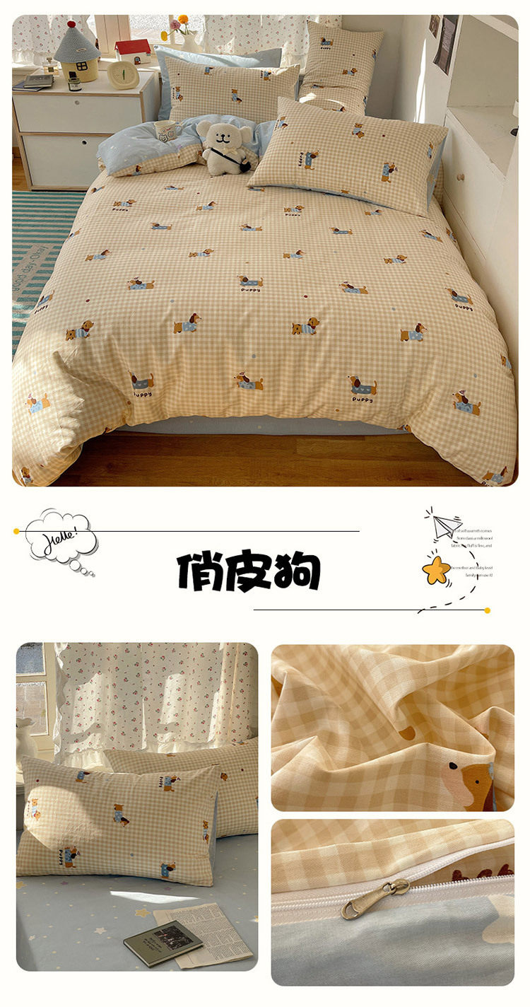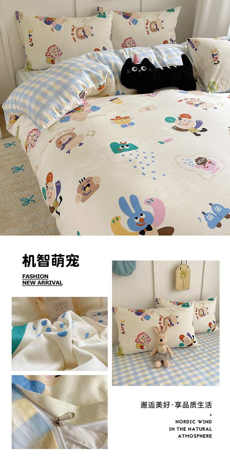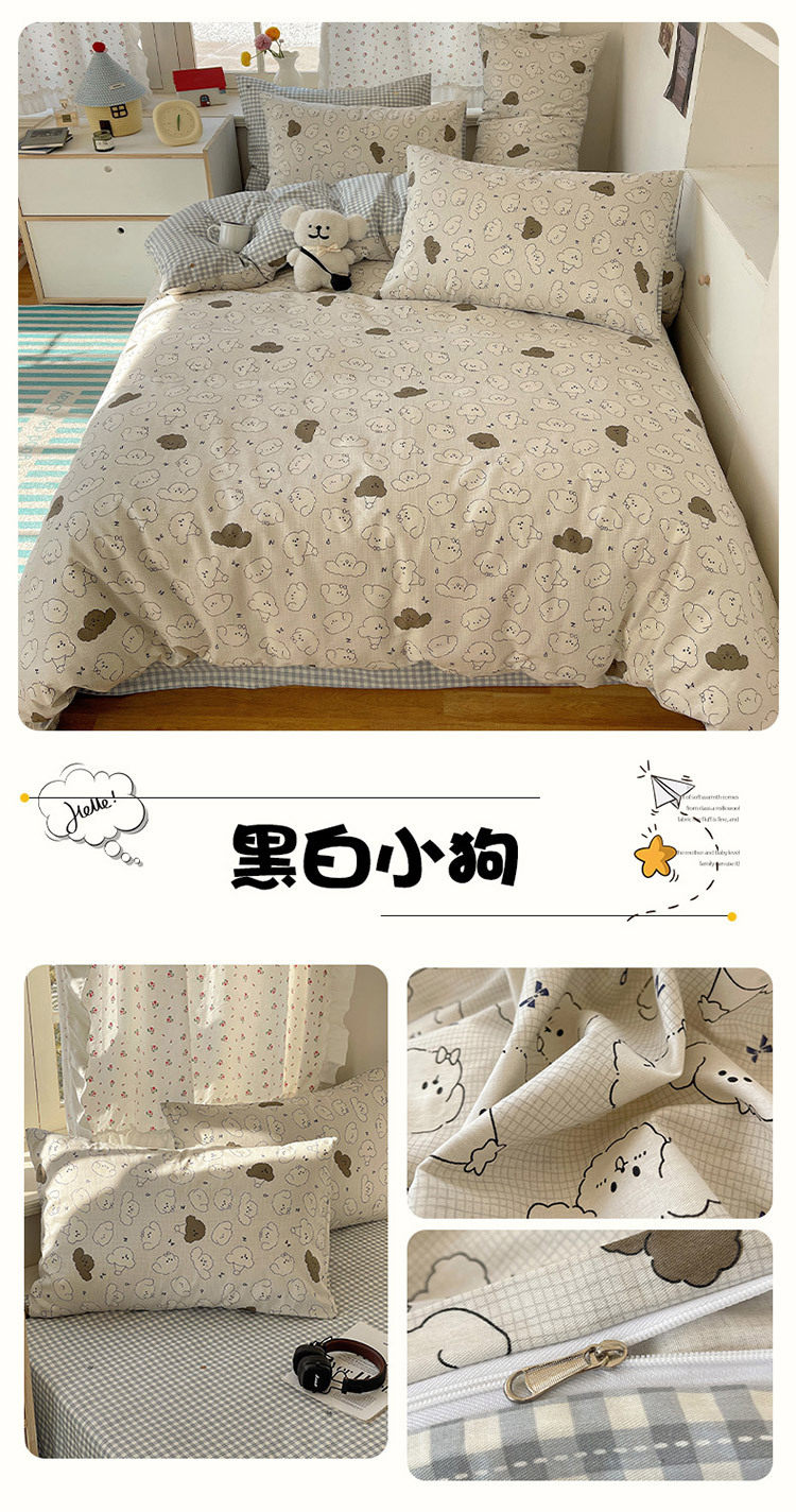 | Size specifications | 1.2m bed sheet three-piece set [quilt cover 150*200],1.5m bed sheet four-piece set [quilt cover 200*230],1.8m bed sheet four-piece set [quilt cover 200*230],1.5m fitted sheet set of four [quilt cover 200*230],1.8m fitted sheet set of four [quilt cover 200*230] |