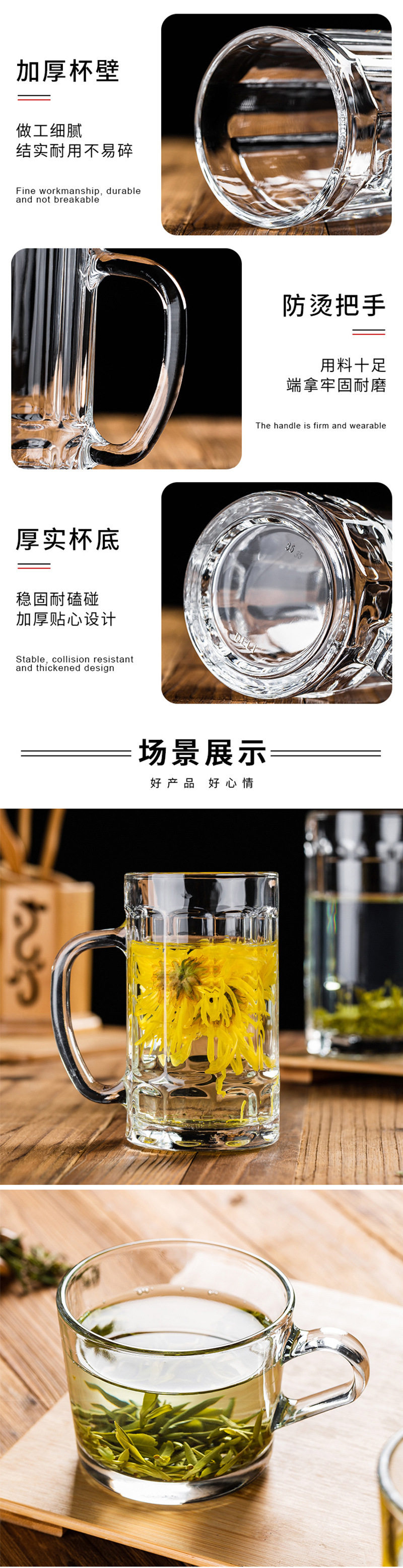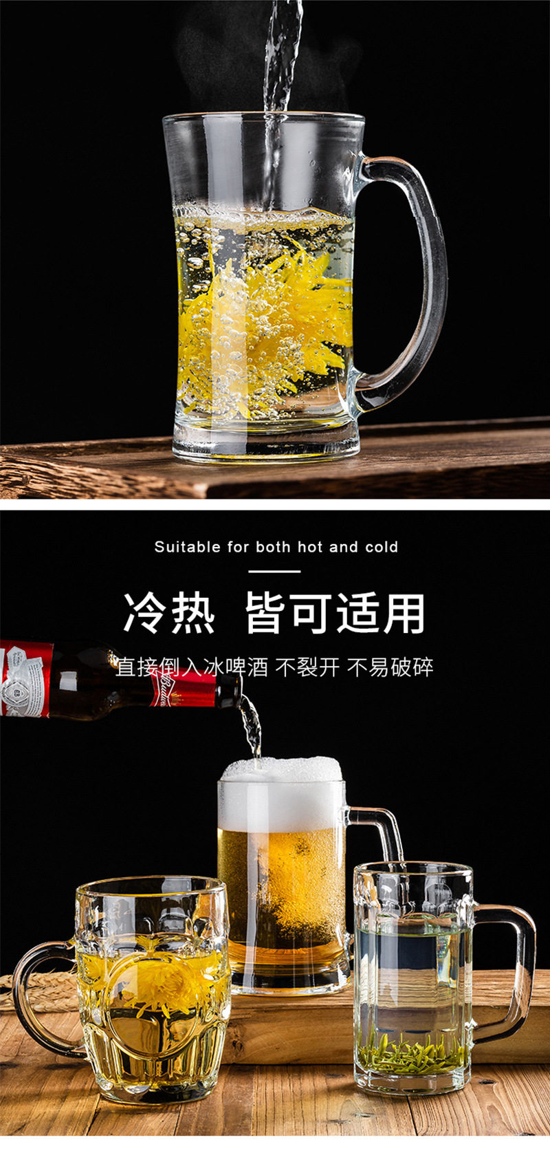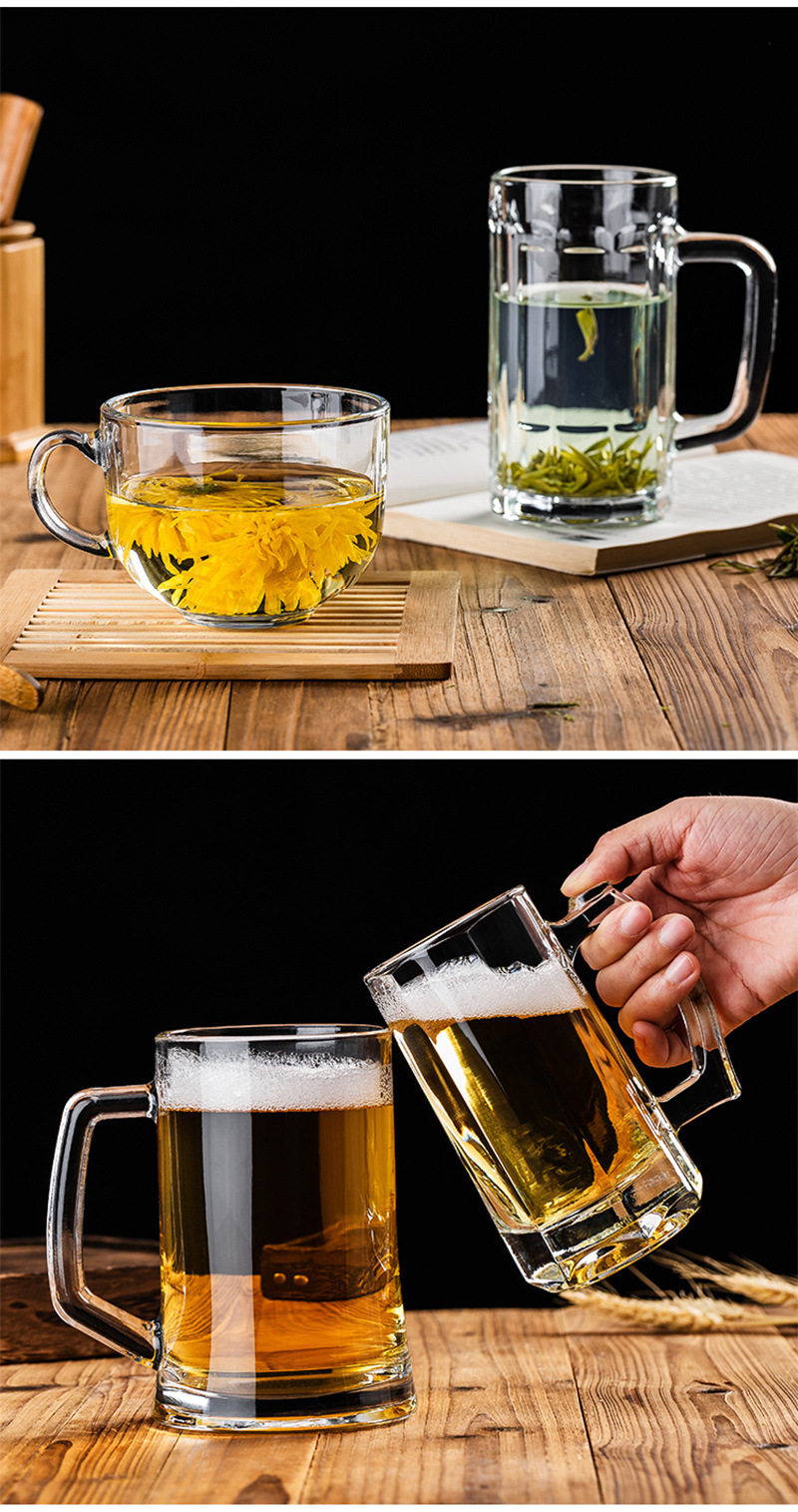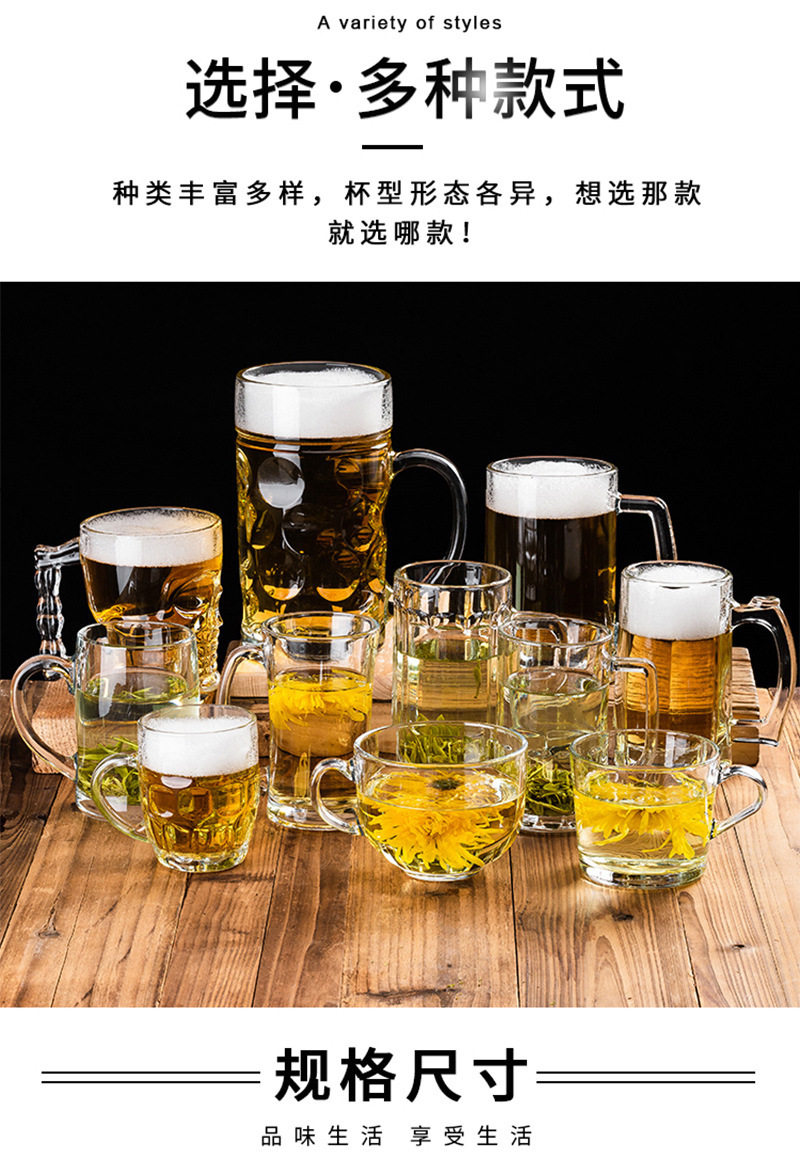 Commercial Beer Cup Large Draft Beer Cup Water Cup Bubble Tea Cup Bar Large Capacity Thickened Glass with Handle Customized