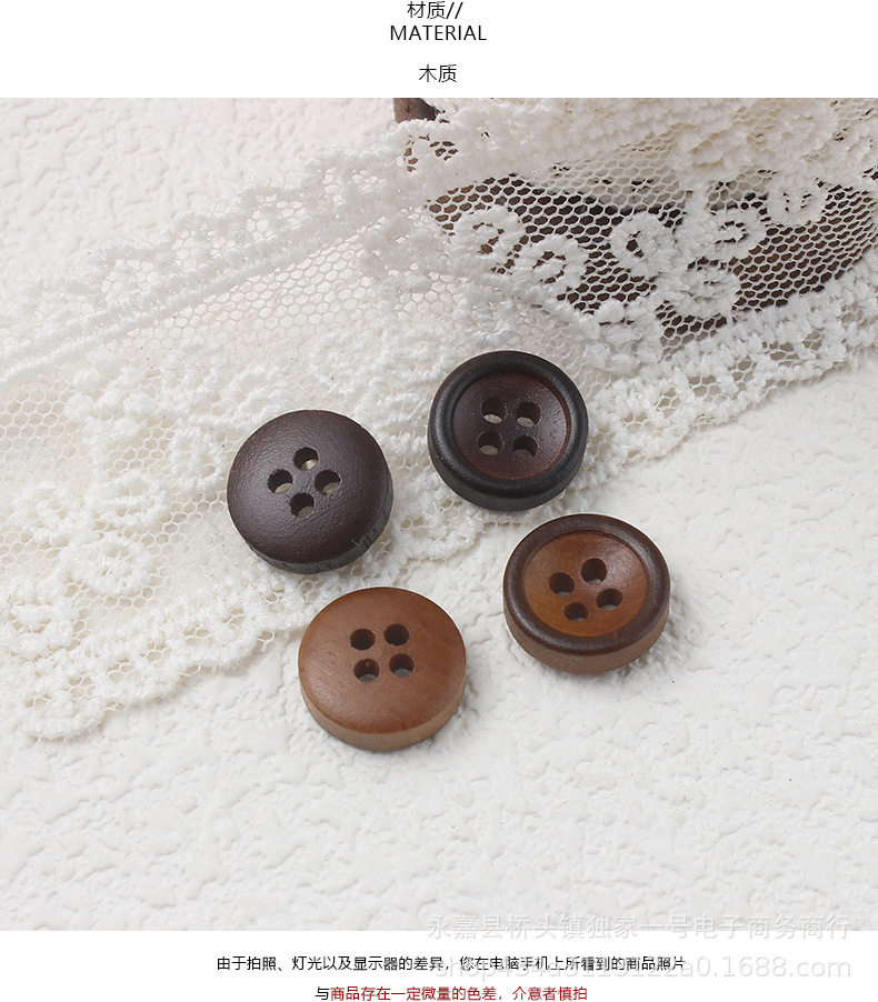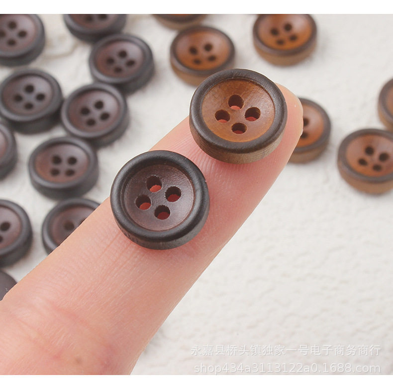 New in stock Thin Edge Bowl-shaped Two-color Wood Buckle All-match Decorative Shirt Small Button