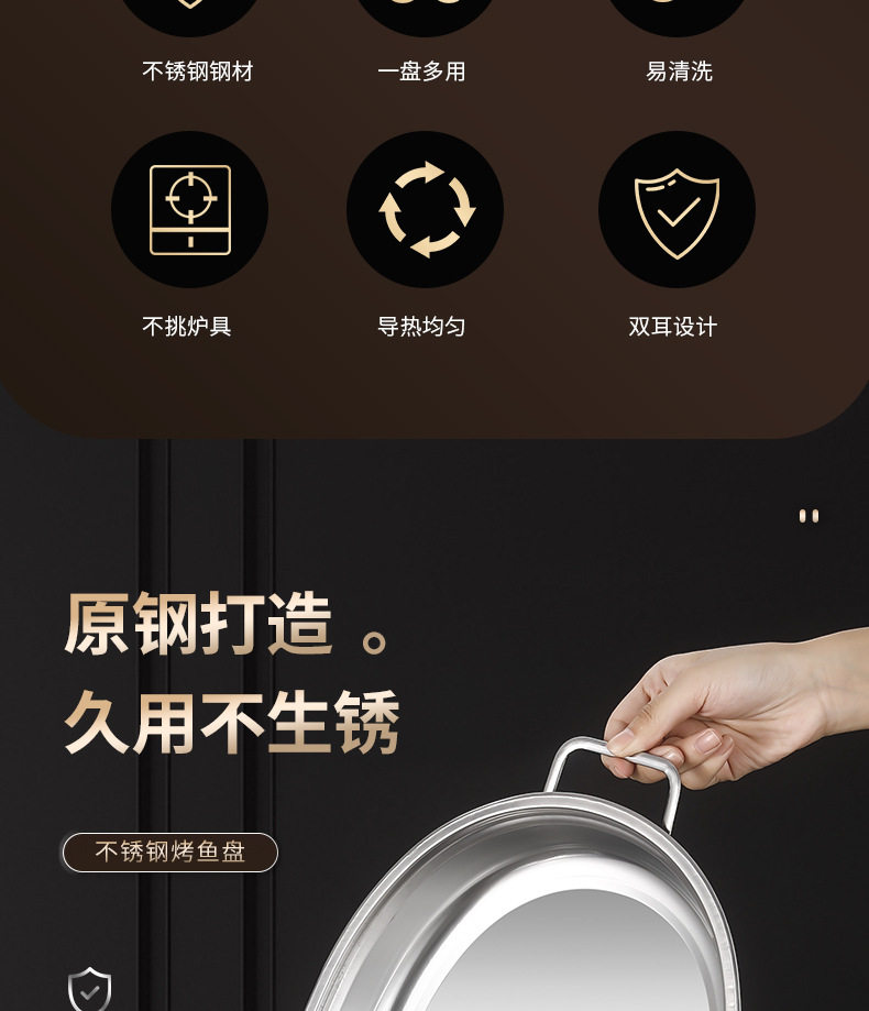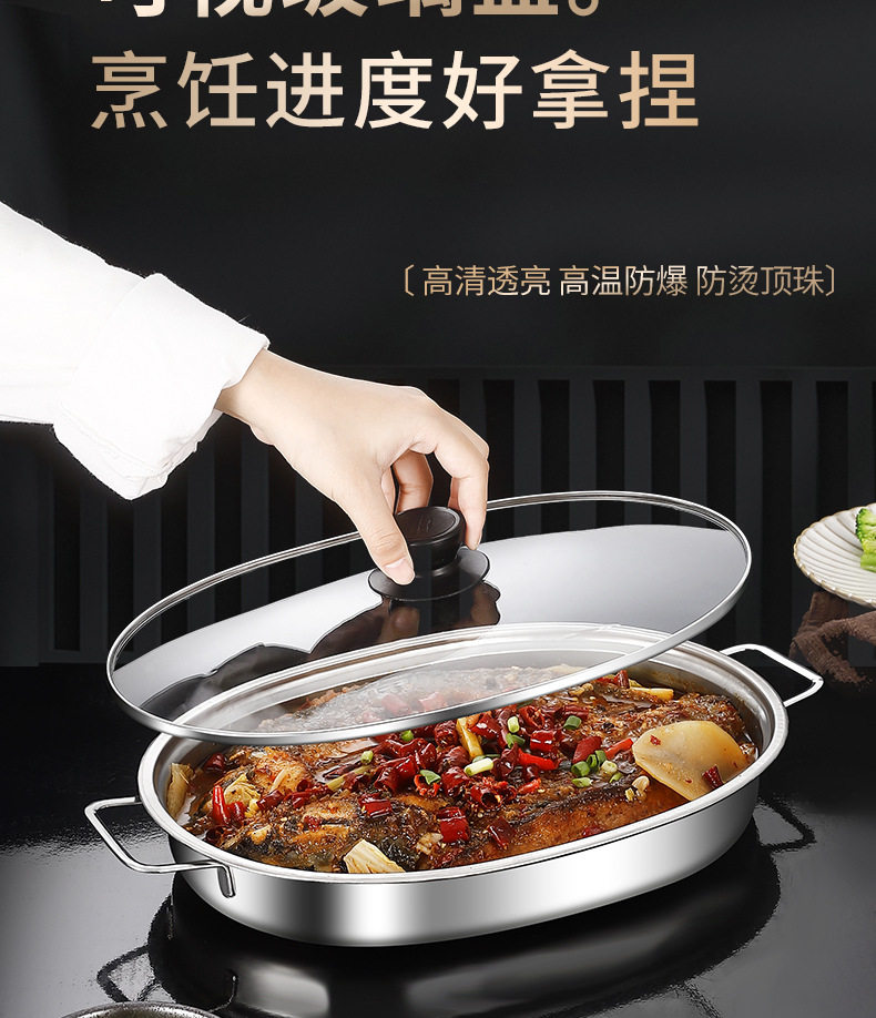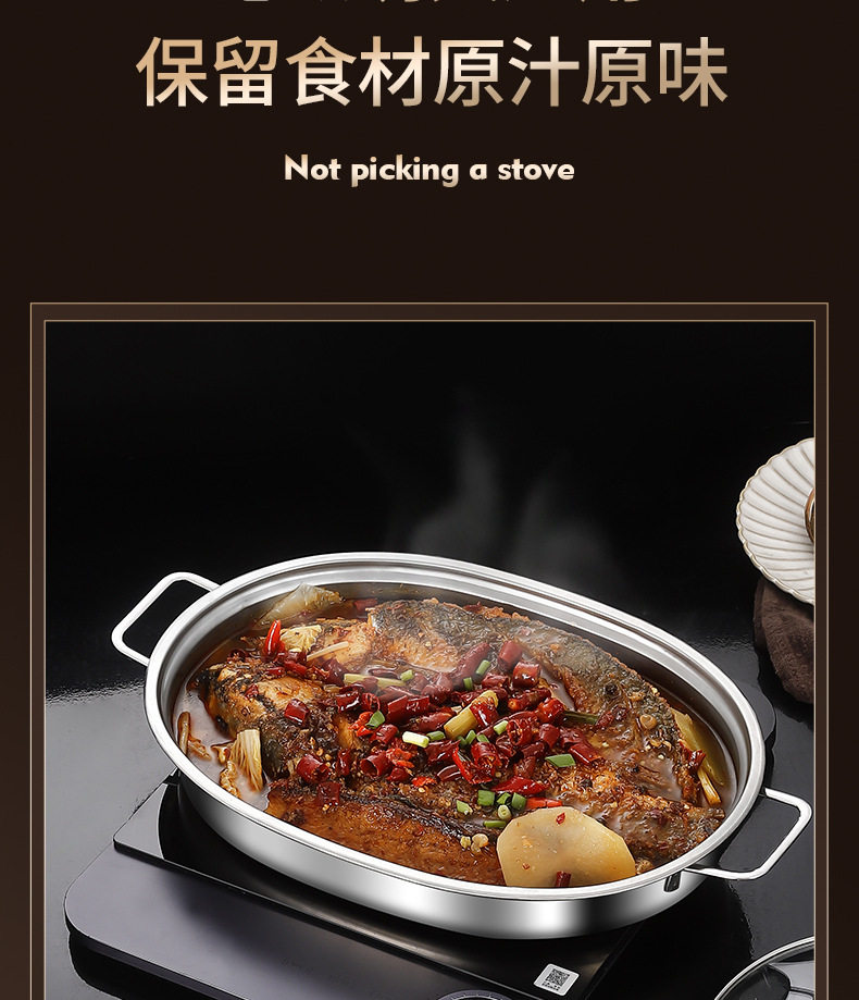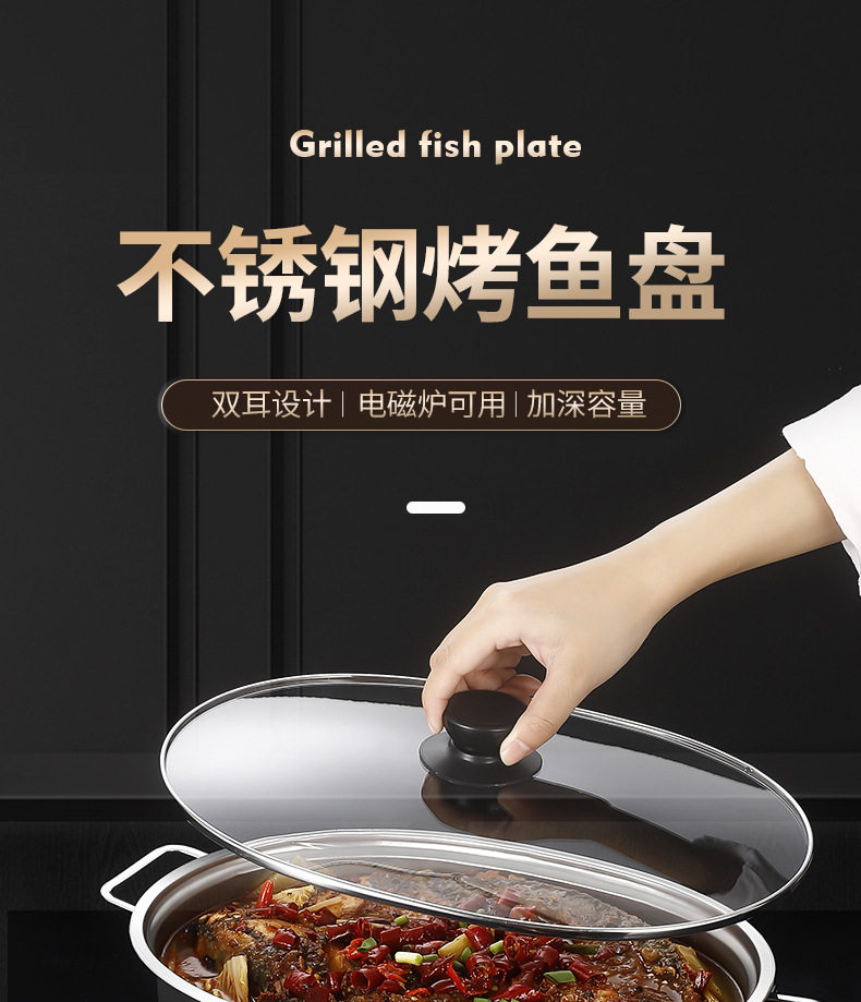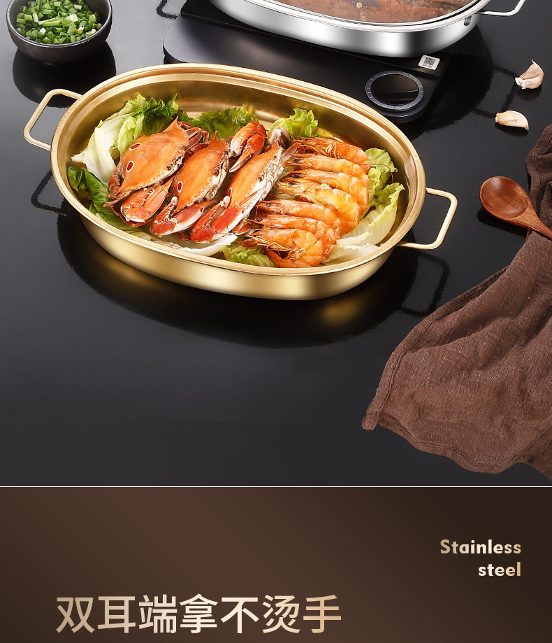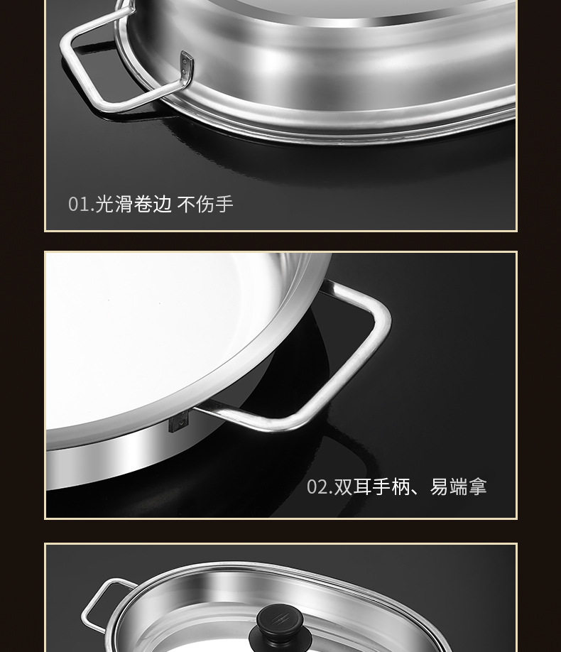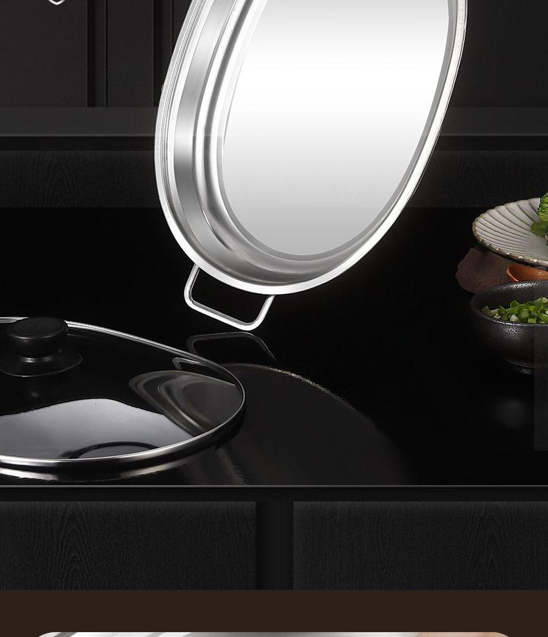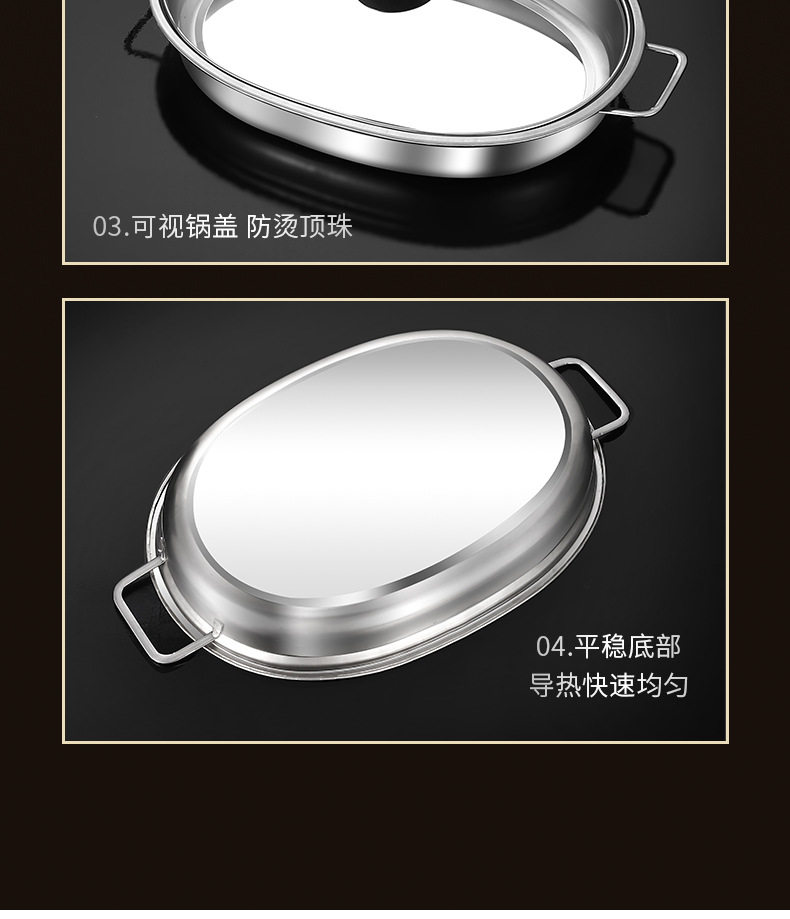 Stainless Steel Oval Grilled Fish Plate with Pot Ear Soup Pot Household Commercial Outdoor Stall Stall Hot Pot Grill Plate