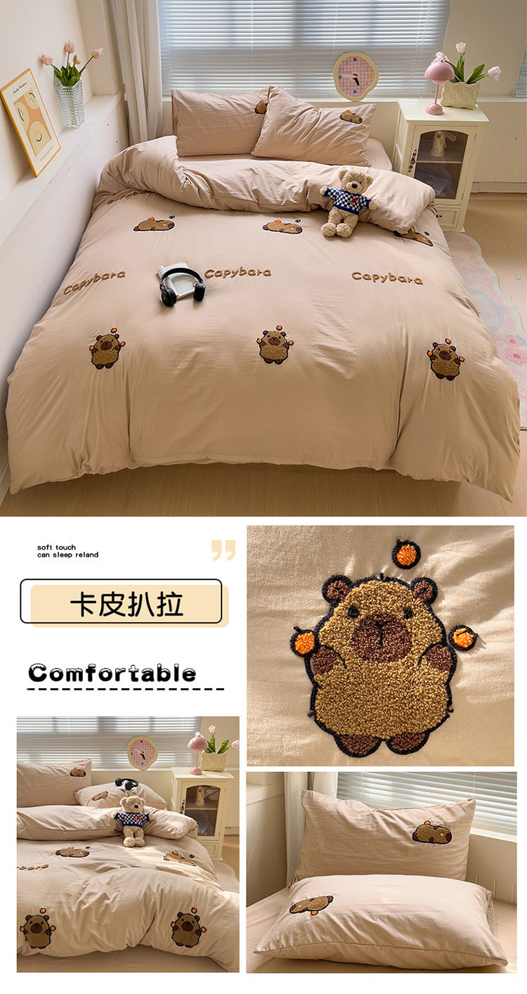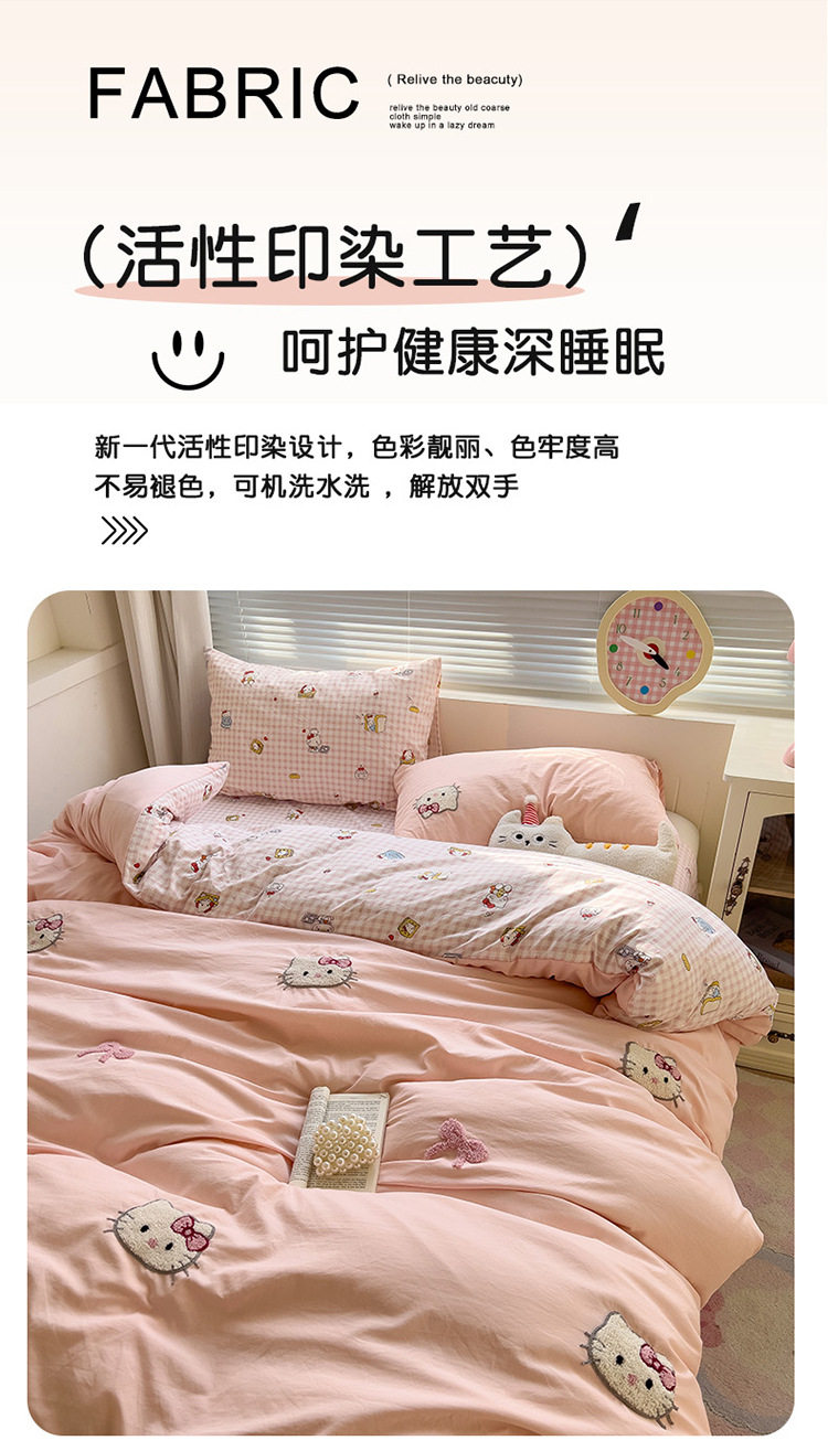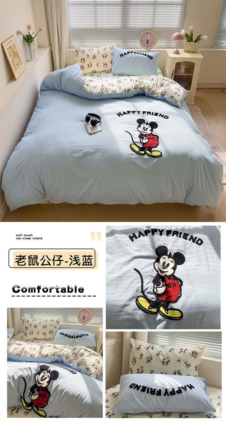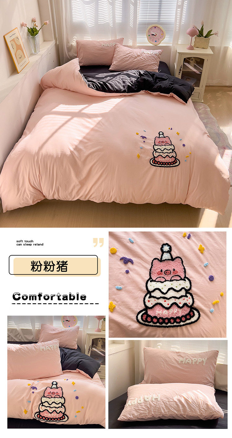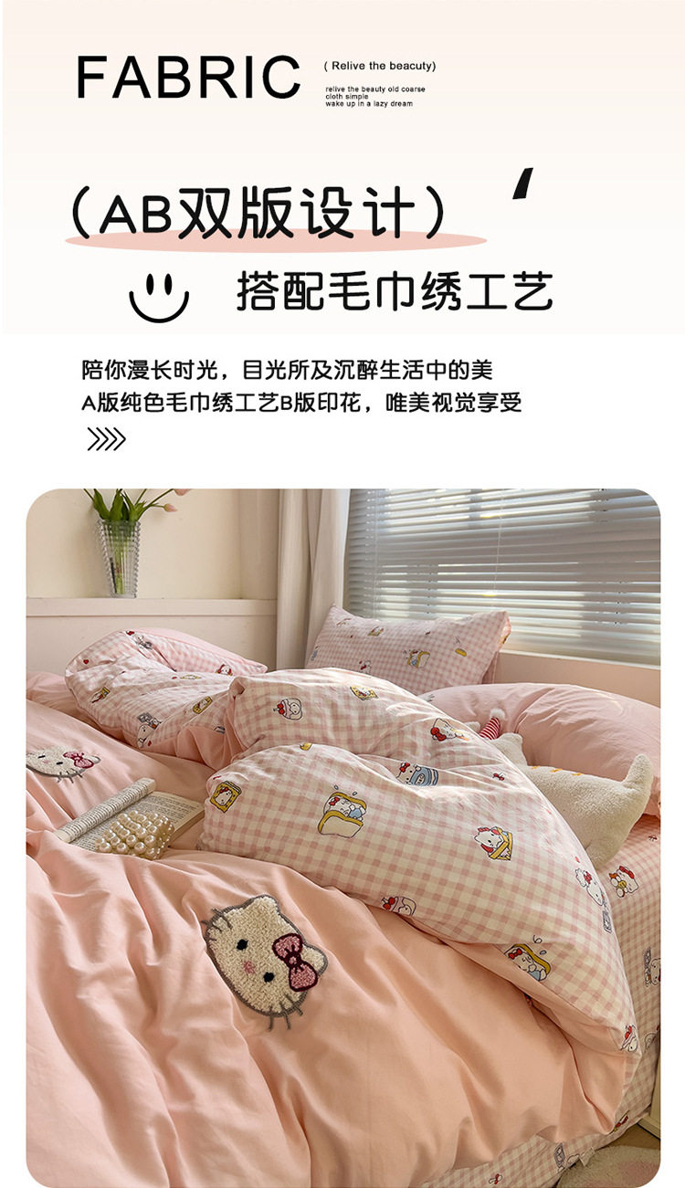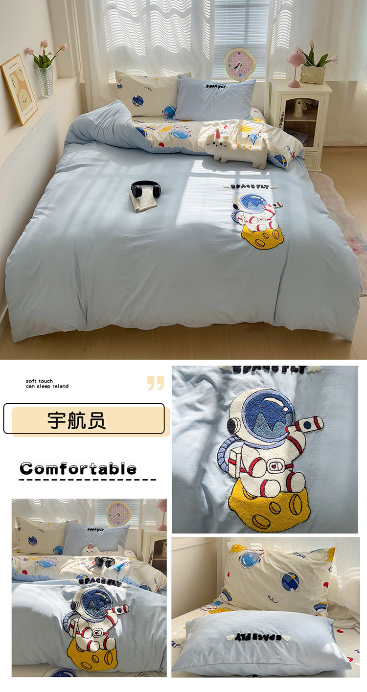 Category a Maternal and Infant Grade Naked Sleeping Cartoon Cotton Towel Embroidered Four-Piece Set Soft Waxy Bed Bed Sheets Quilt Cover Student Dormitory Three-Piece Set