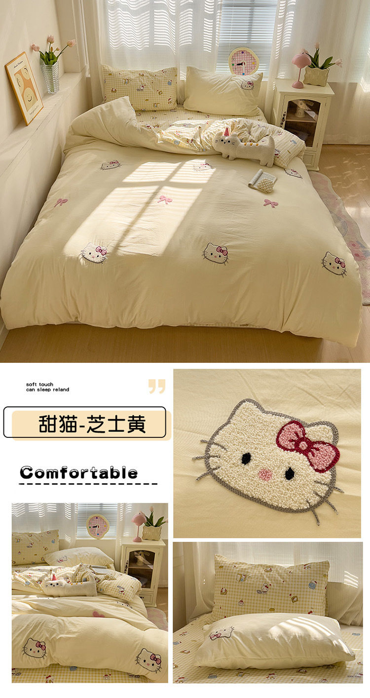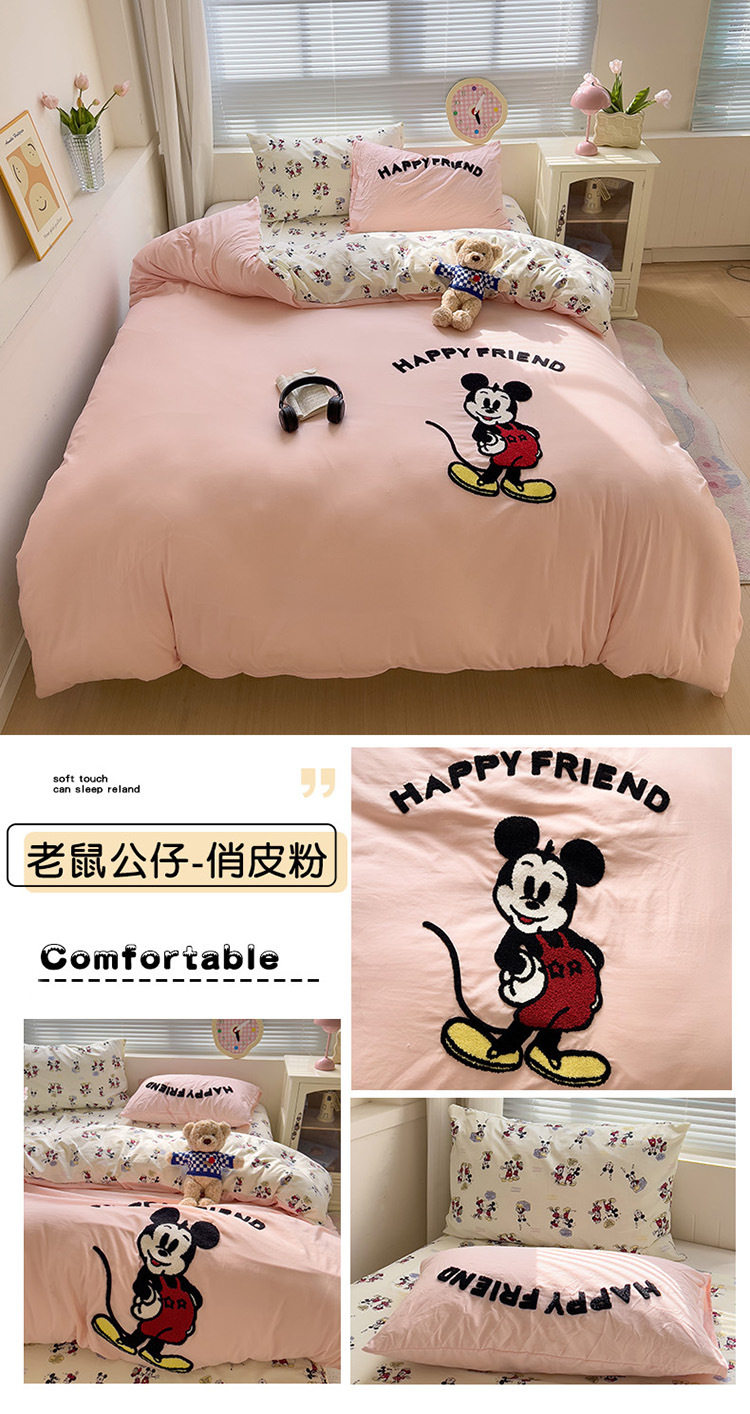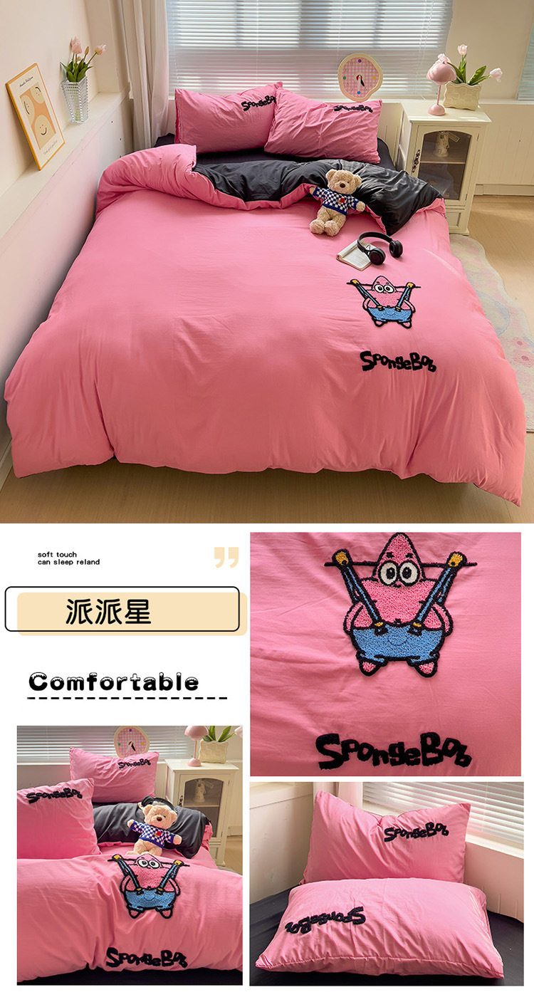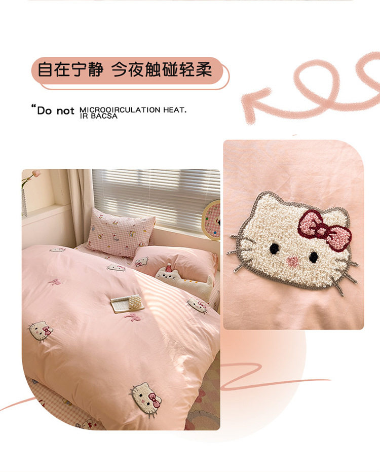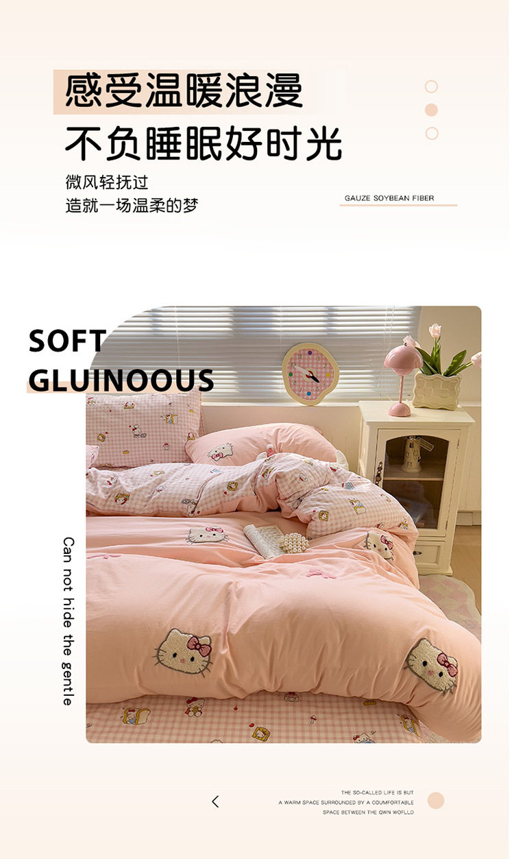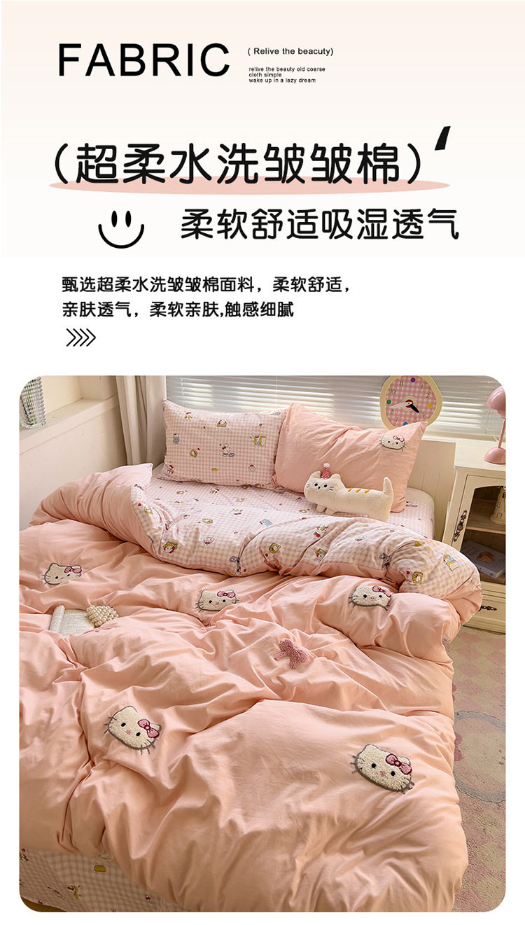 Category a Maternal and Infant Grade Naked Sleeping Cartoon Cotton Towel Embroidered Four-Piece Set Soft Waxy Bed Bed Sheets Quilt Cover Student Dormitory Three-Piece Set
