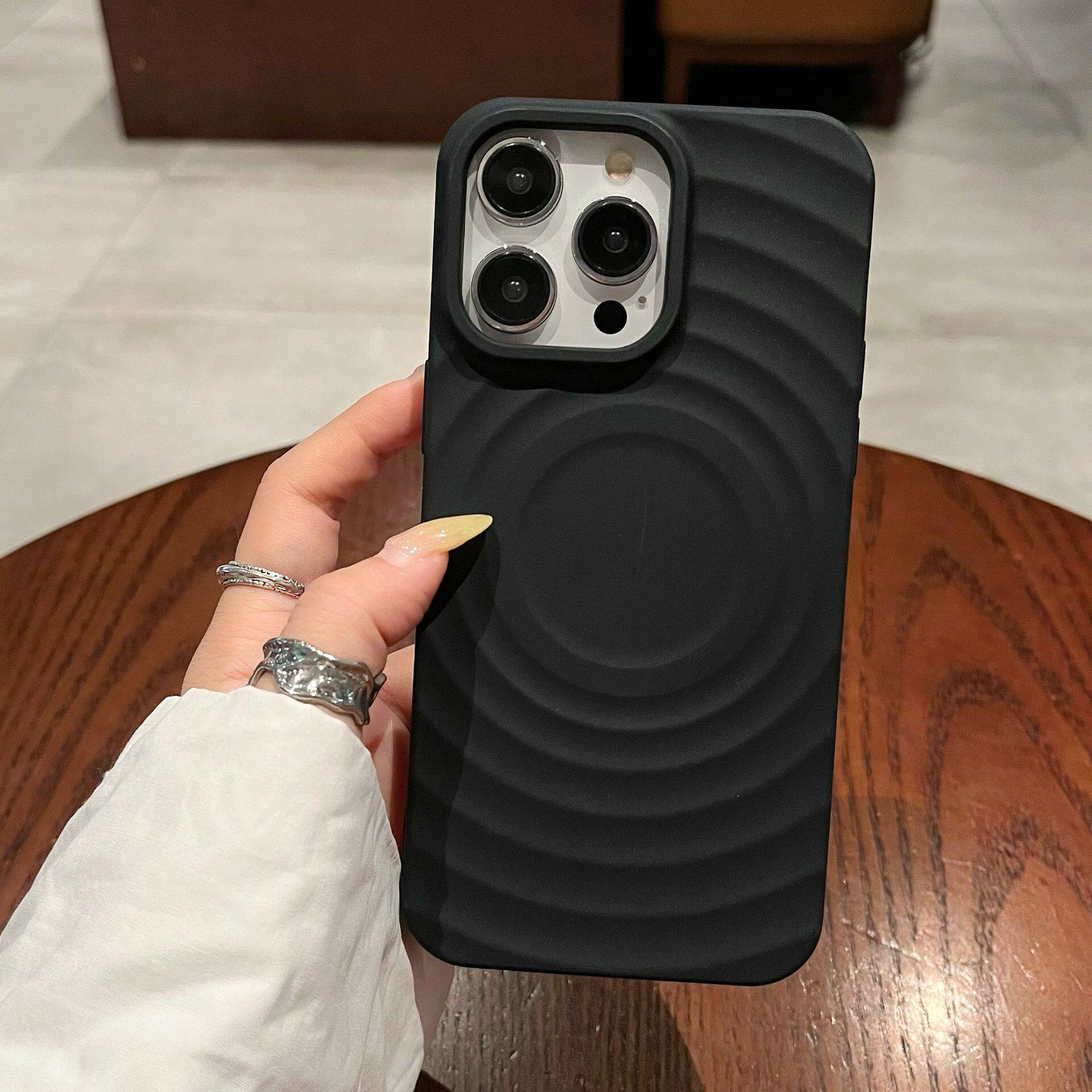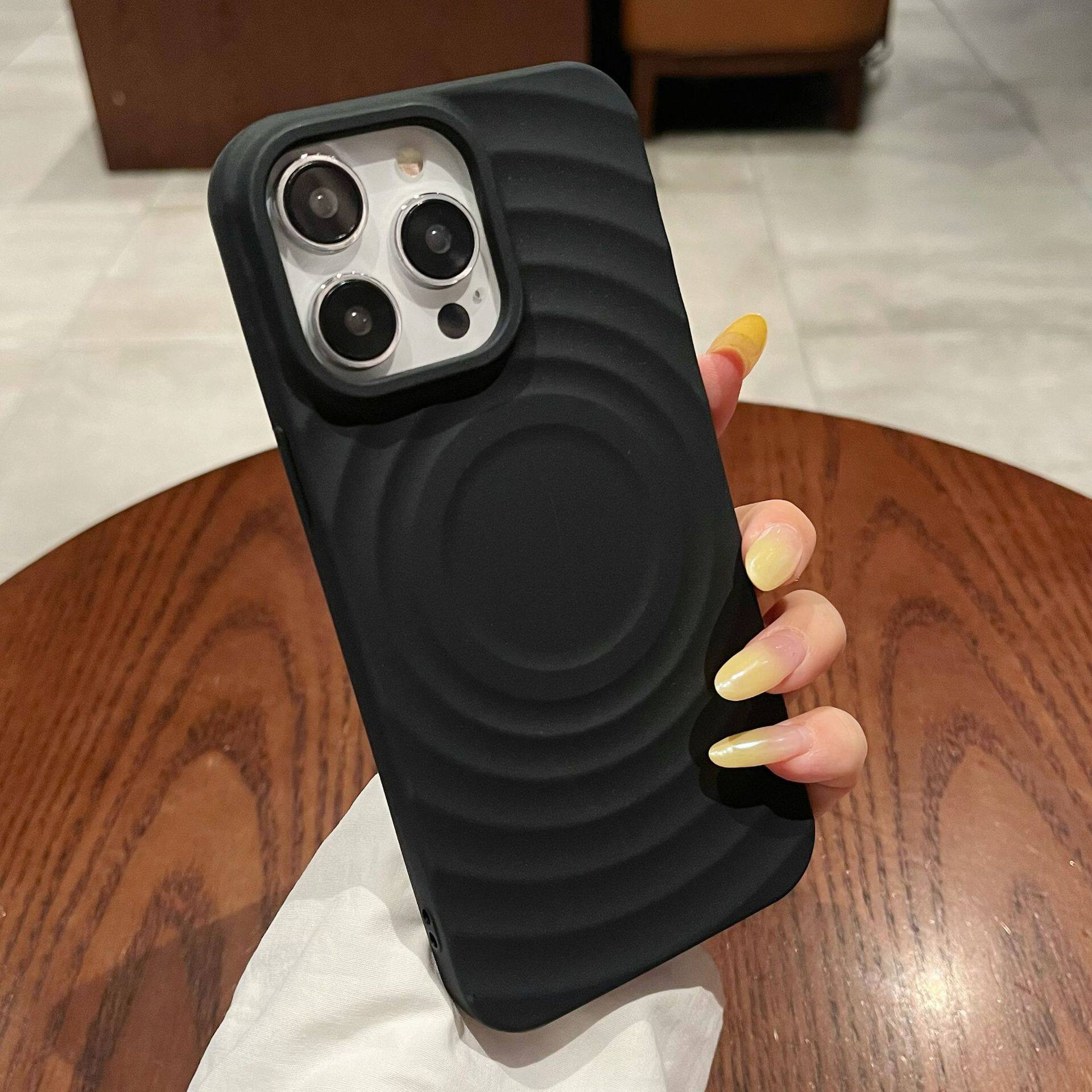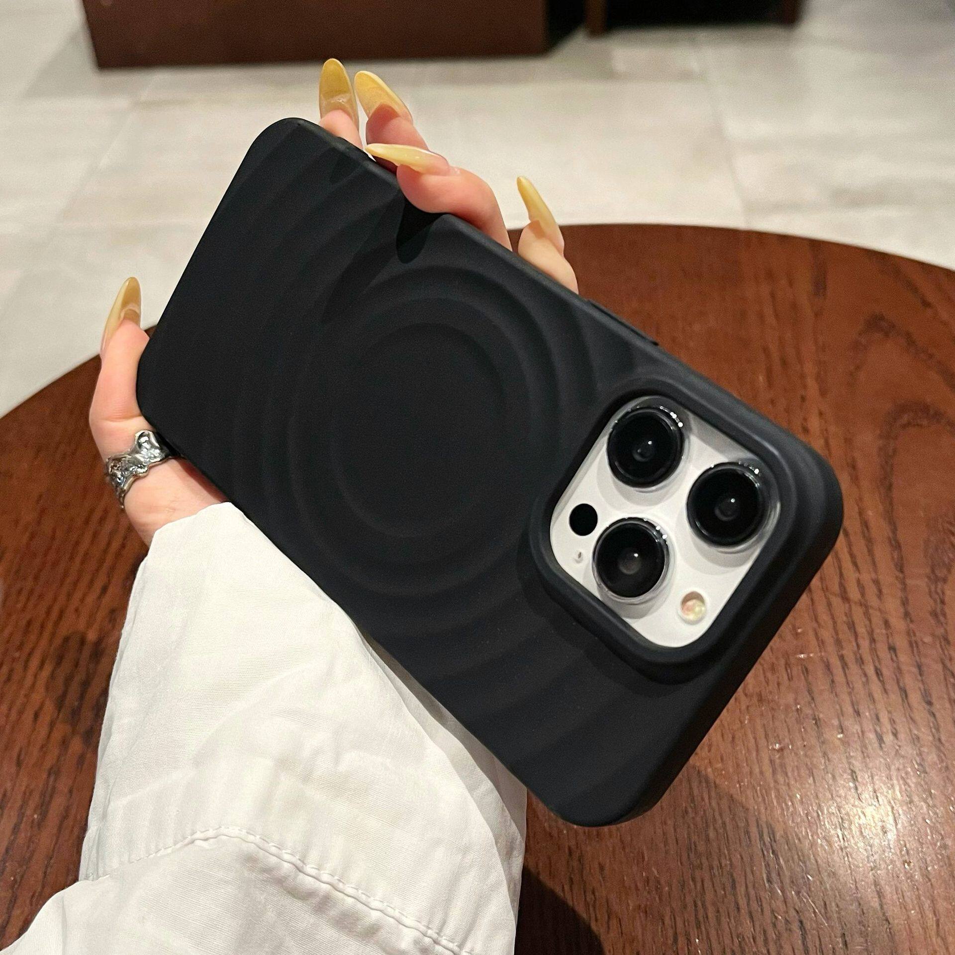 Suitable for Apple 17 Pro Max Full Coverage 14 13 Magnetic Sun Soft Shell Silicone Case 16 Circle Pattern Phone Case Cover