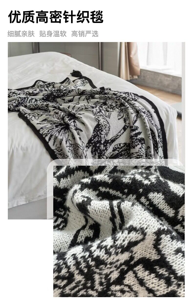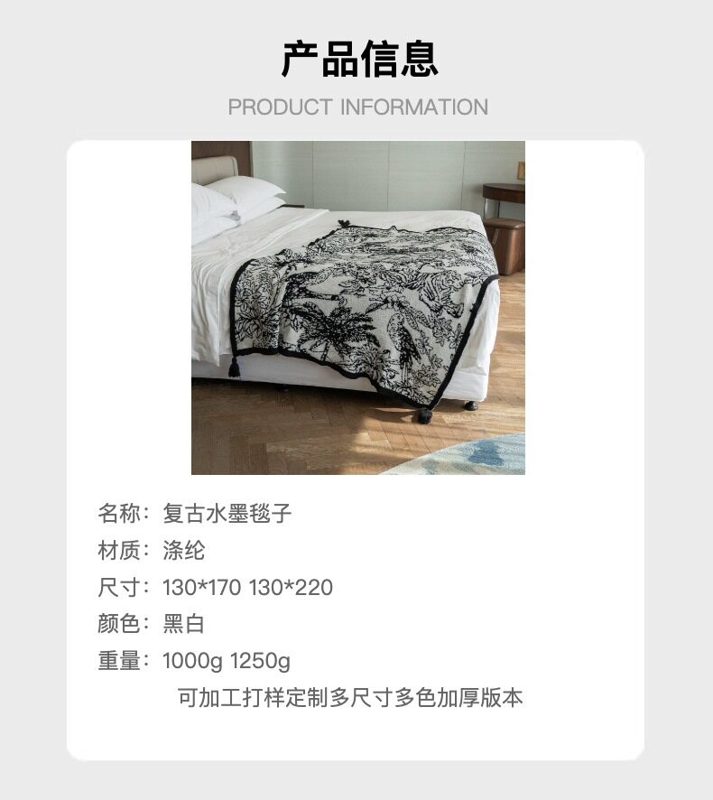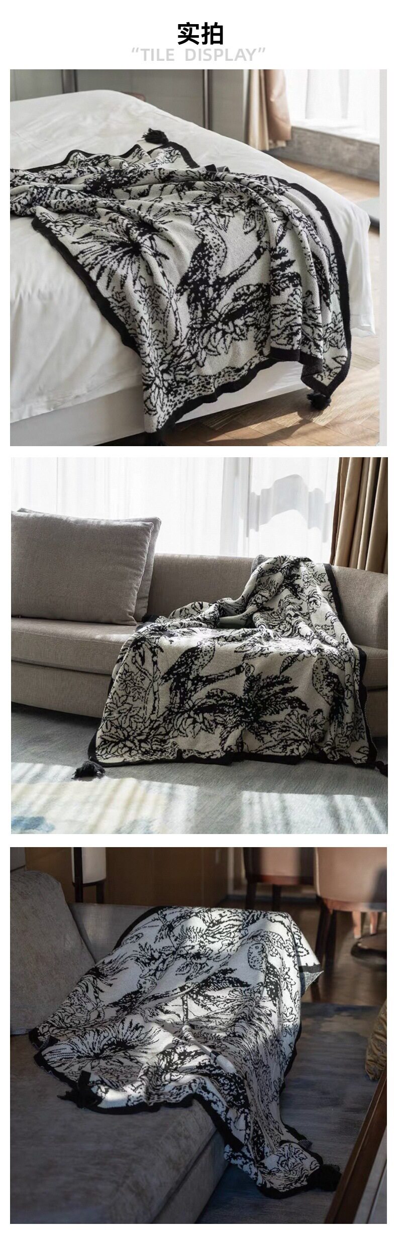Chinese-Style Retro Ink Painting Floral and Bird Knitted Blanket Sofa Blanket Throw Blanket Bed Blanket Splash-Ink Decorative Air-Conditioning Blanket Nap Blanket Fleece Blanket