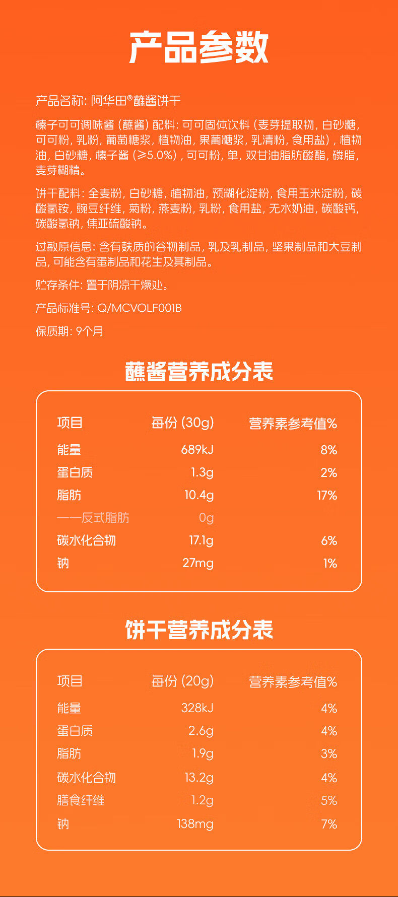 | Packaging specifications | Dip in sauce whole wheat biscuits 50g |