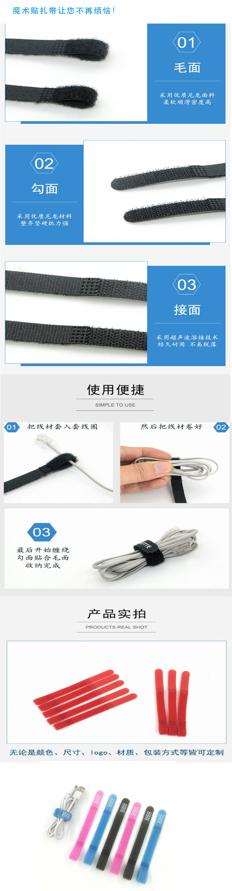 | Scope of application | Home,Headphones,Strap,Cable management tape,Bind,Computer wires,Clean up the wires |