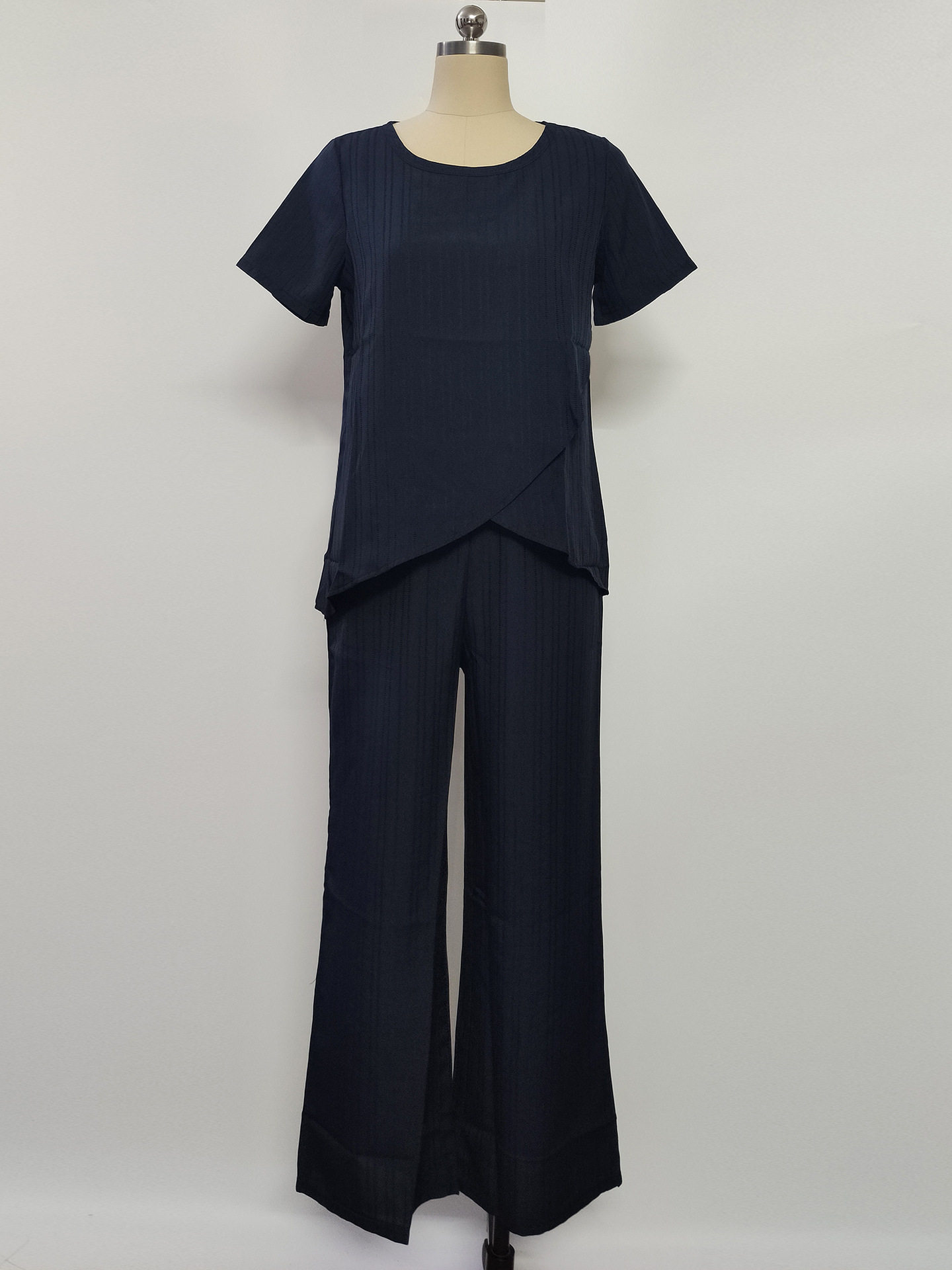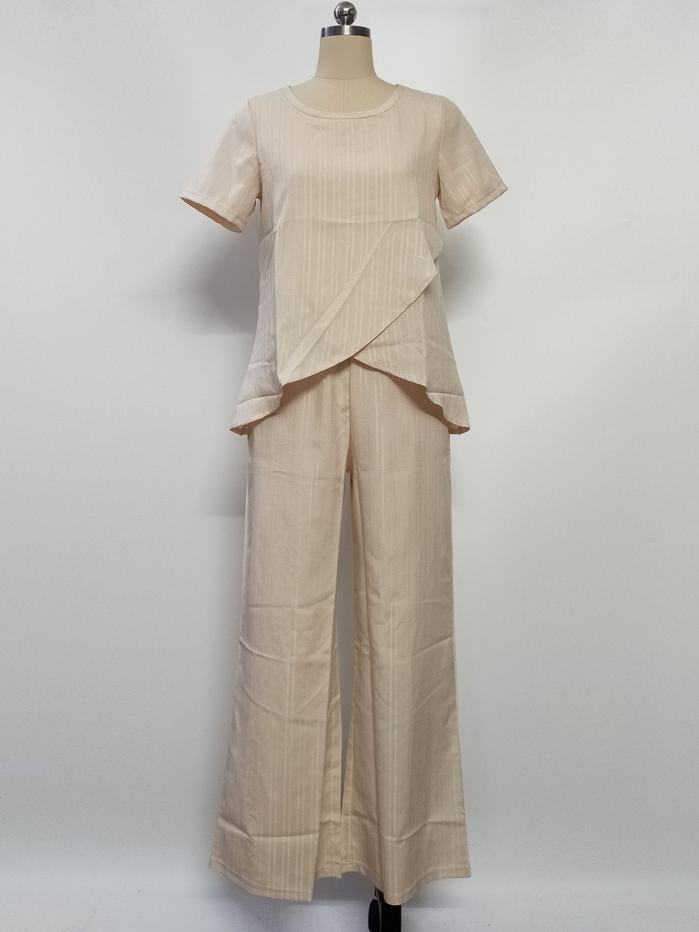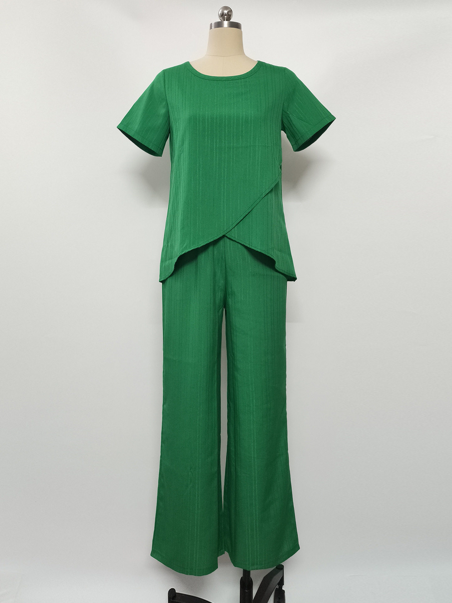 Amazon 2025 Summer New European and American Clothing Two-Piece Short-Sleeved Pullover Round Neck Loose Casual Asymmetrical Suit