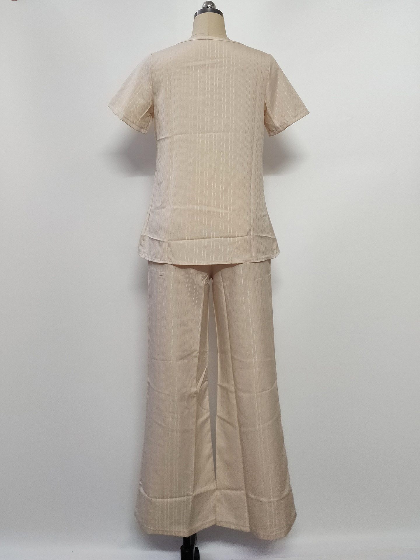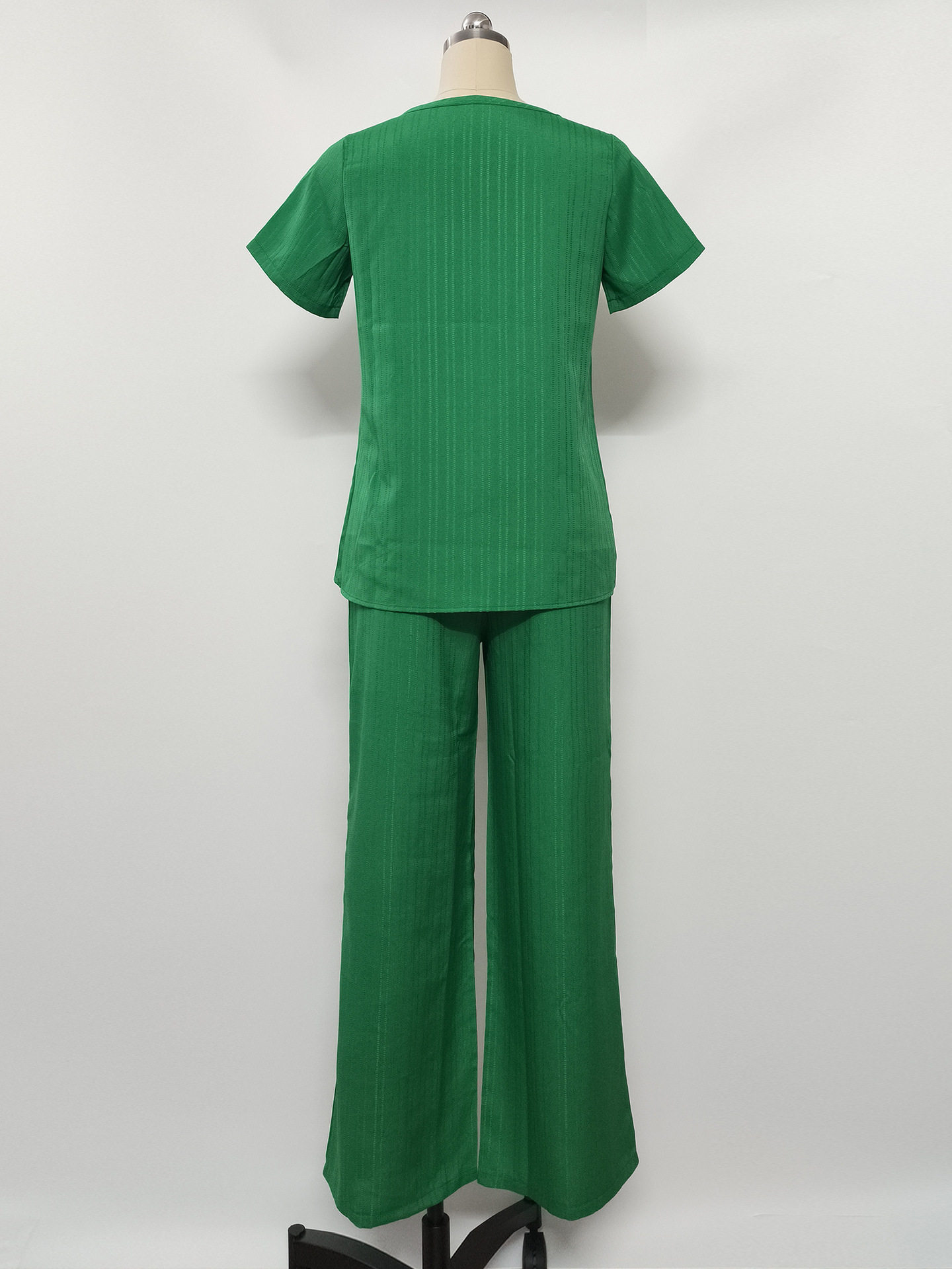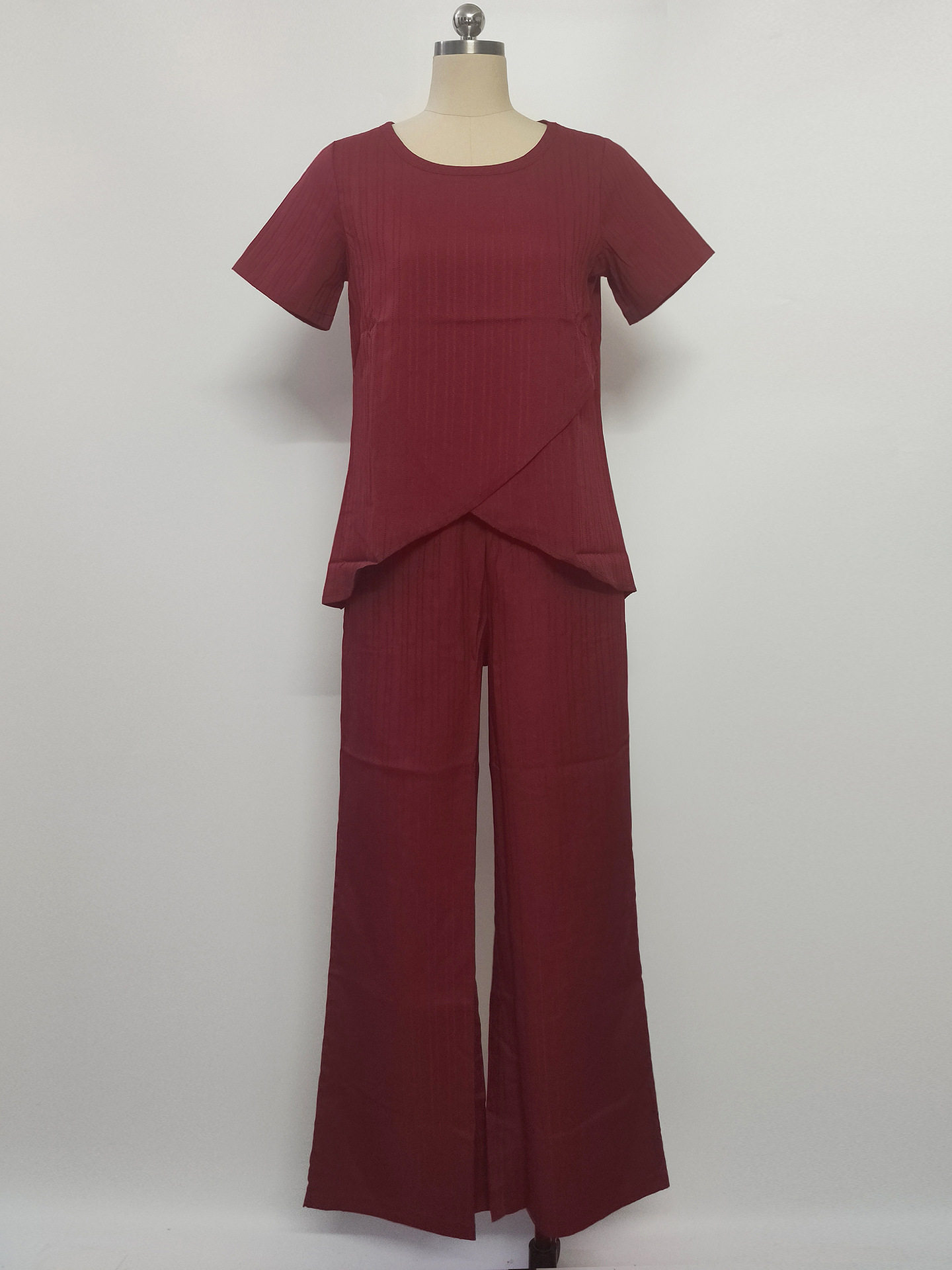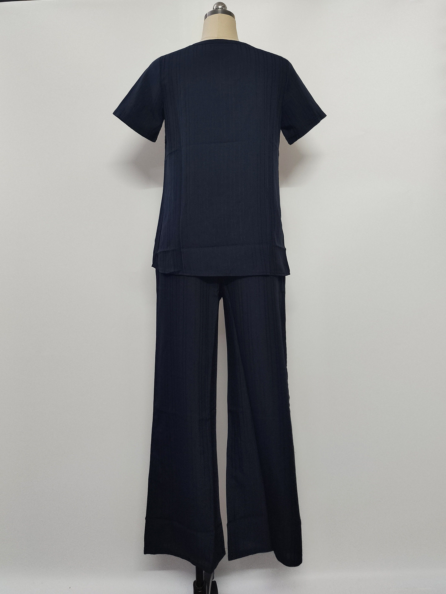 Amazon 2025 Summer New European and American Clothing Two-Piece Short-Sleeved Pullover Round Neck Loose Casual Asymmetrical Suit