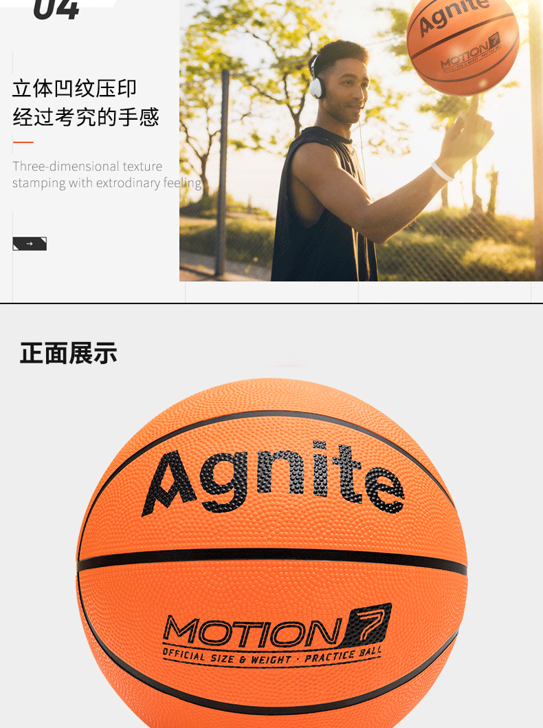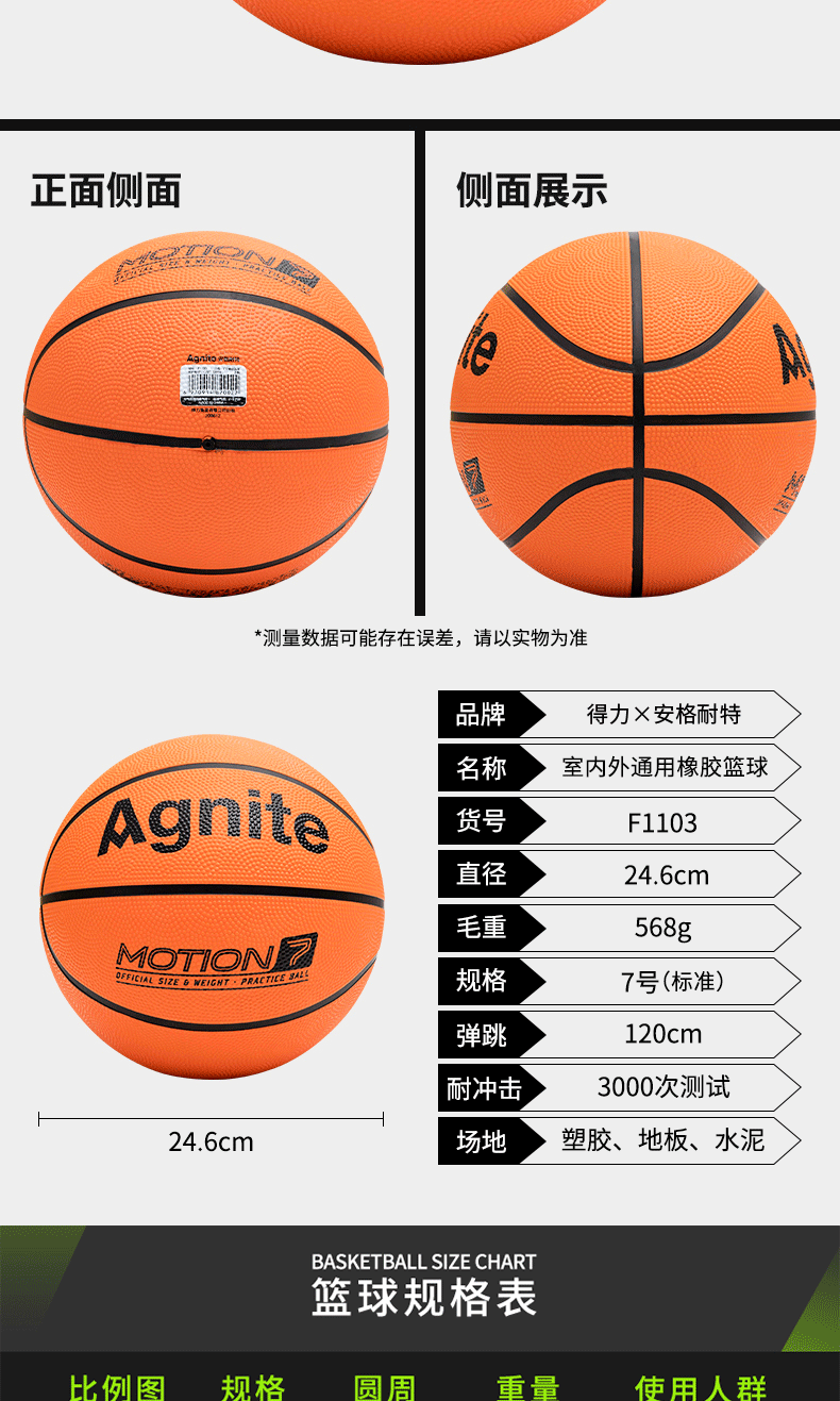 Deli Angnet F1103 Rubber No. 7 Basketball Orange Kidsren's Training Wear-Resistant Stereo Pattern