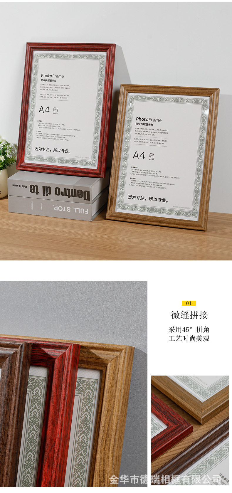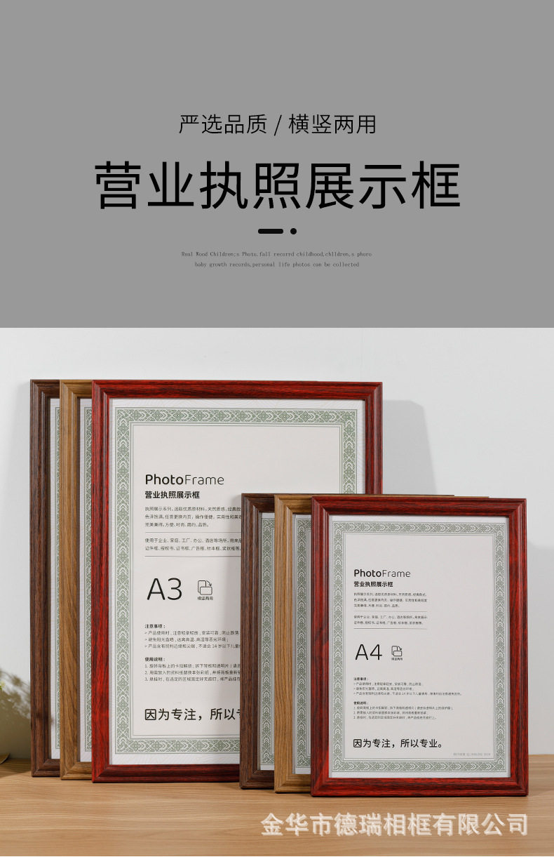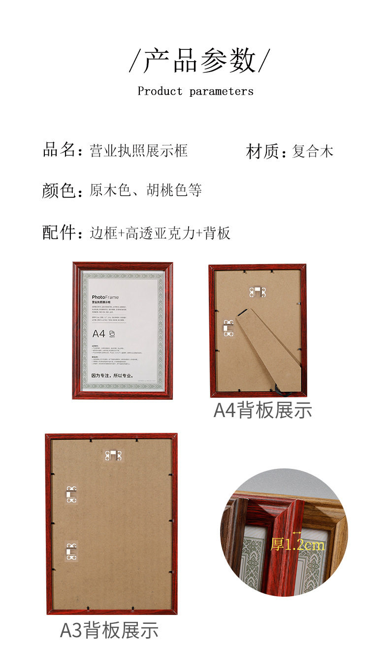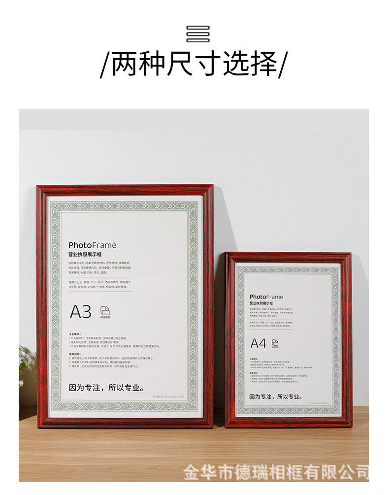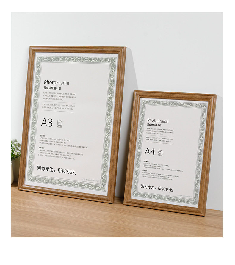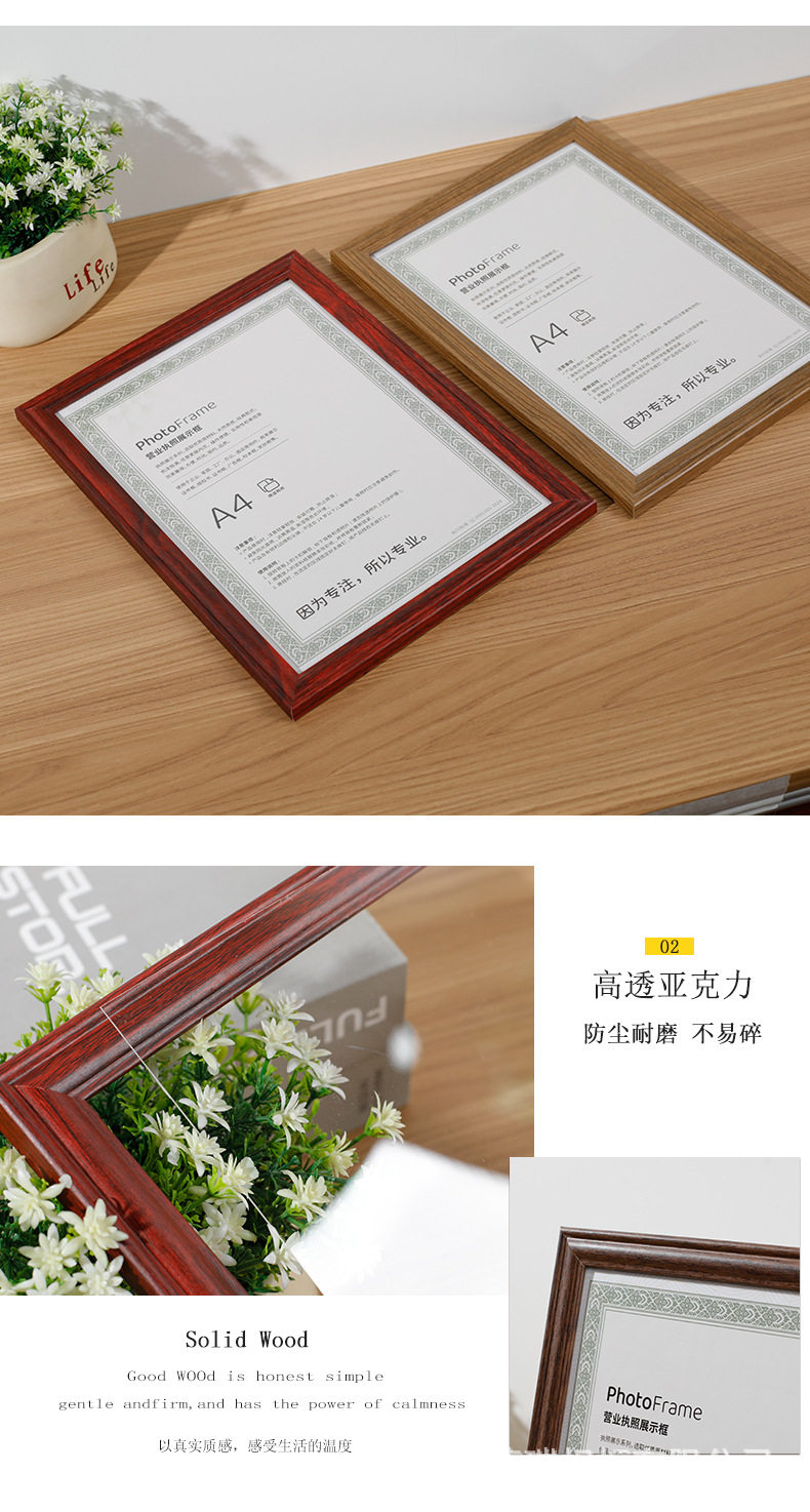 Business License Frame Certificate Photo Frame A4 Food Hygiene Wooden Power of Attorney Honor Protective Cover A3 Set for Wholesale