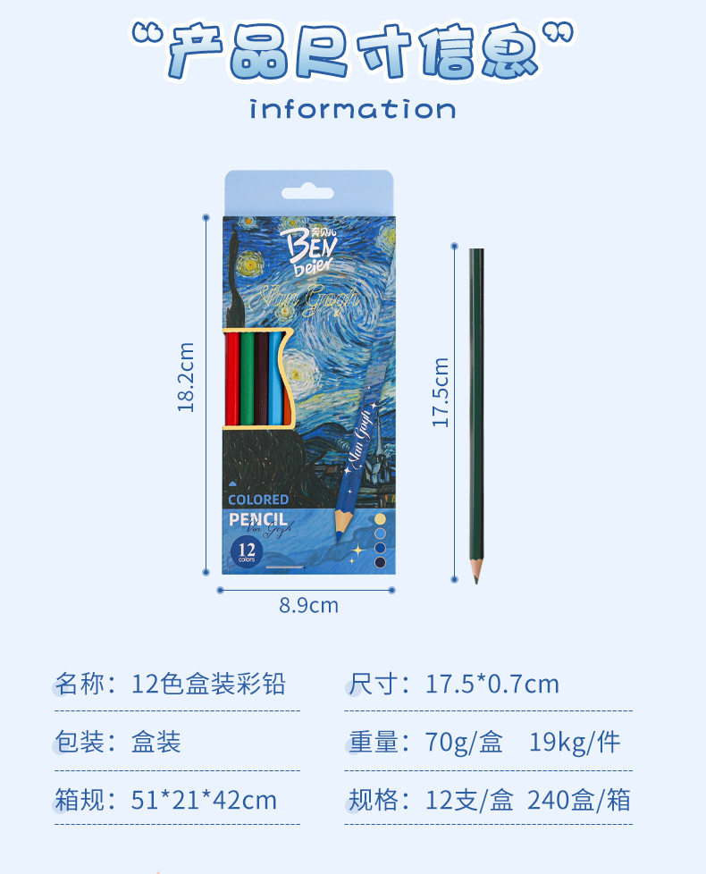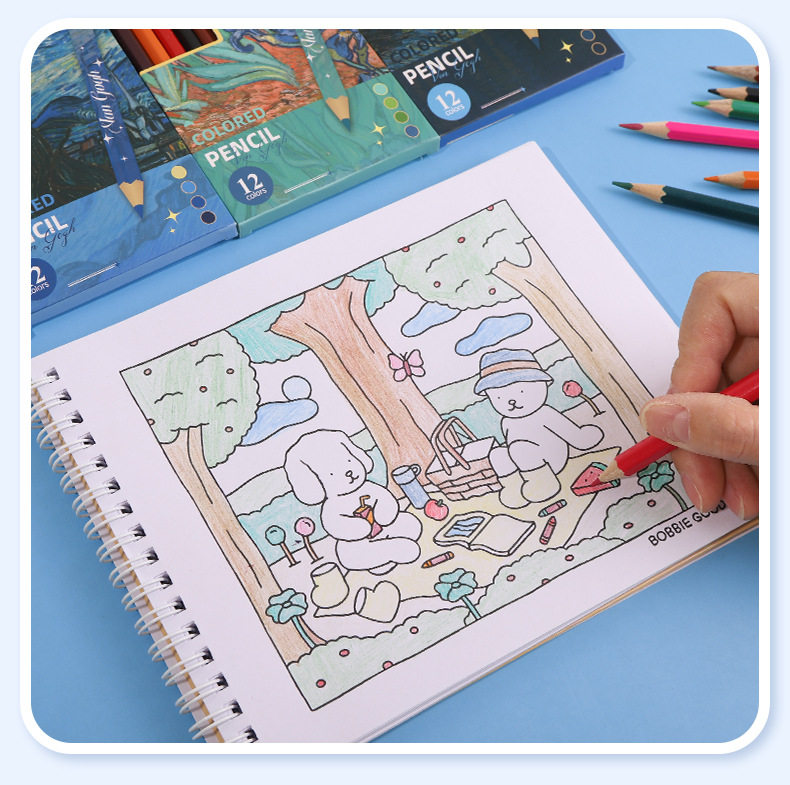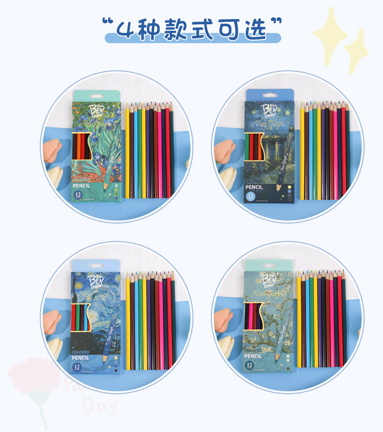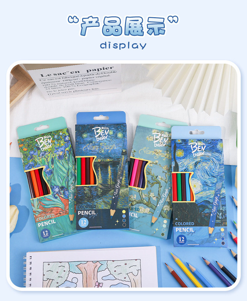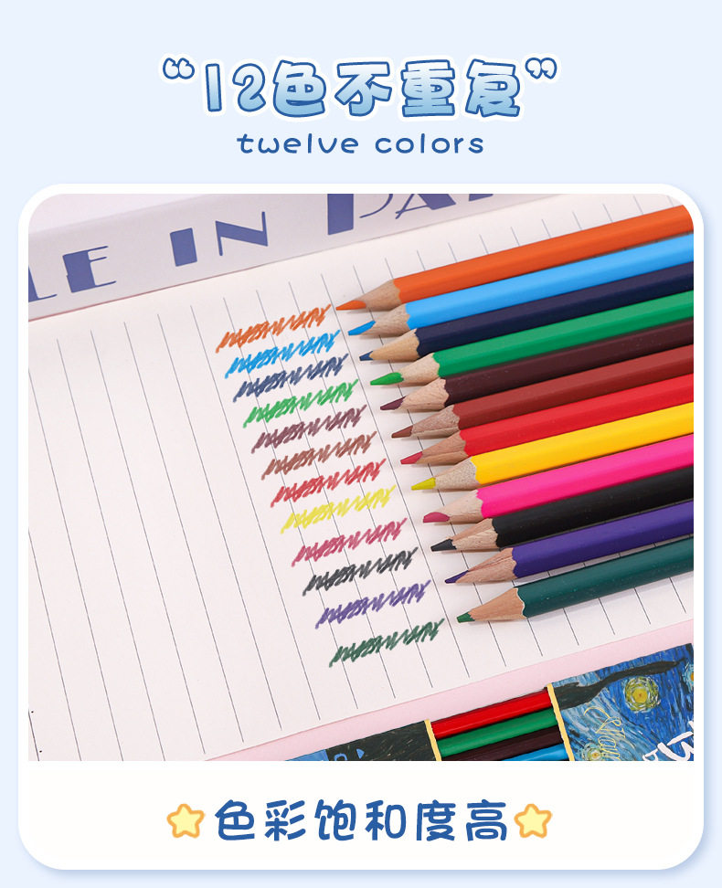 New Van Gogh Series Boxed Colorfuled Lead Student-Specific Learning Stationery Art Painting Colorfuled Pencils 12 Pieces Wholesale